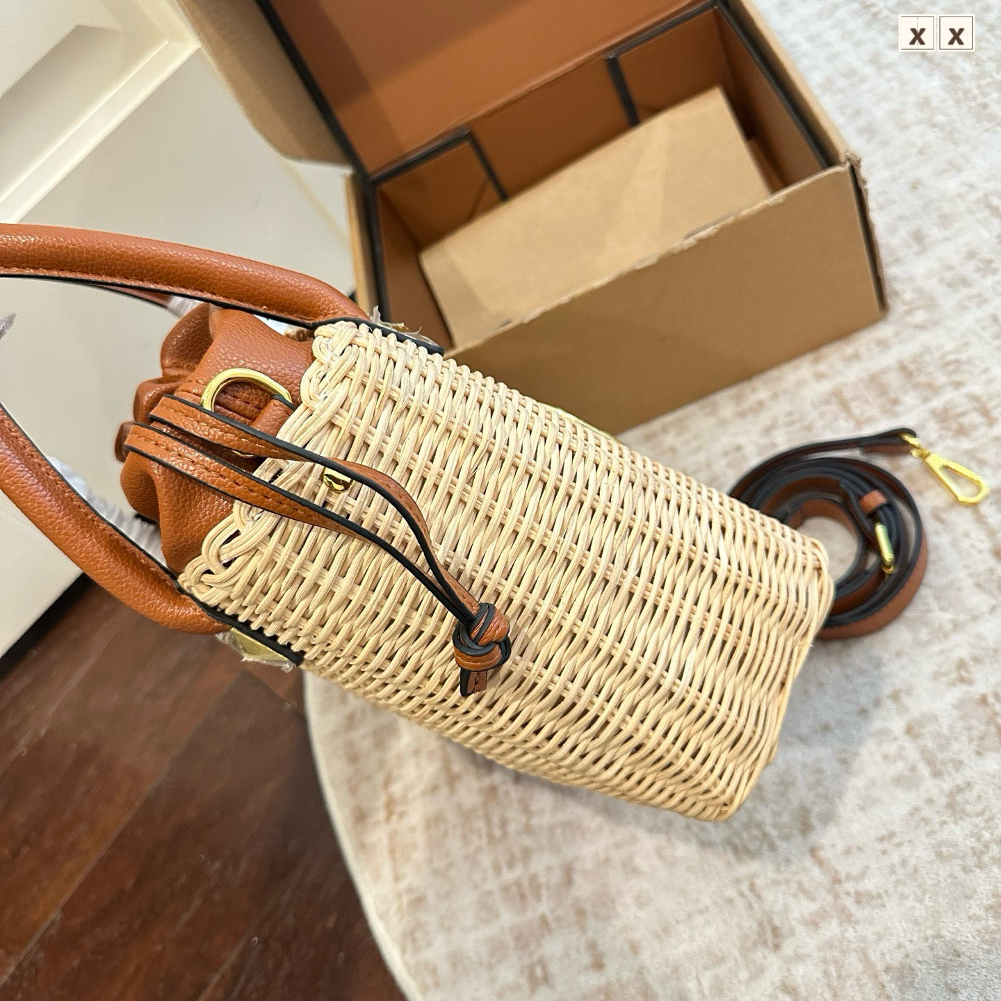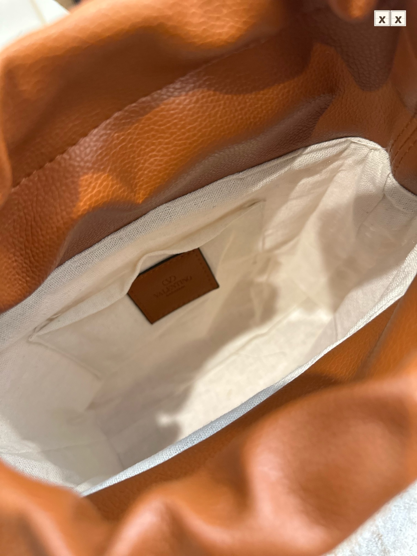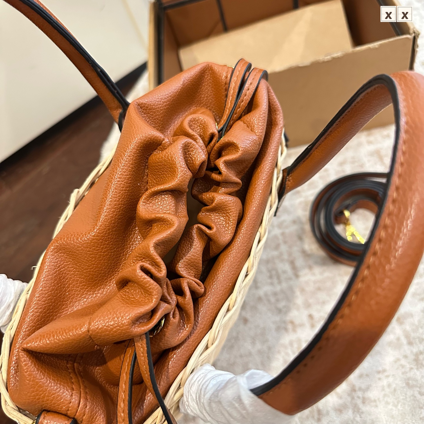 Valentino Garavani Gold VLogo Woven Raffia Leather Drawstring Lining Handle Basket Bucket Bag