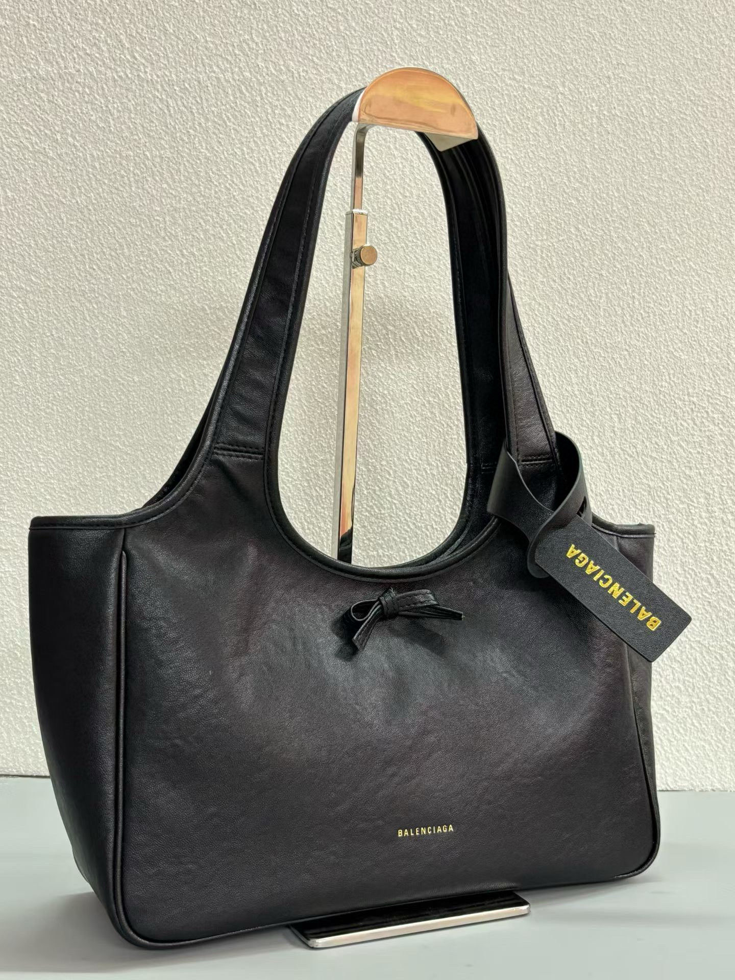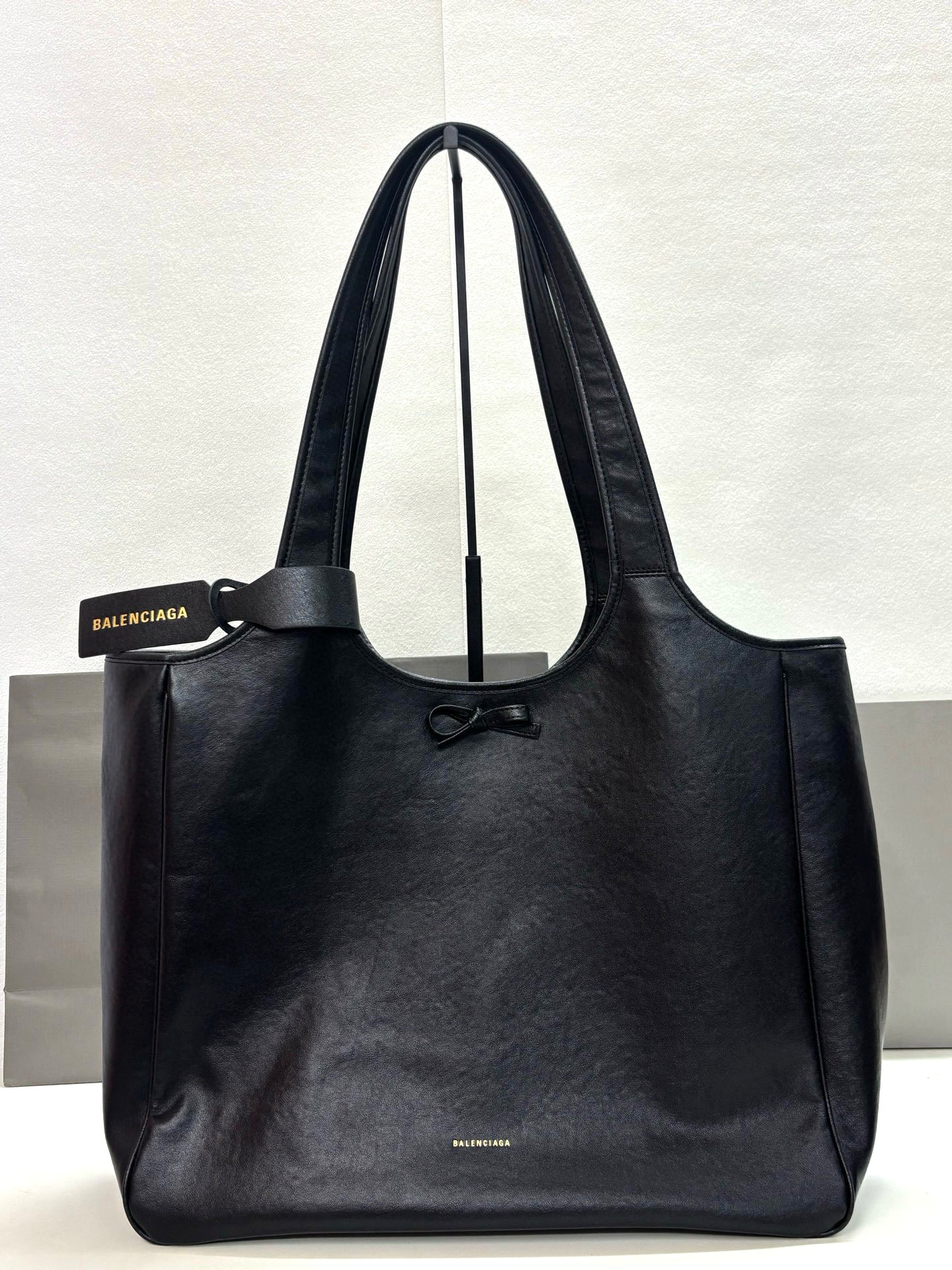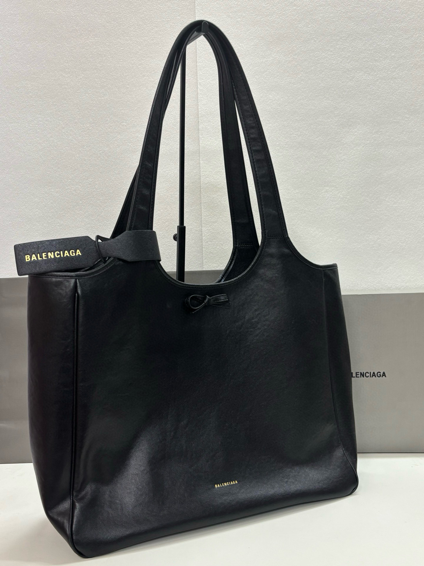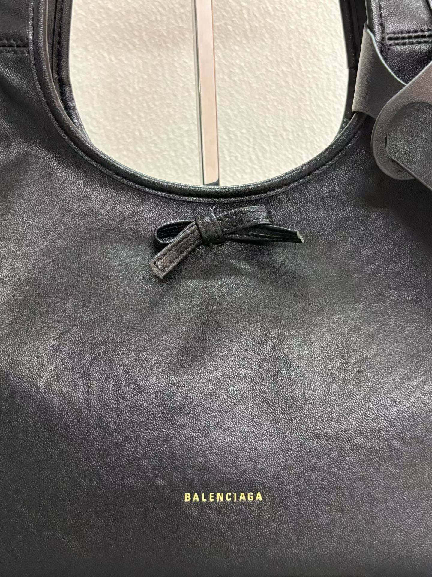 Balenciaga Bel Air Small& Large Black Smooth Leather Bow Detail Handle Shoulder Tote Bag