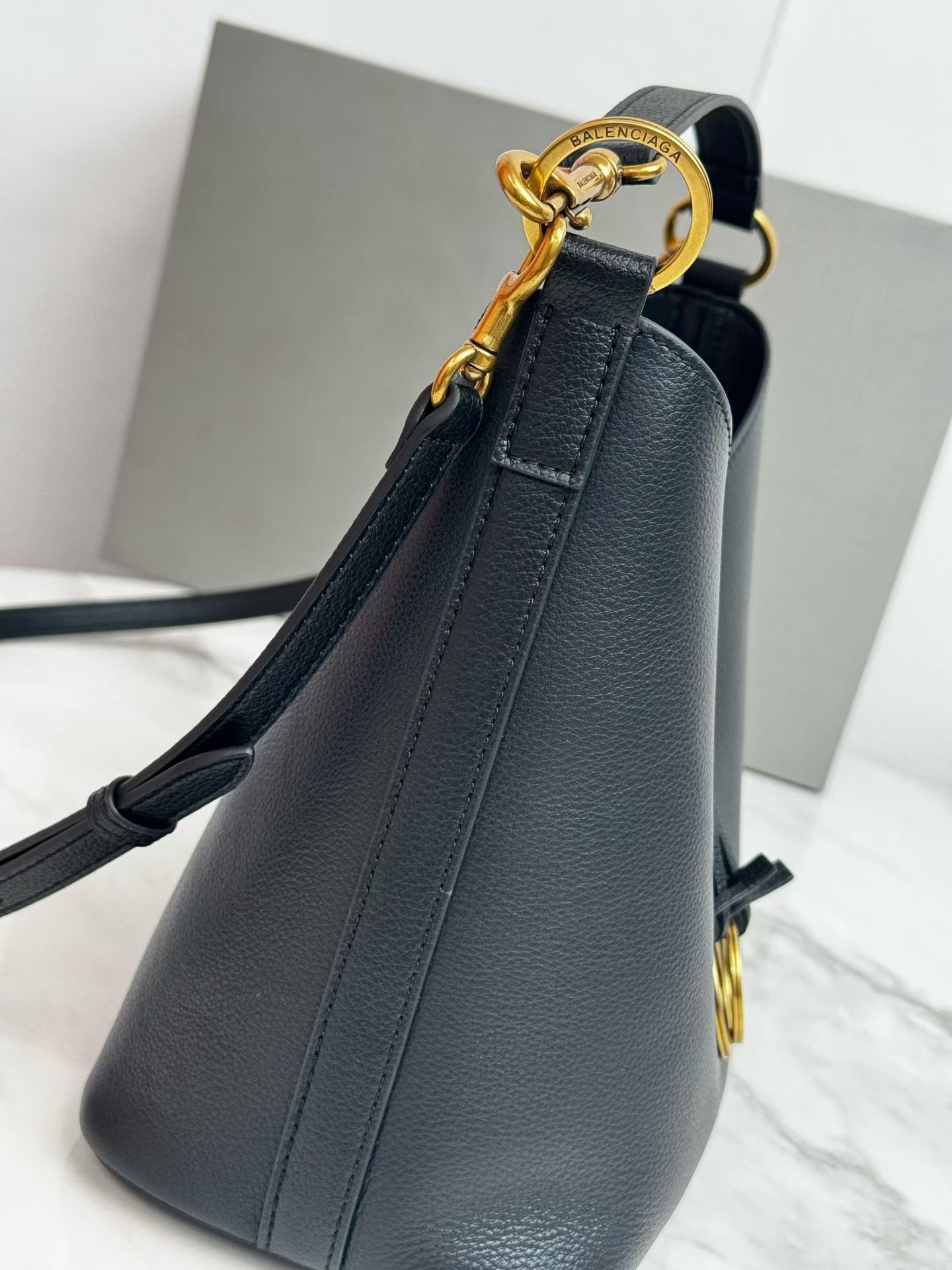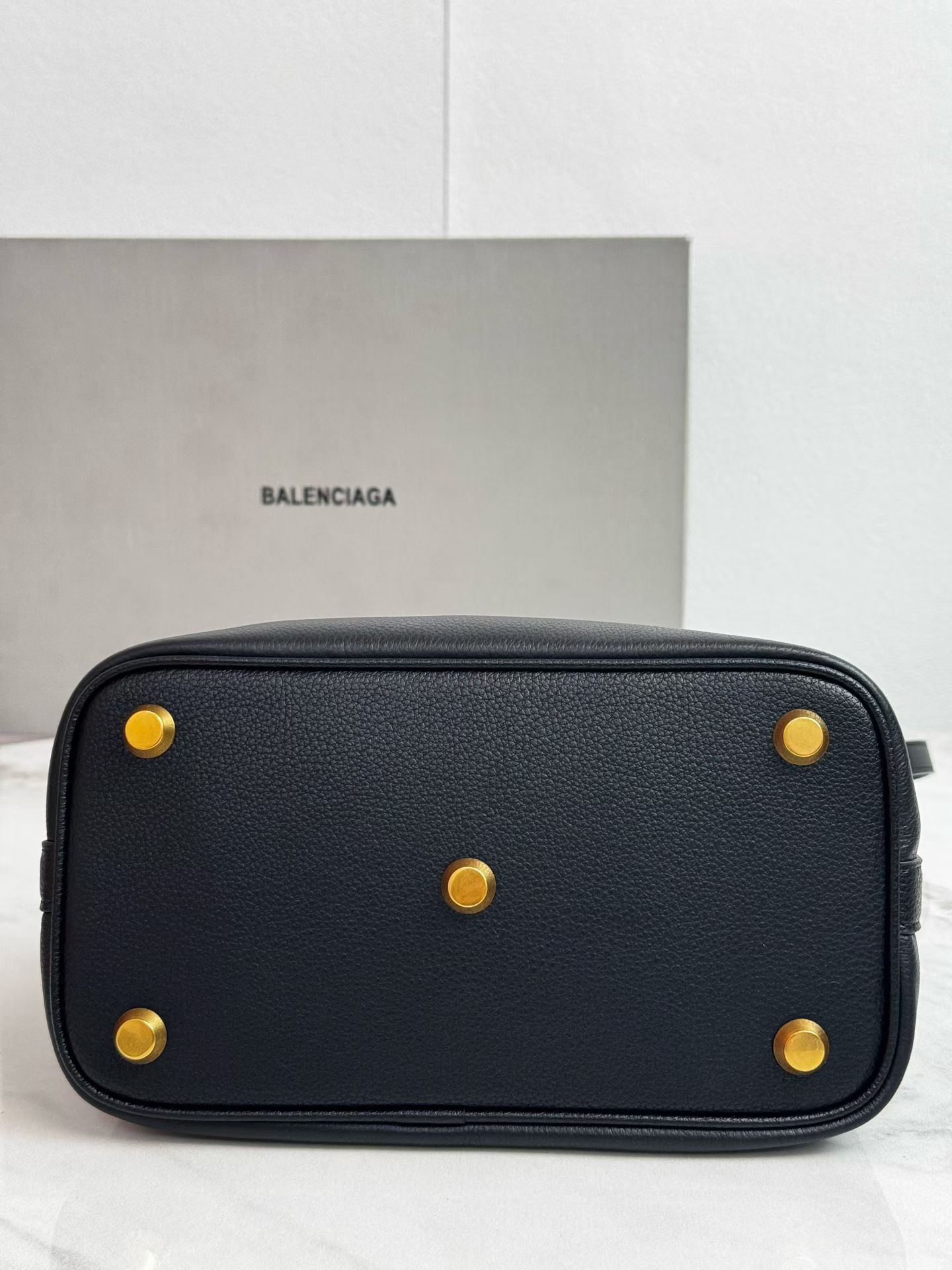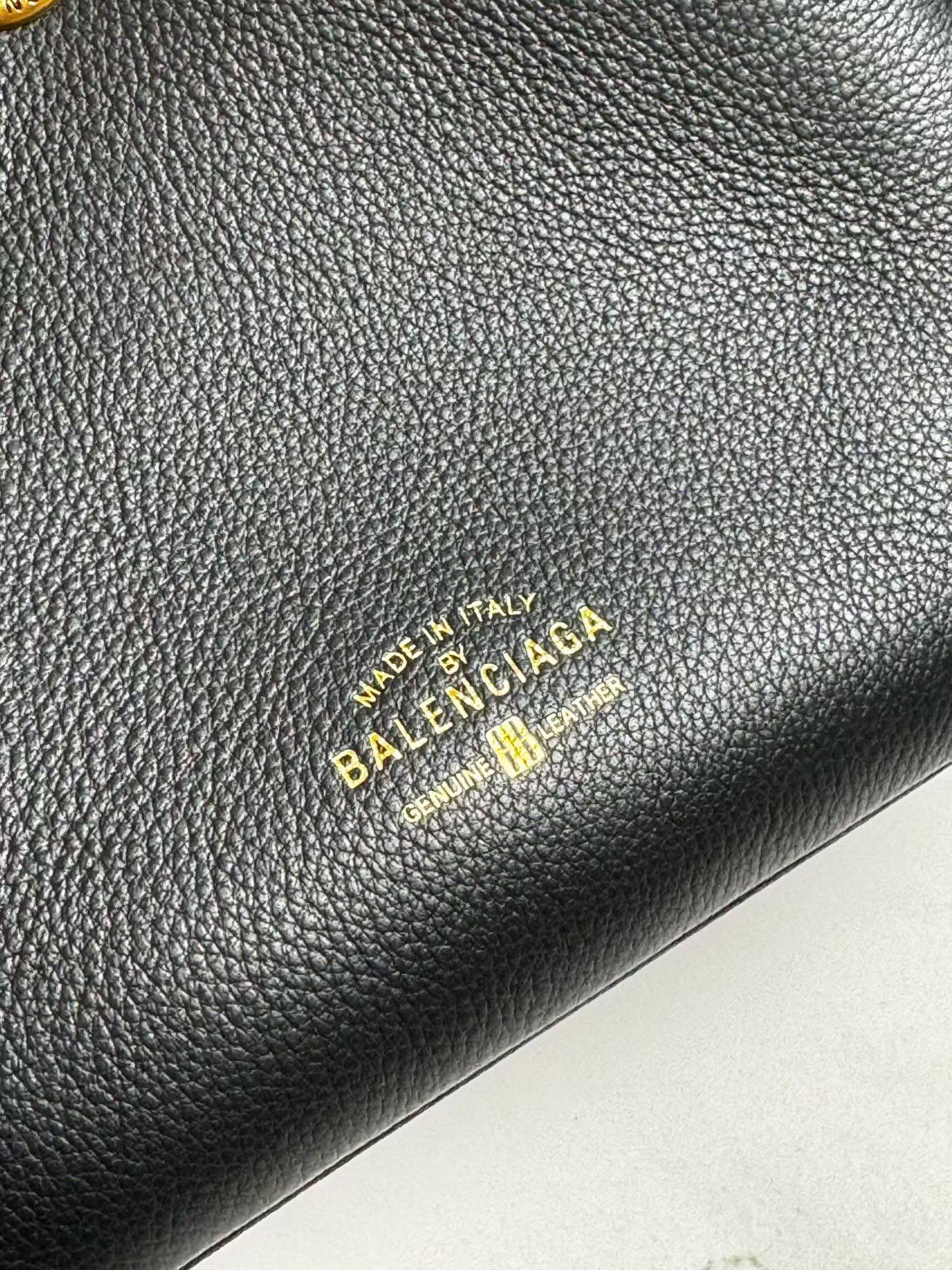 Balenciaga Duty Free Small Black Pierced Soft Grained Leather Gold Ring Hobo Tote Bag