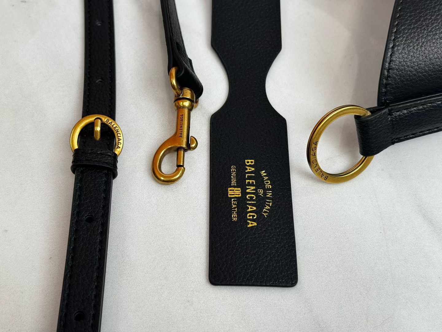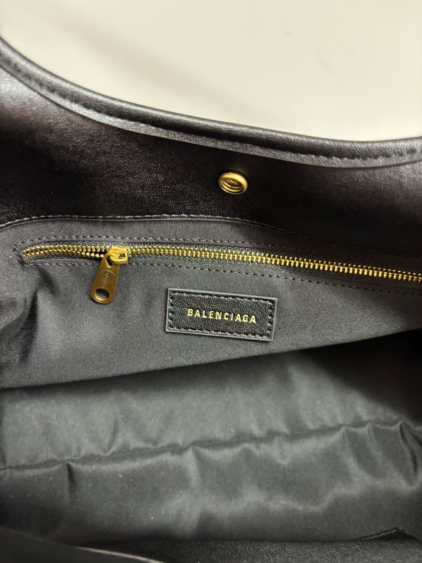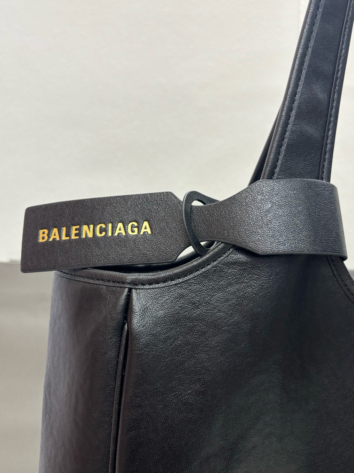 Balenciaga Duty Free Small Black Pierced Soft Grained Leather Gold Ring Hobo Tote Bag