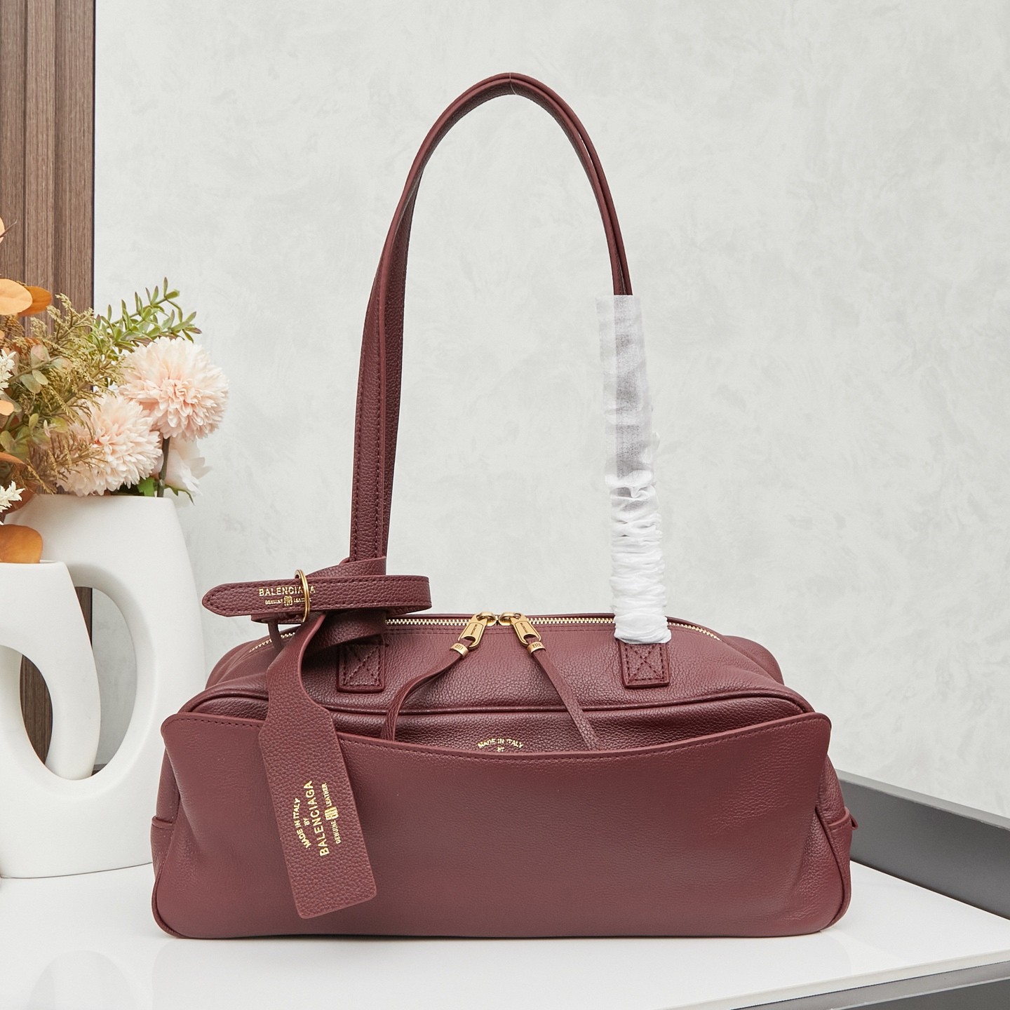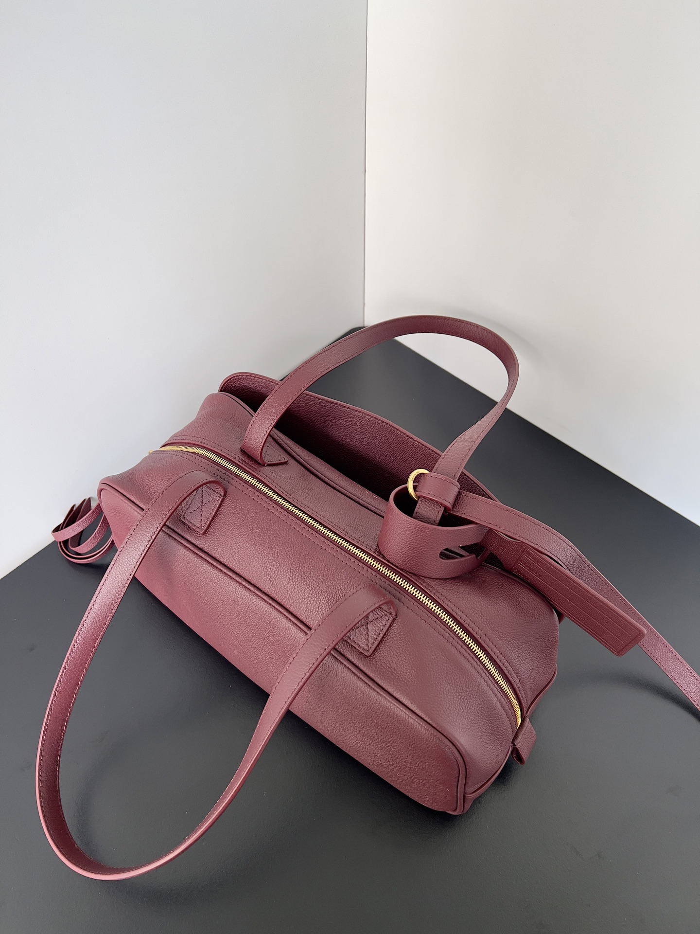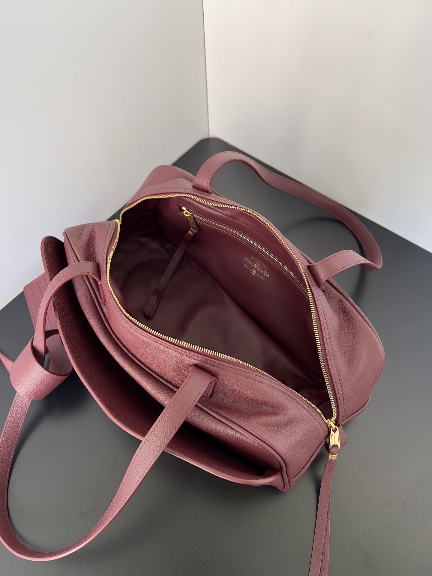 Balenciaga Carrie Small Red Grained Leather Multi-Way Top Handle Bowler Bowling Bag