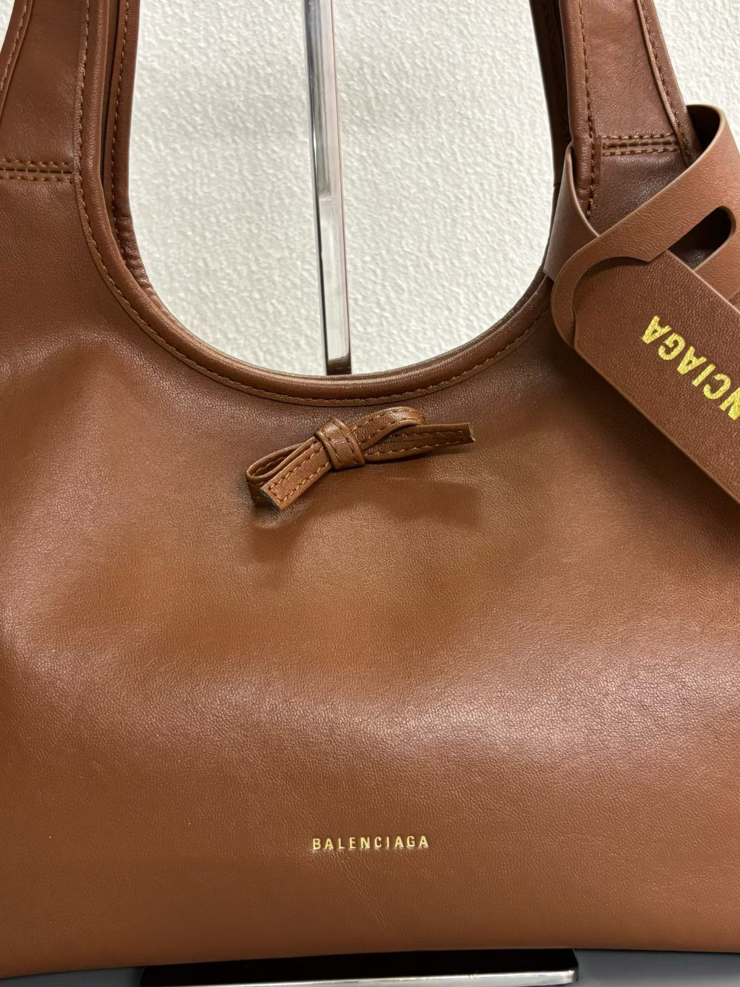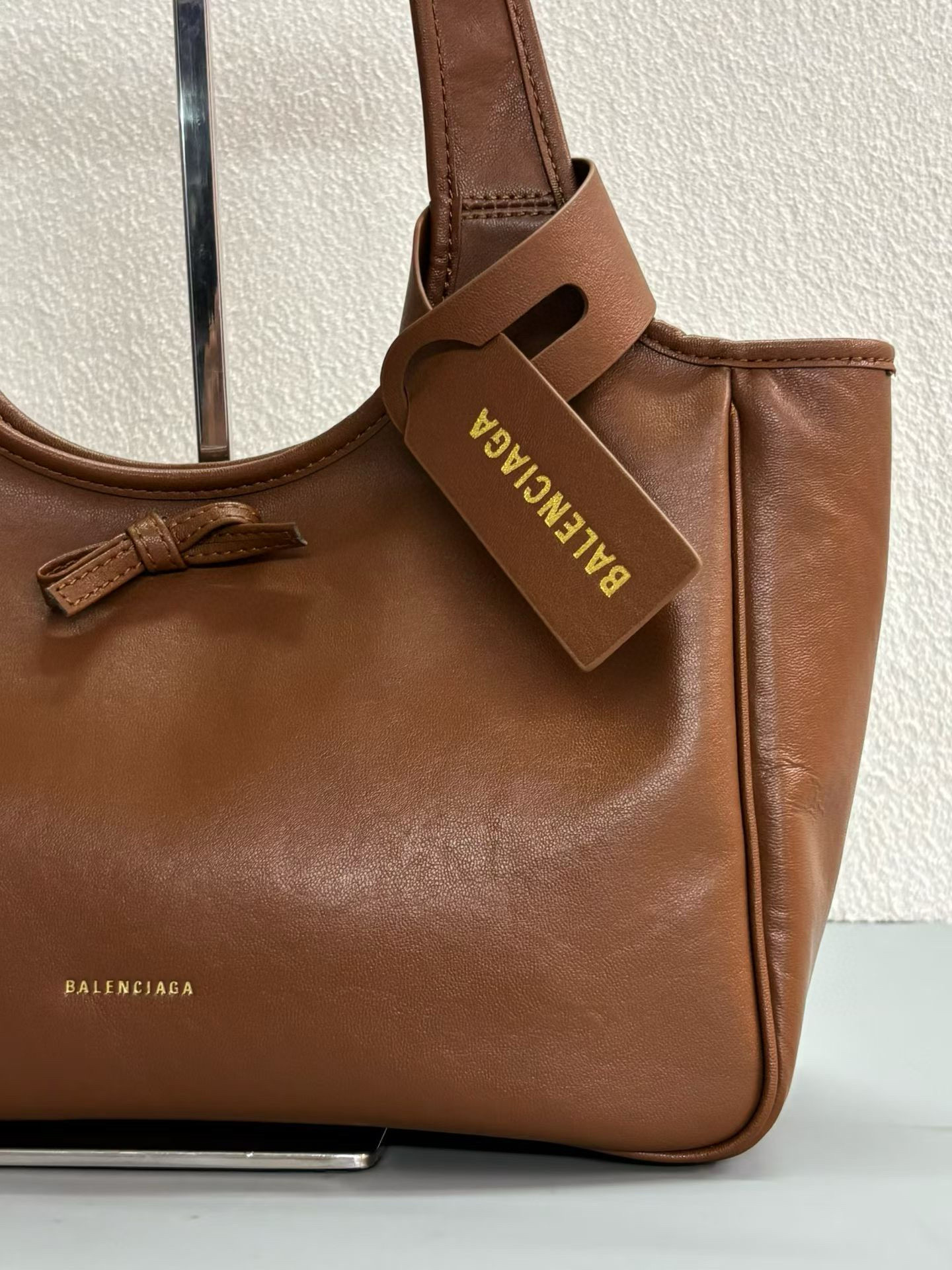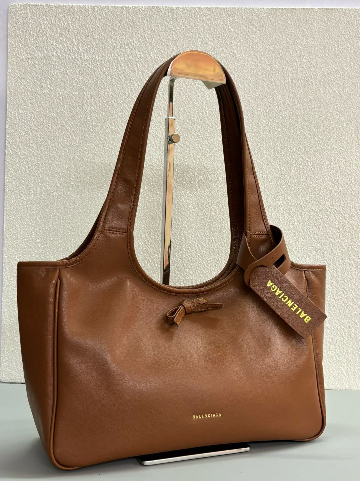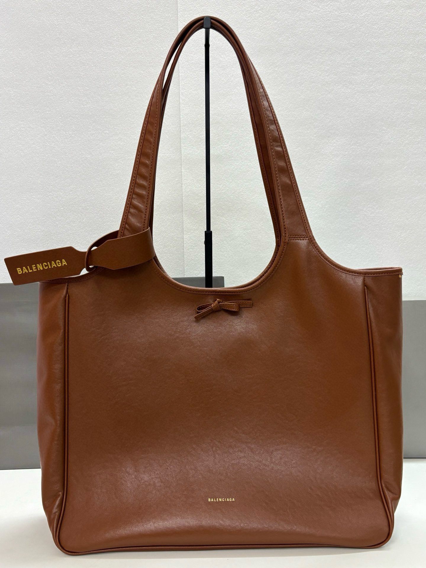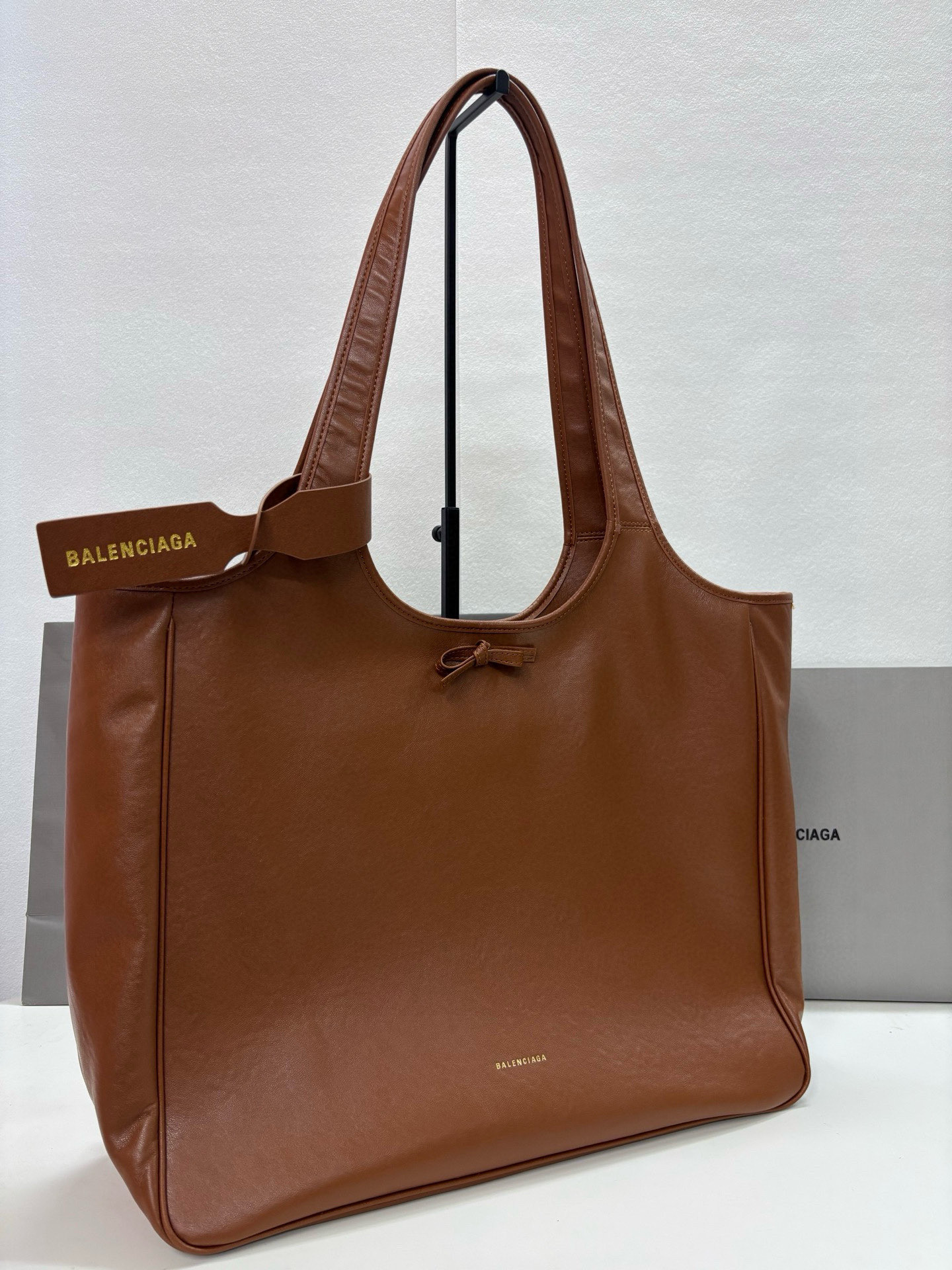 Balenciaga Bel Air Small& Large Brown Smooth Leather Bow Detail Handle Shoulder Tote Bag
