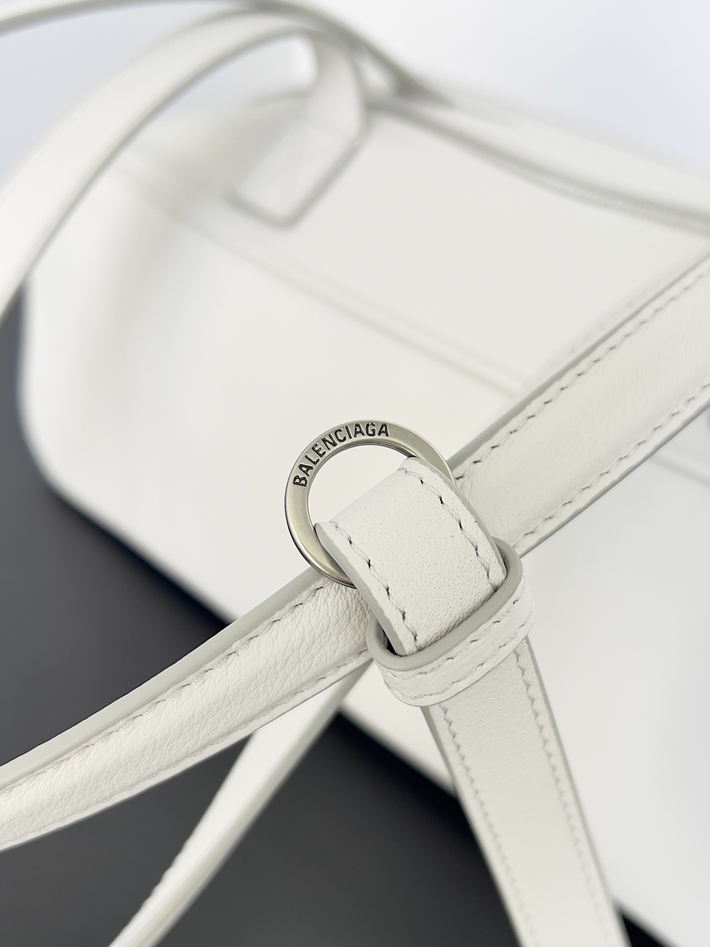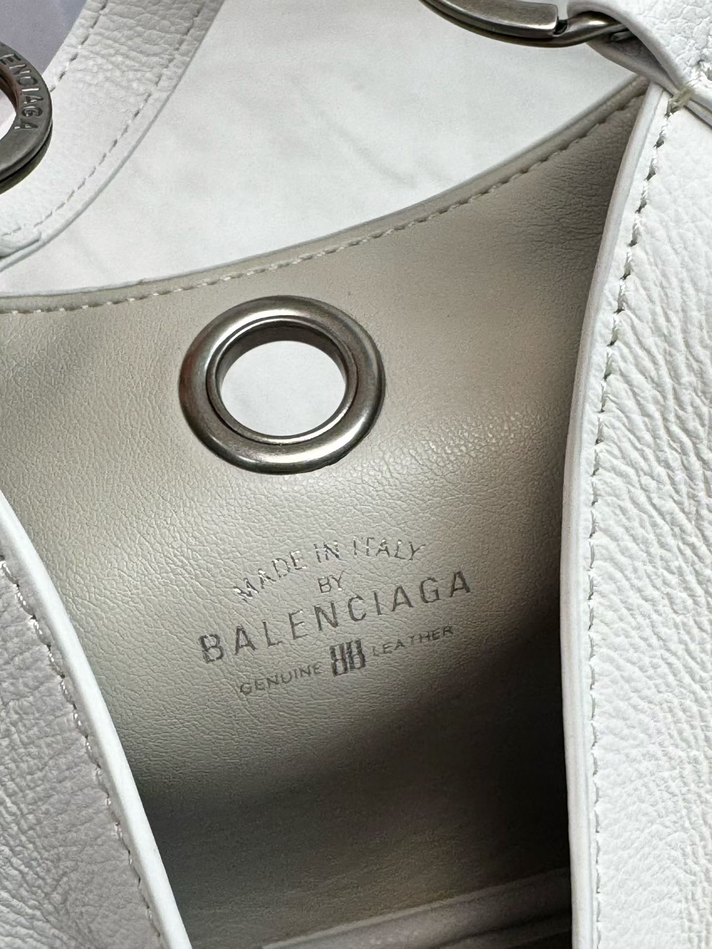 Balenciaga Duty Free Small White Pierced Soft Grained Leather Silver Ring Hobo Tote Bag