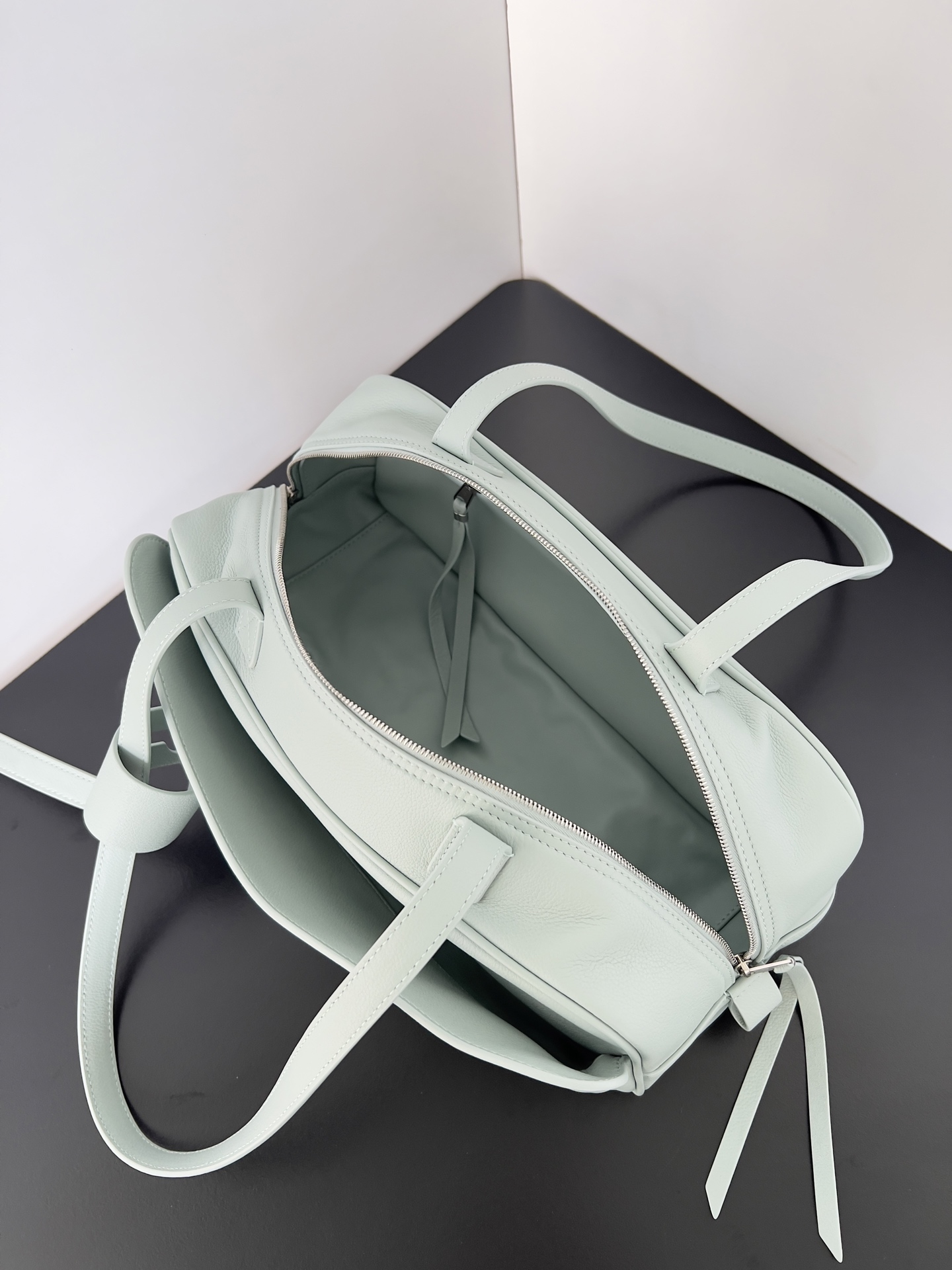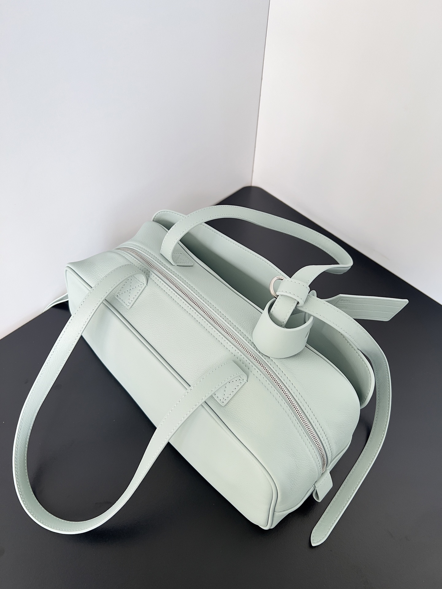 Balenciaga Carrie Small Light Sage Grained Leather Multi-Way Top Handle Bowler Bowling Bag