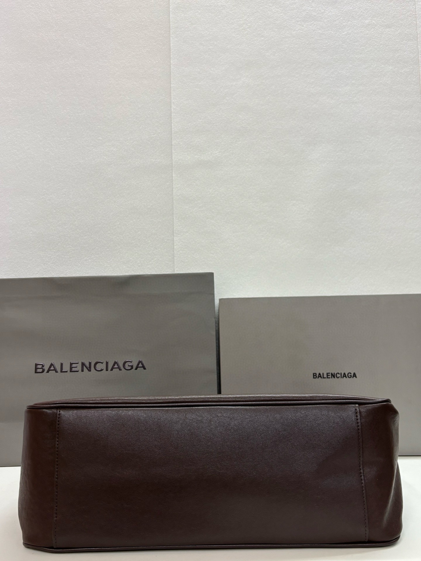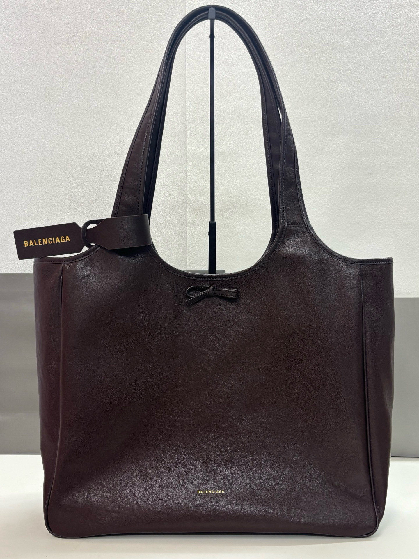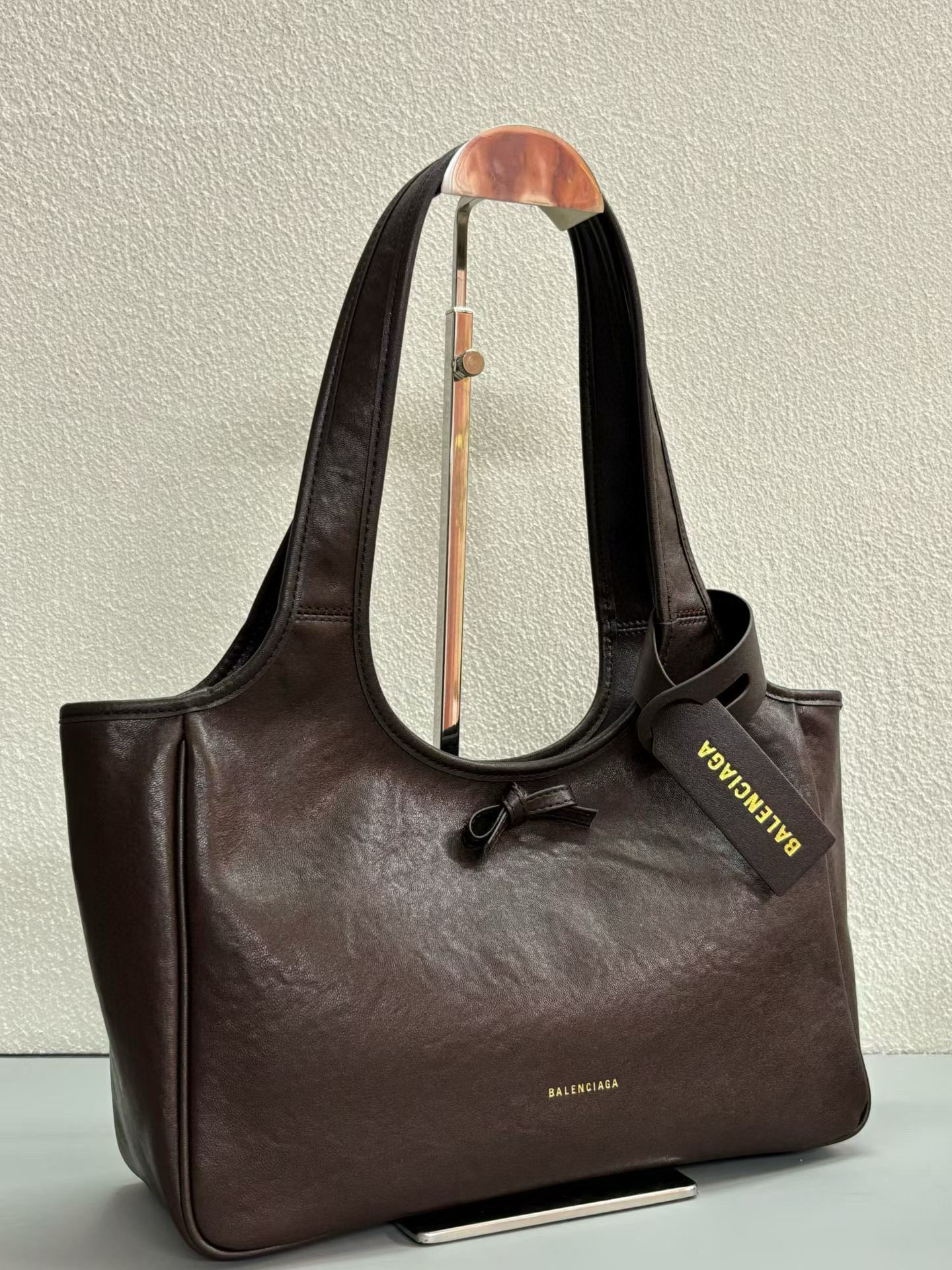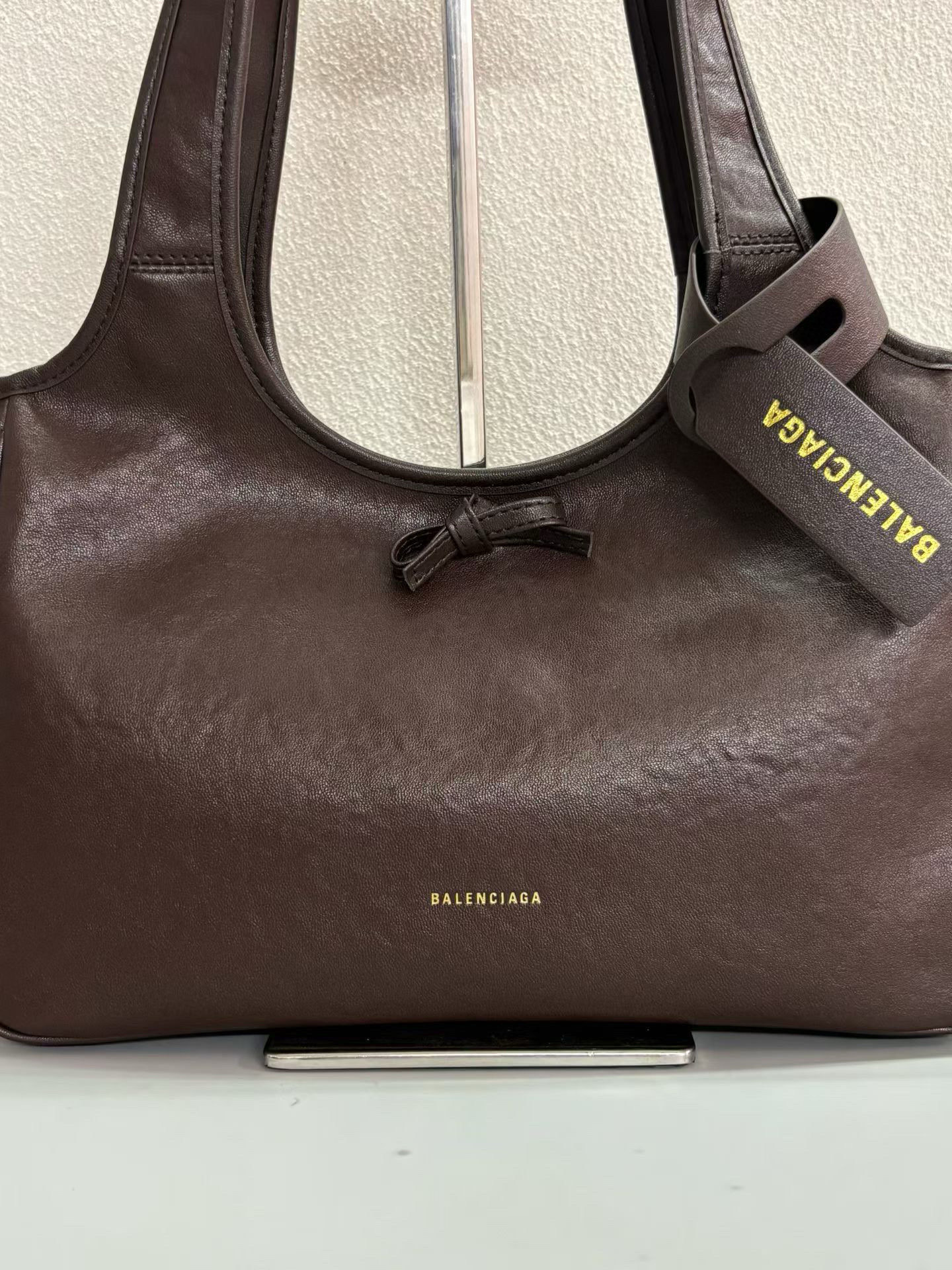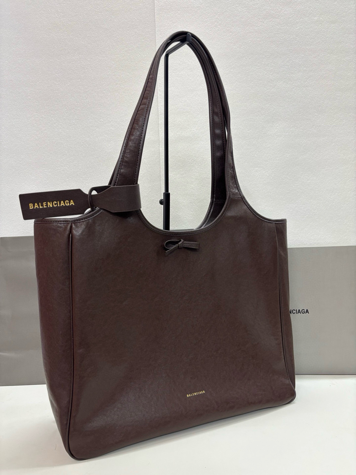 Balenciaga Bel Air Small& Large Chocolate Smooth Leather Bow Detail Handle Shoulder Tote Bag