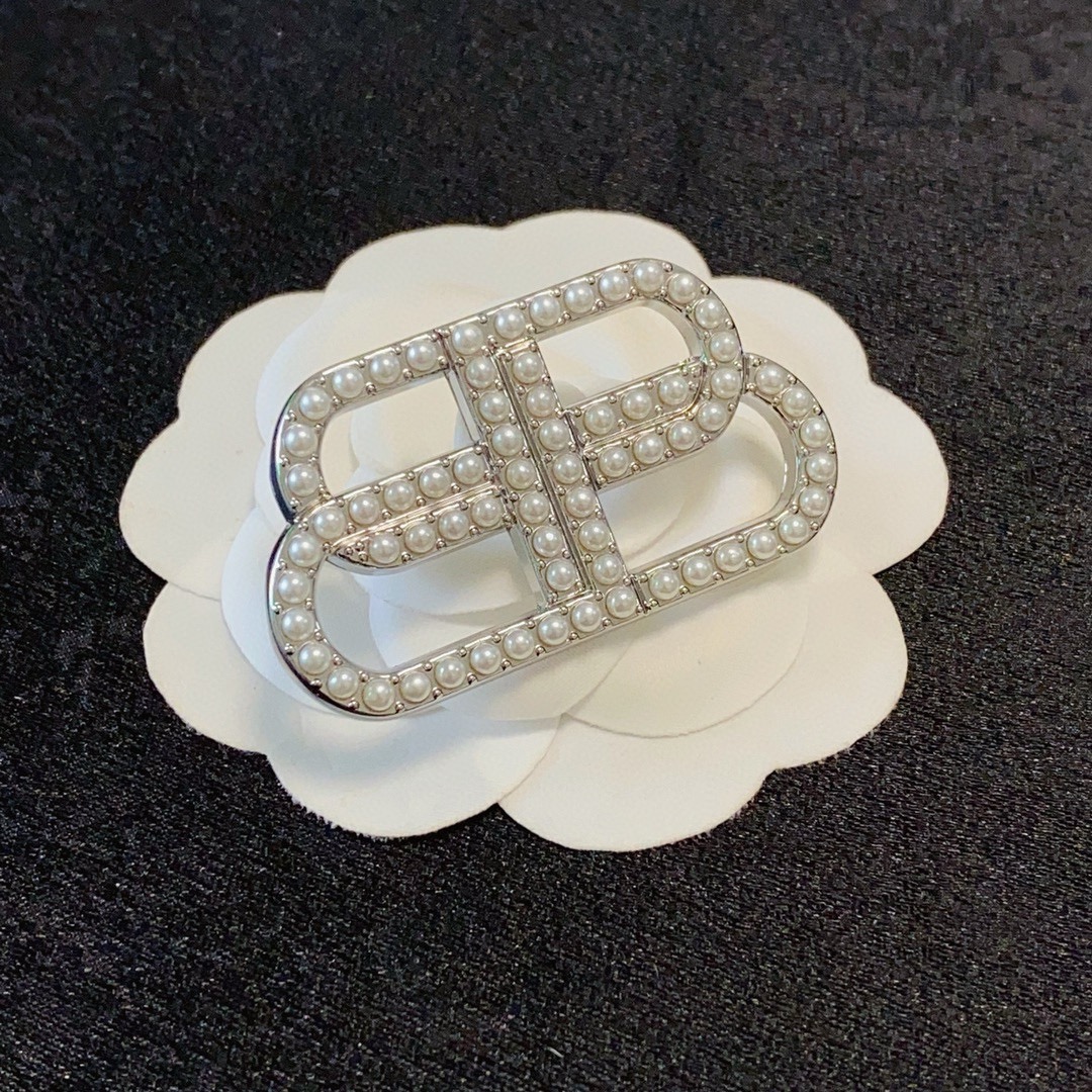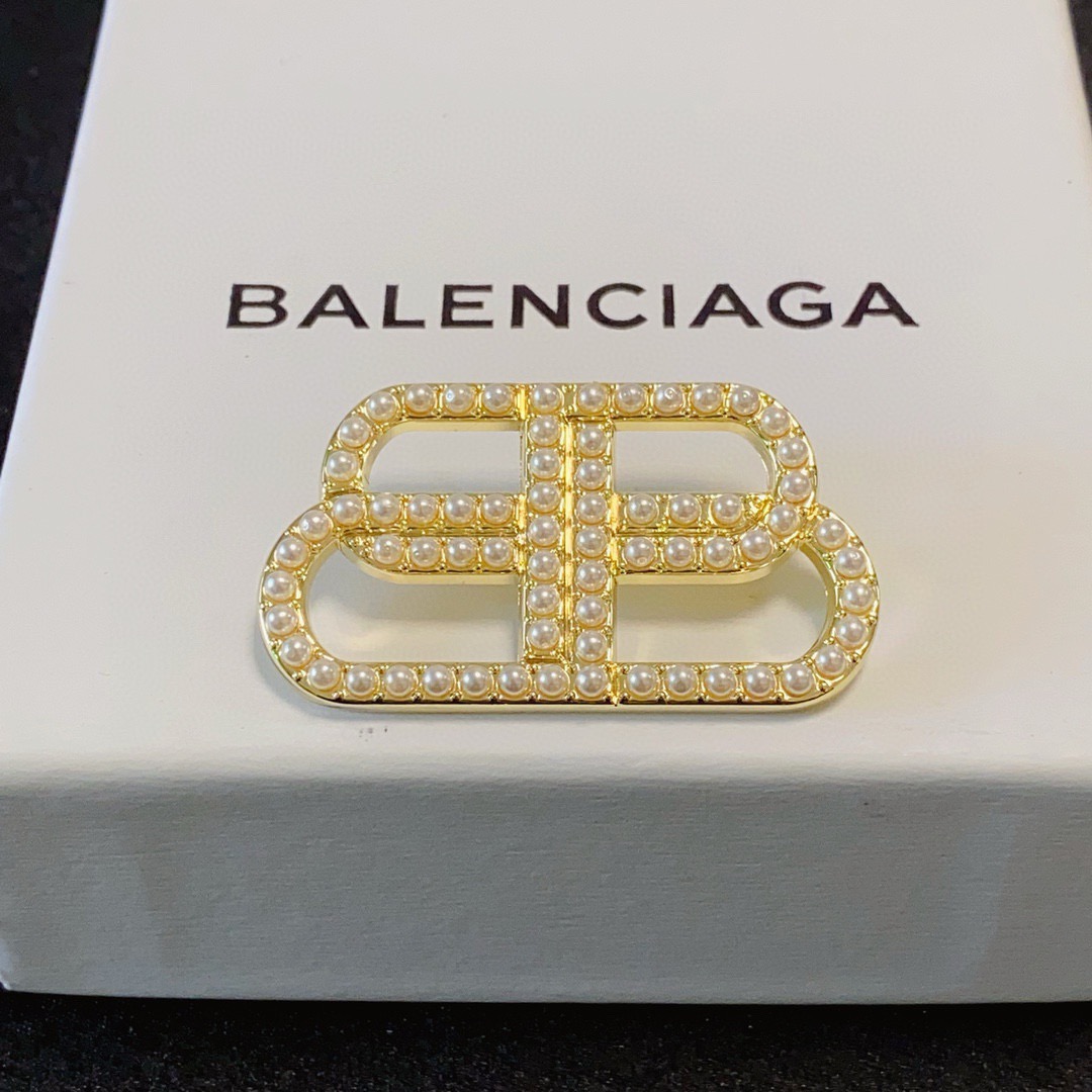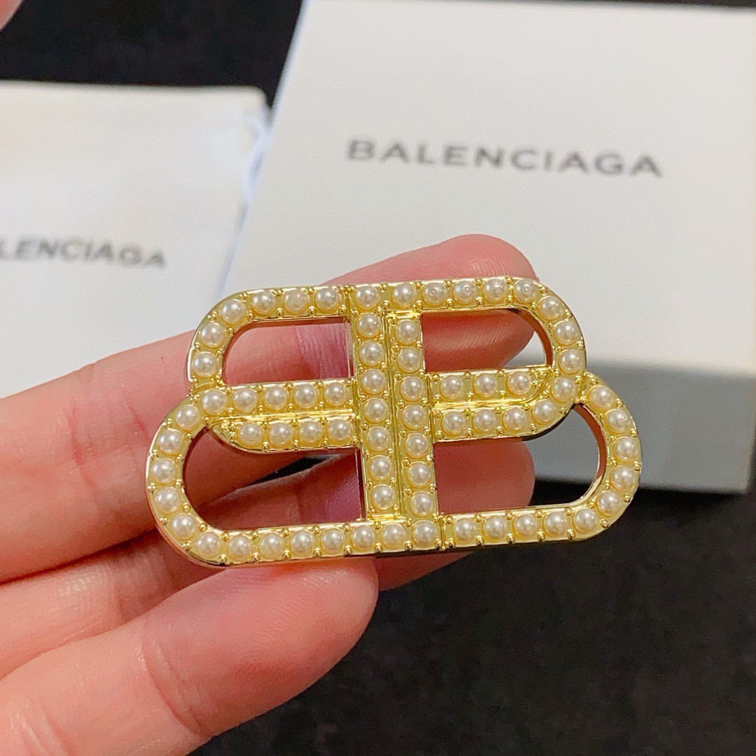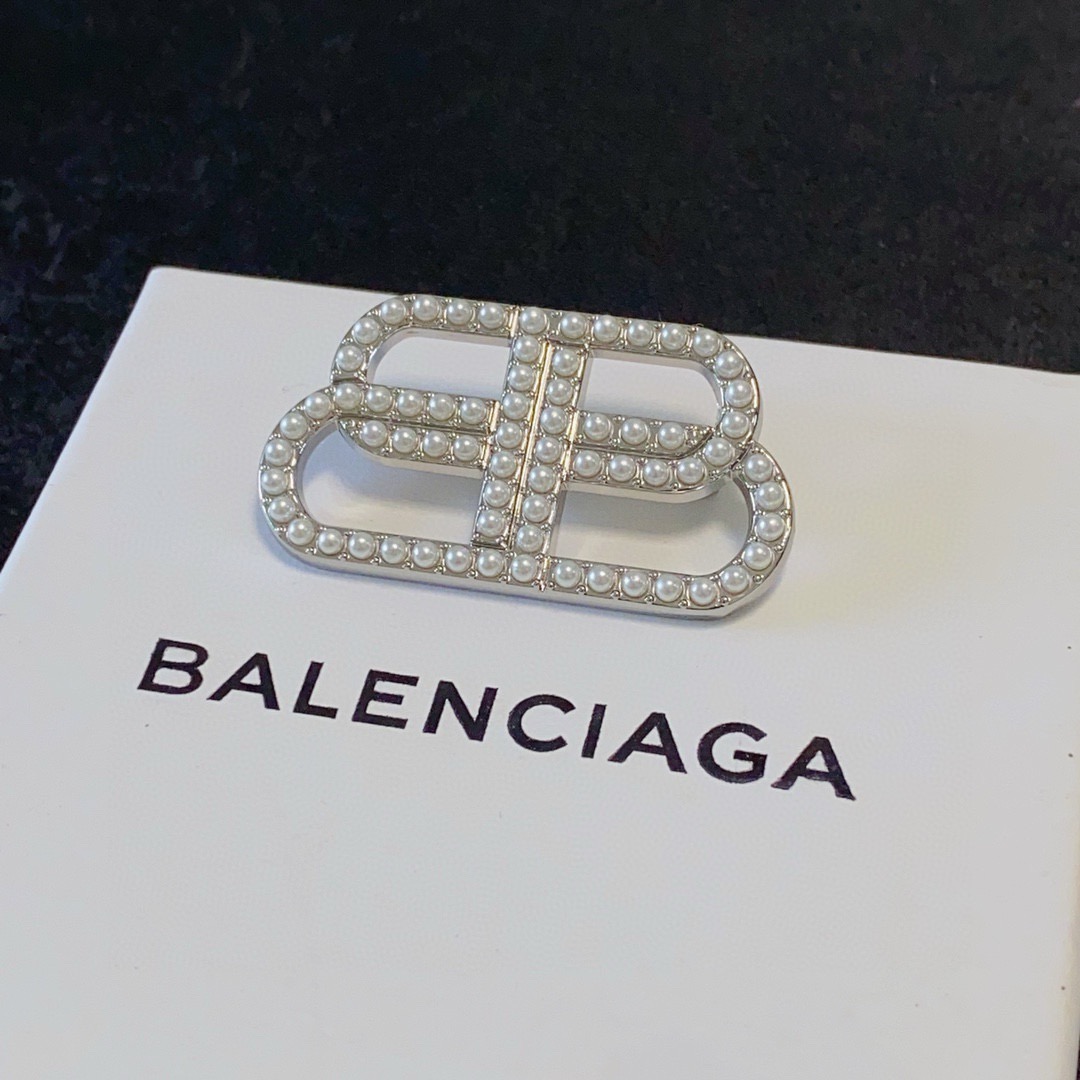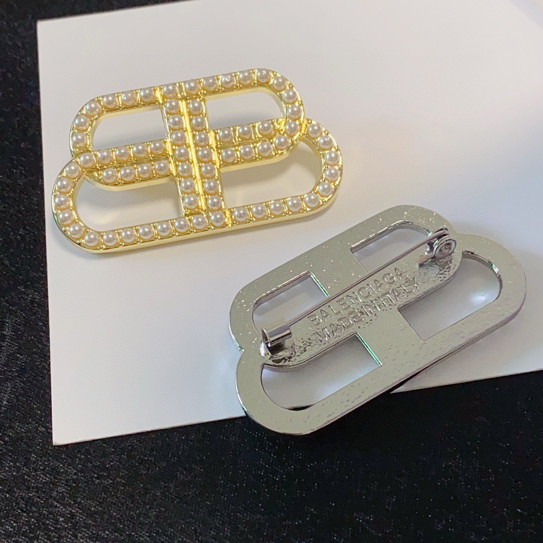 Balenciaga Statement BB Icon Interlocking Logo Pave Resin Pearl Brooch