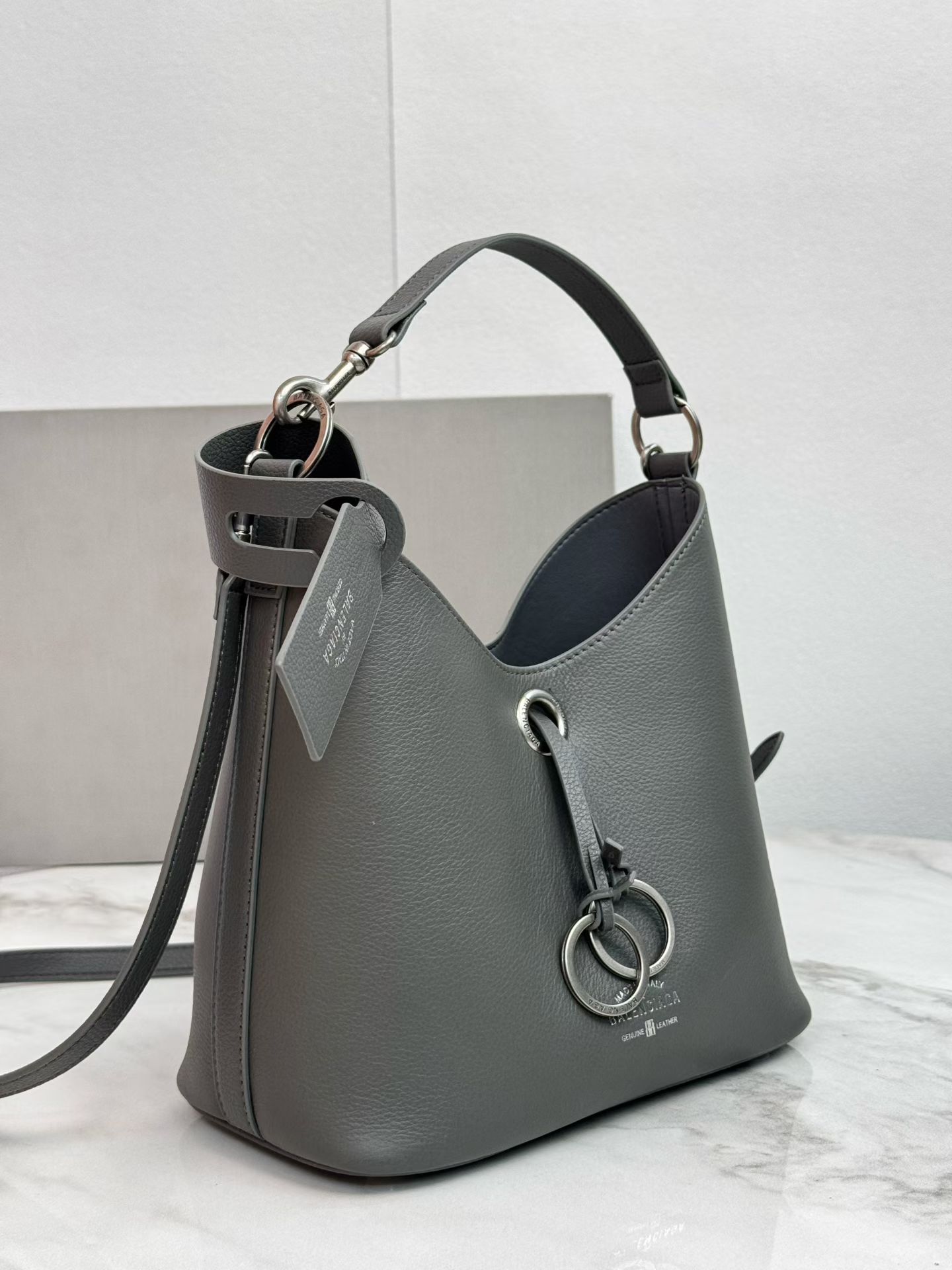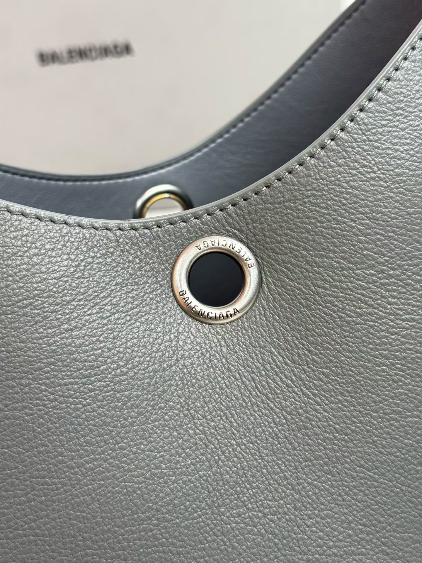 Balenciaga Duty Free Small Grey Pierced Soft Grained Leather Silver Ring Hobo Tote Bag