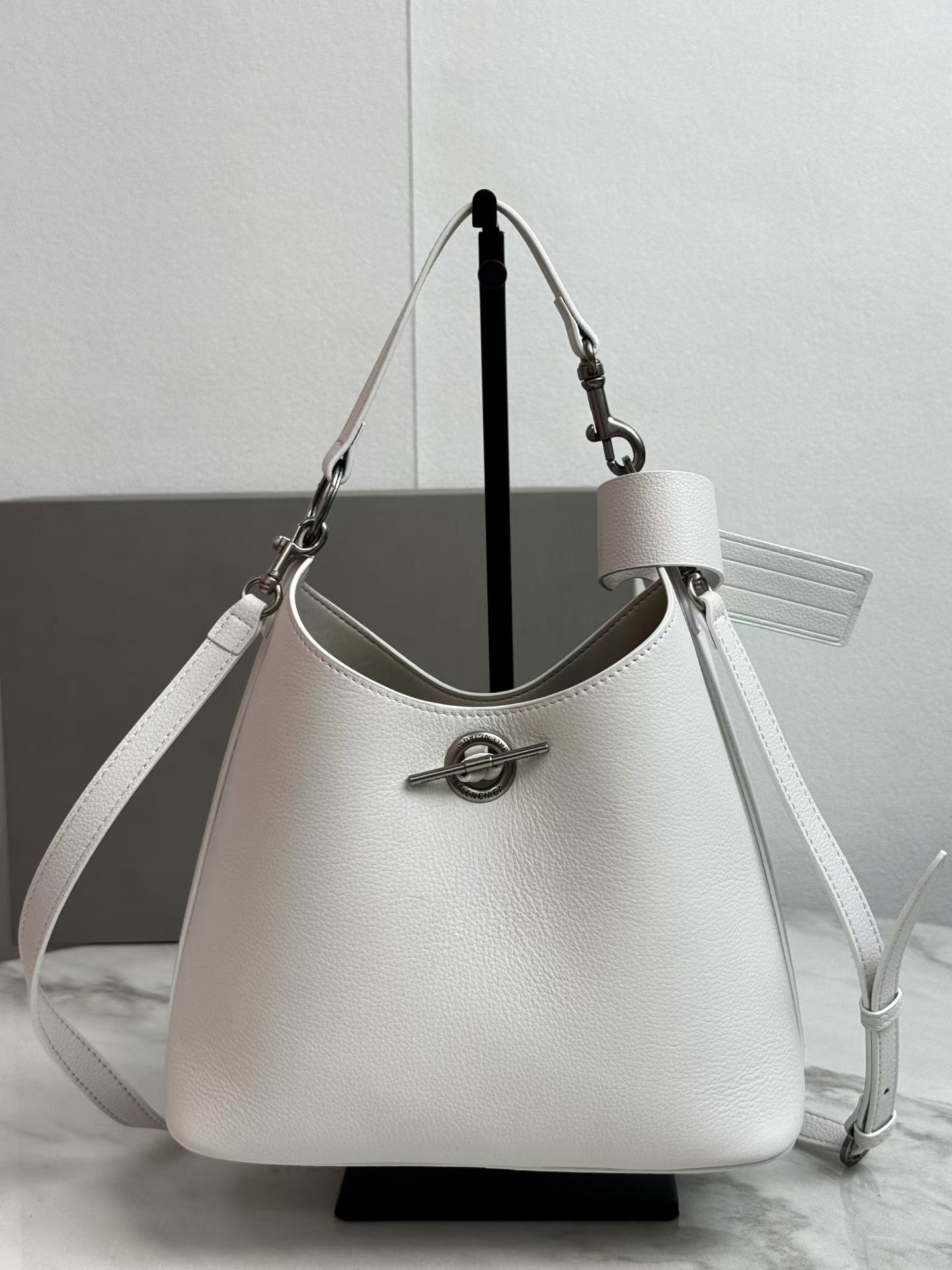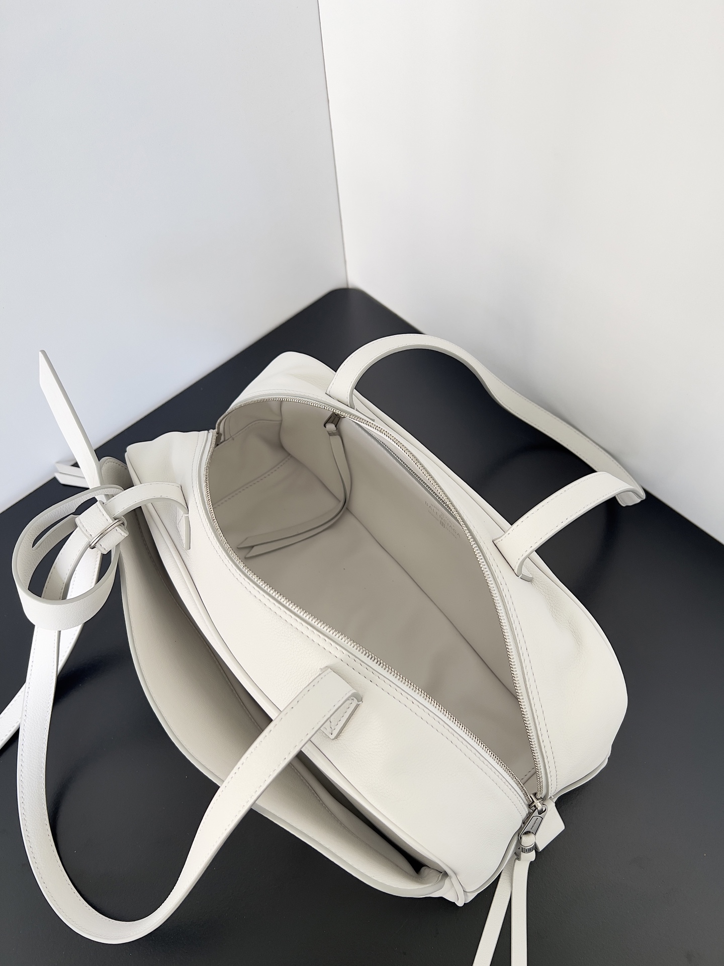 Balenciaga Carrie Small White Grained Leather Multi-Way Top Handle Bowler Bowling Bag