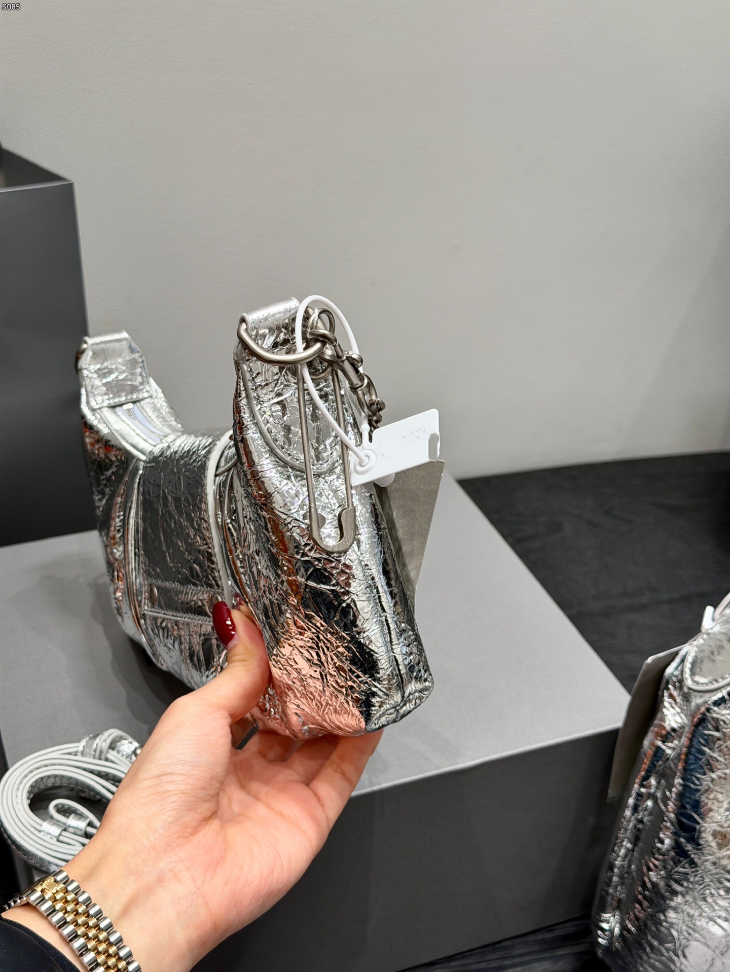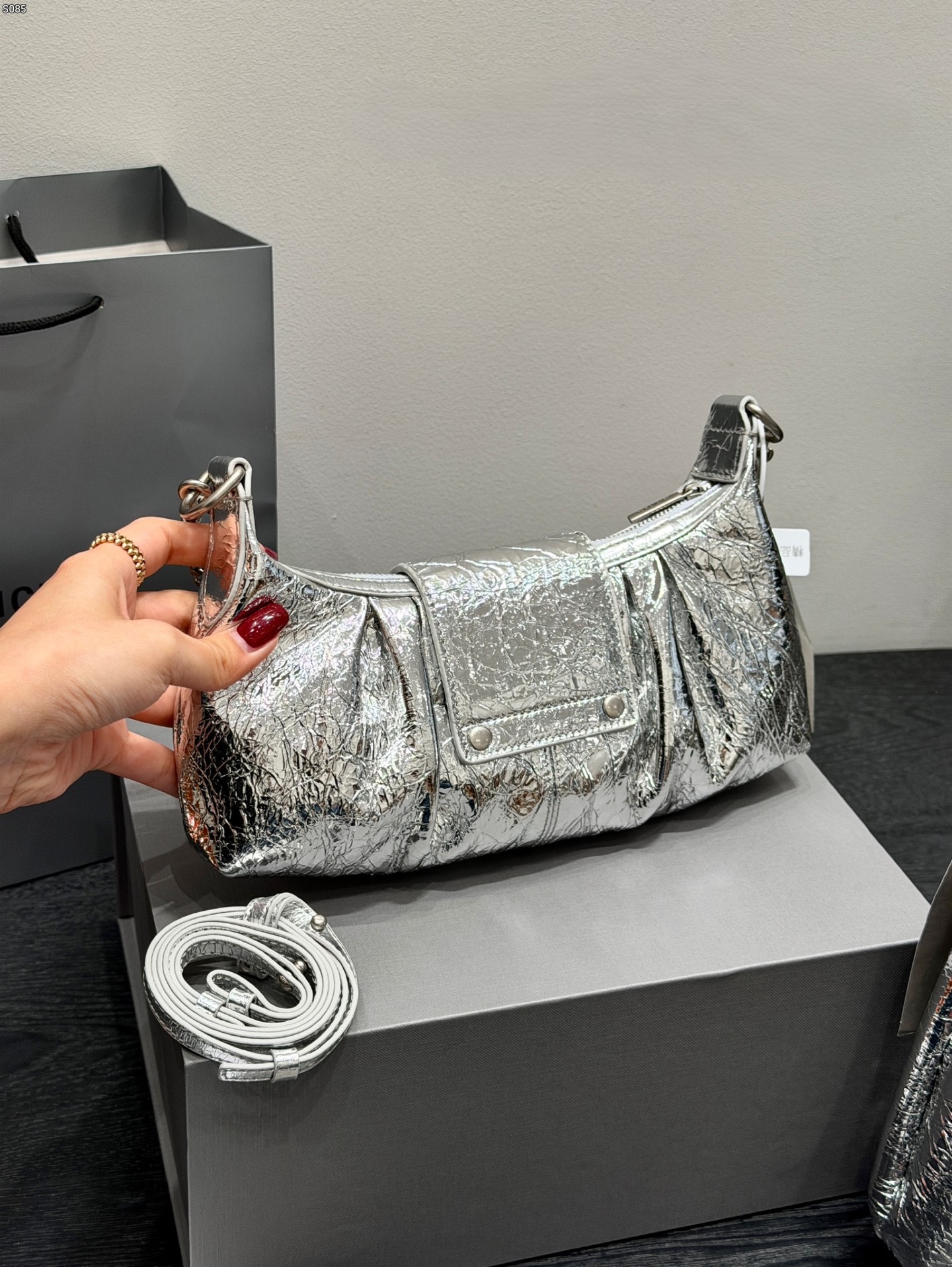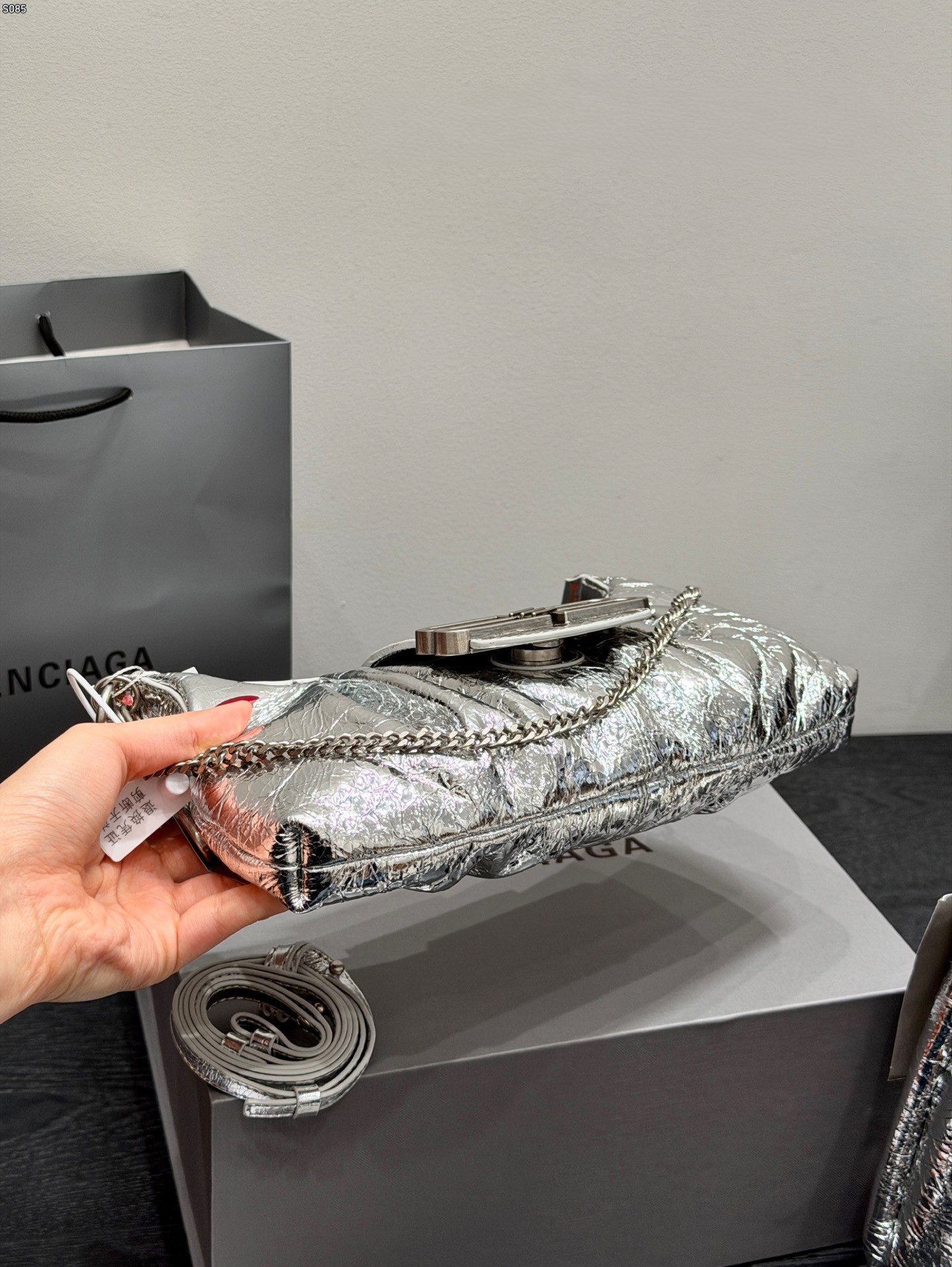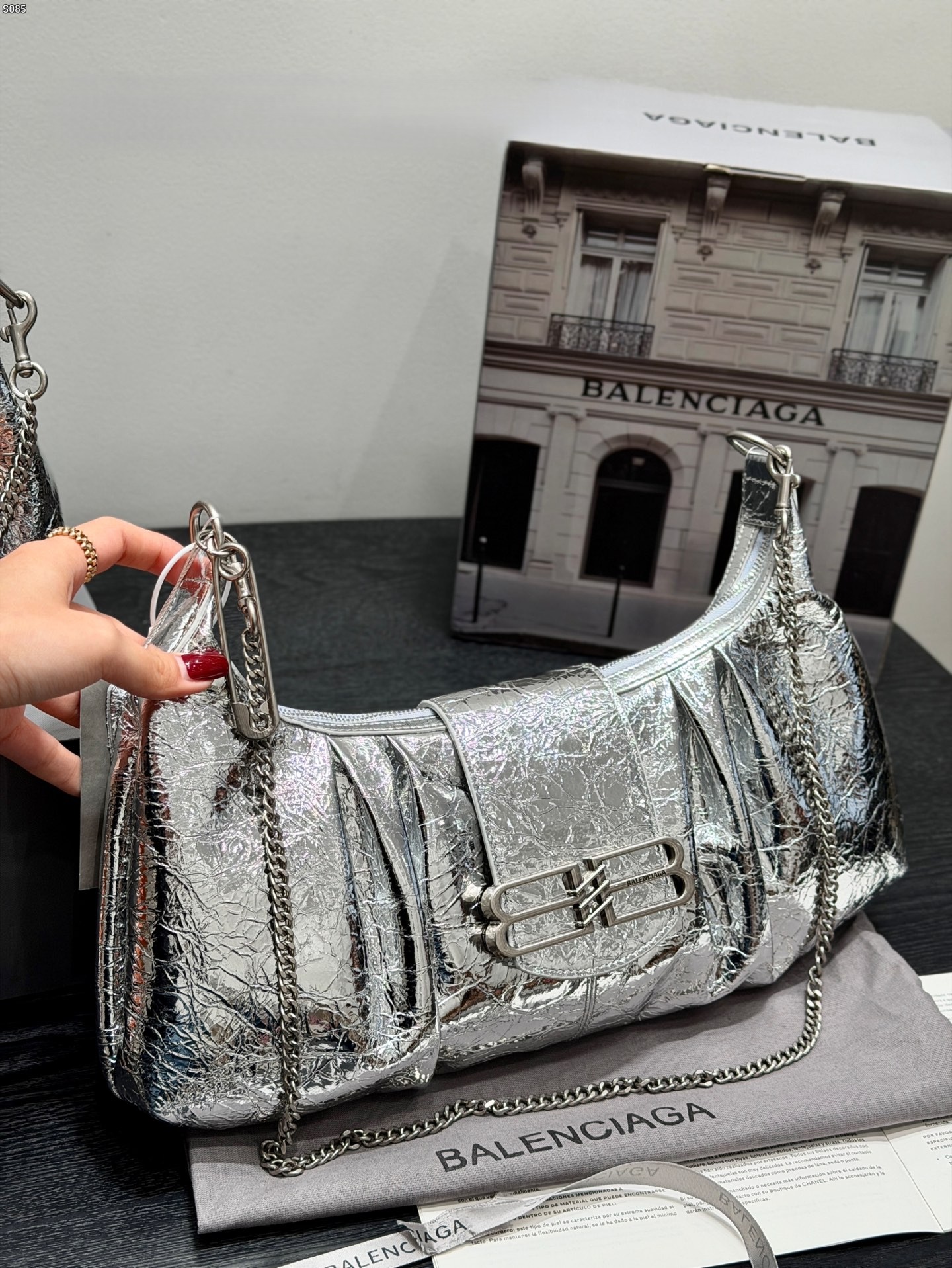 Balenciaga Black & Silver BB Logo Turn-Lock Soft Crinkled Leather Chain Pamela Safety Pin Shoulder Hobo Bag