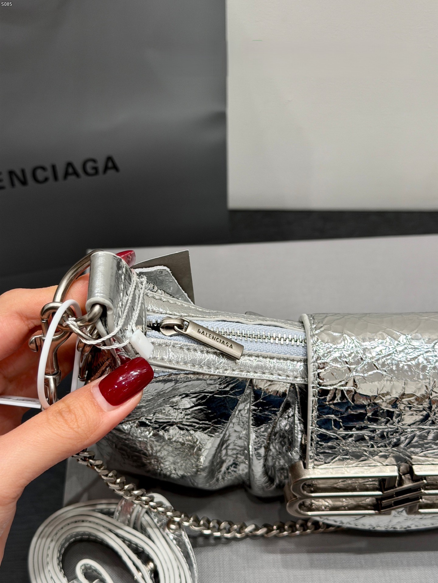 Balenciaga Multi-color Small/Mini Crocodile Embossed Leather B-Logo Curved Base Top Handle Crossbody Hourglass Bag
