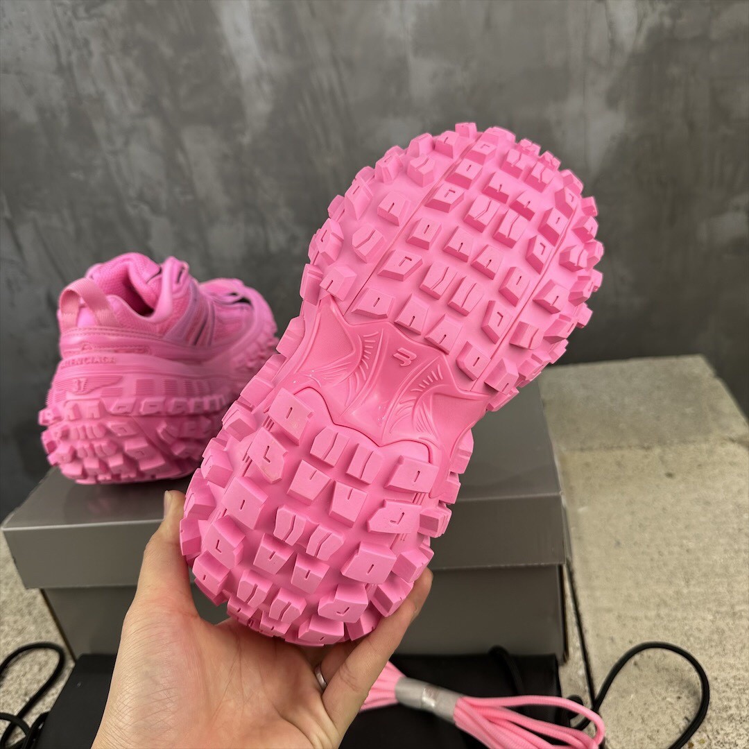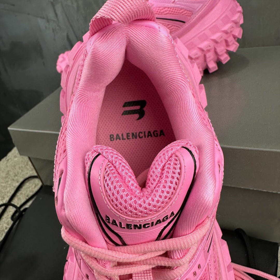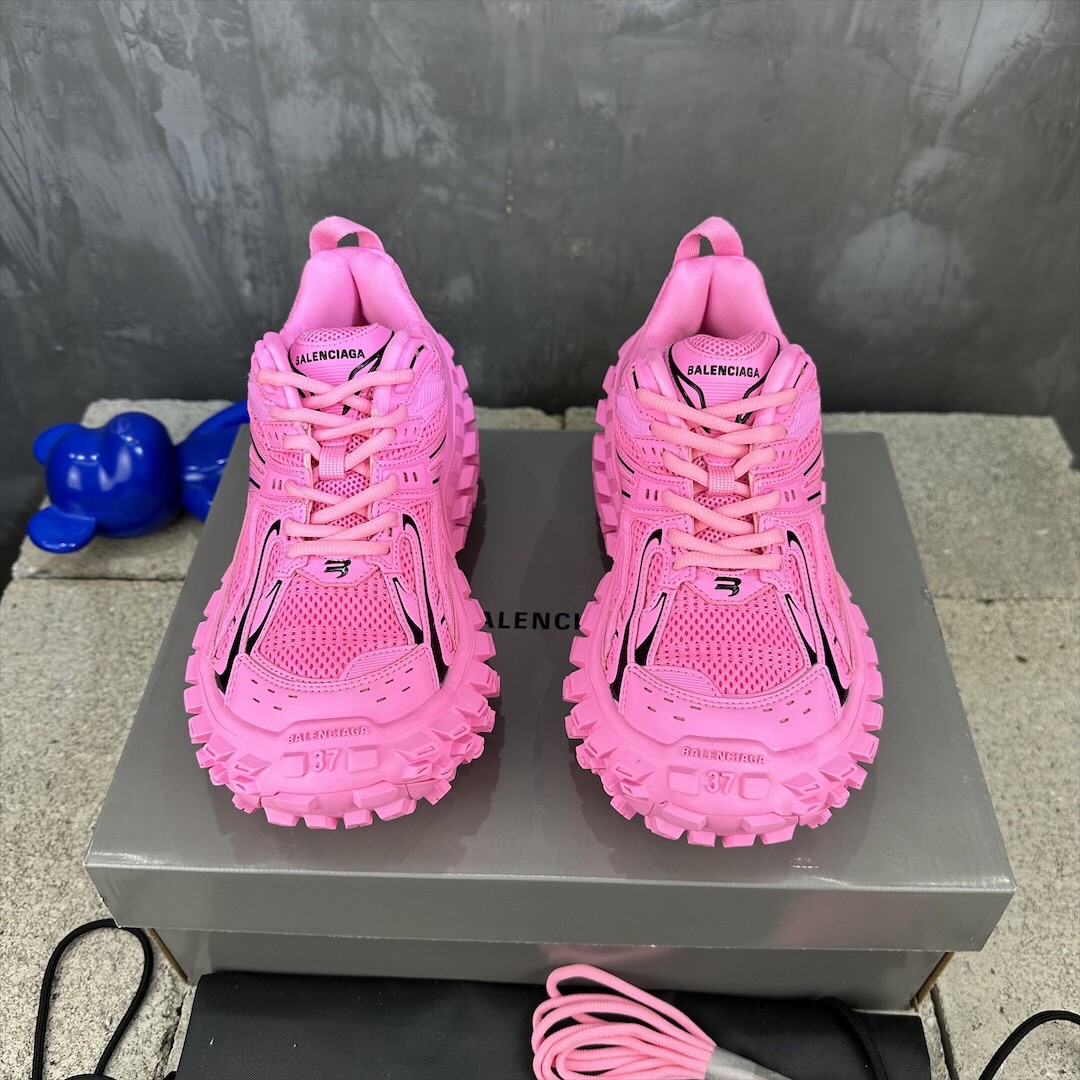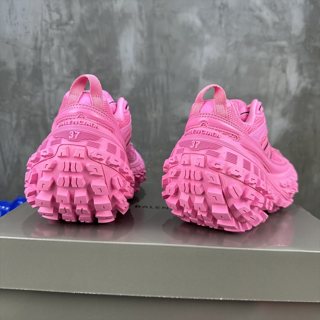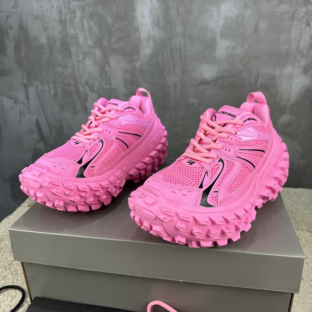 Balenciaga Bouncer Defender Neon Pink Mesh Nylon Rounded Chunky Tire Sole Sneakers /10A