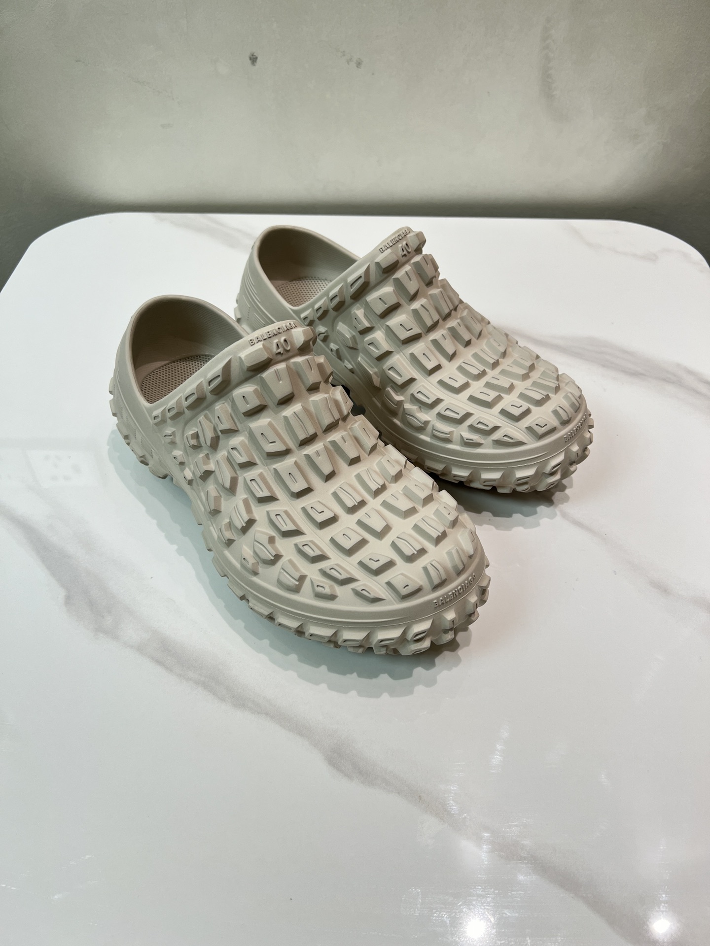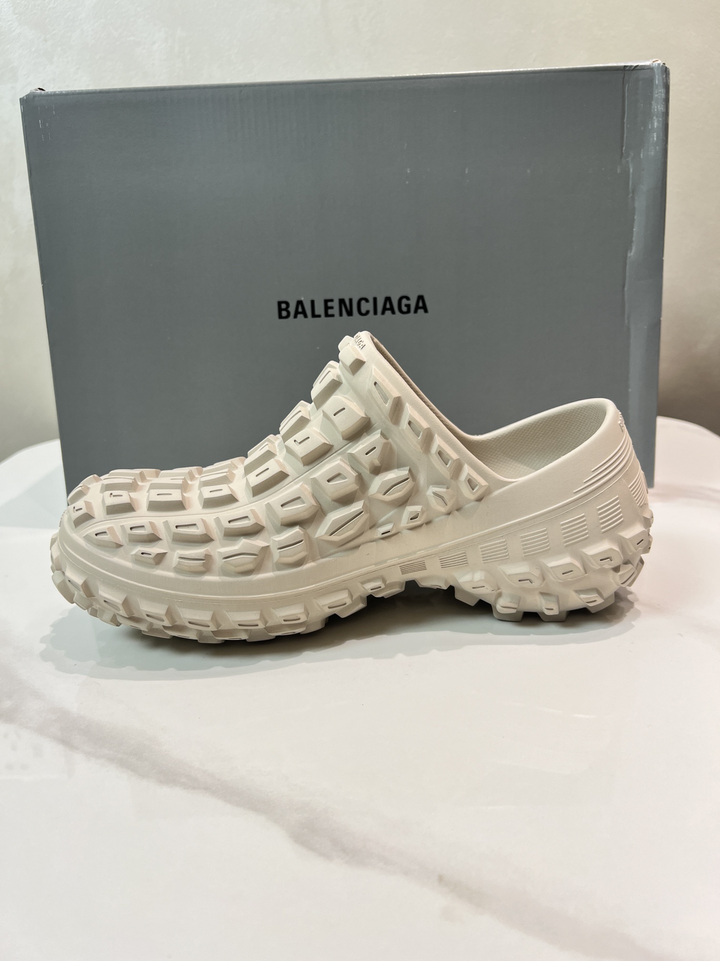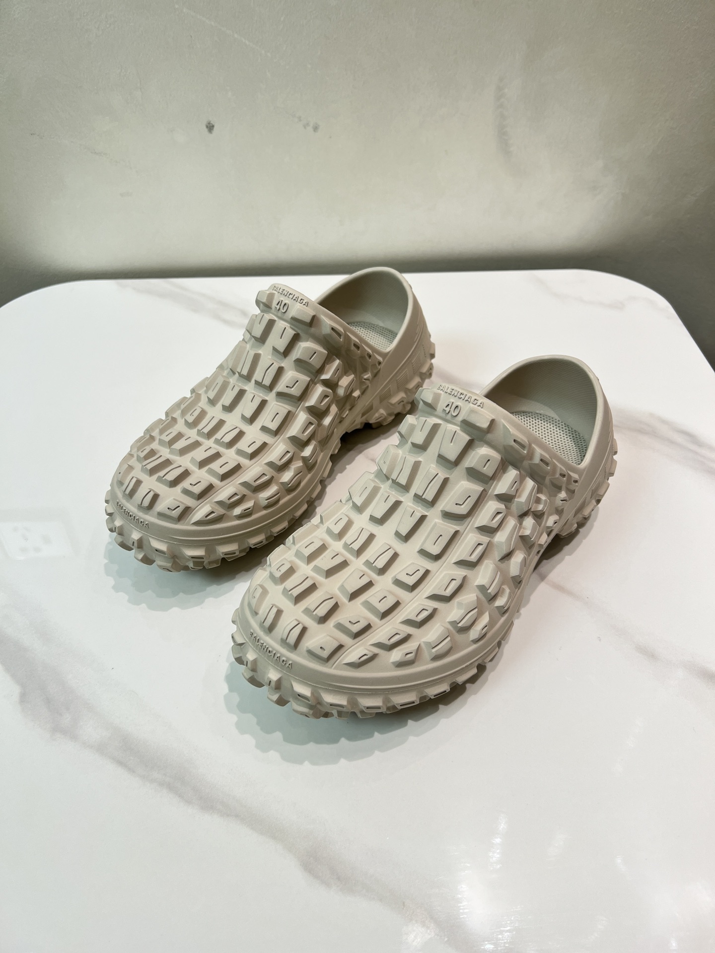 Balenciaga Bouncer Beige Rubber All-over Studded Tire Tread Sole Slip-on Defender Clogs Slippers
