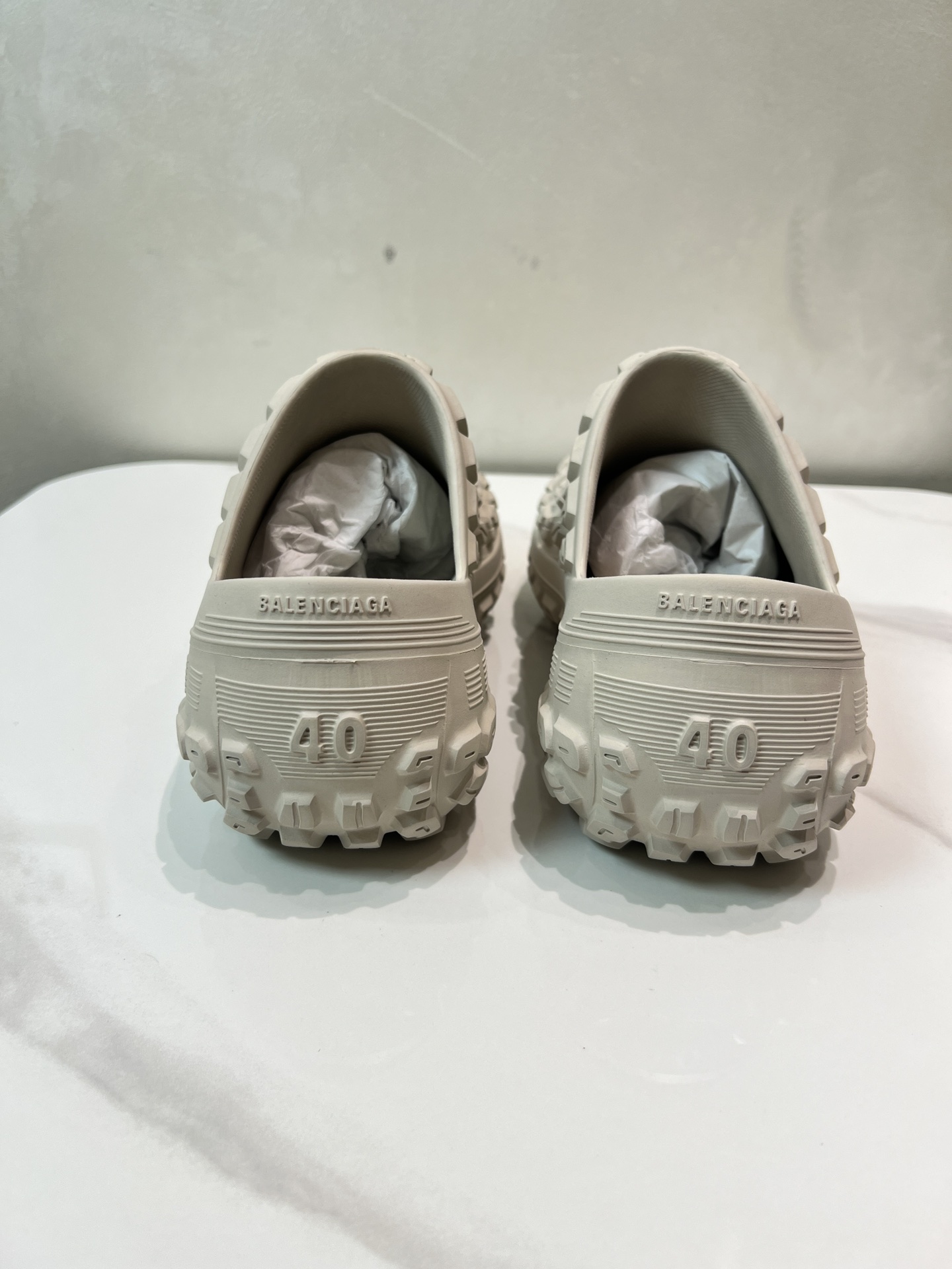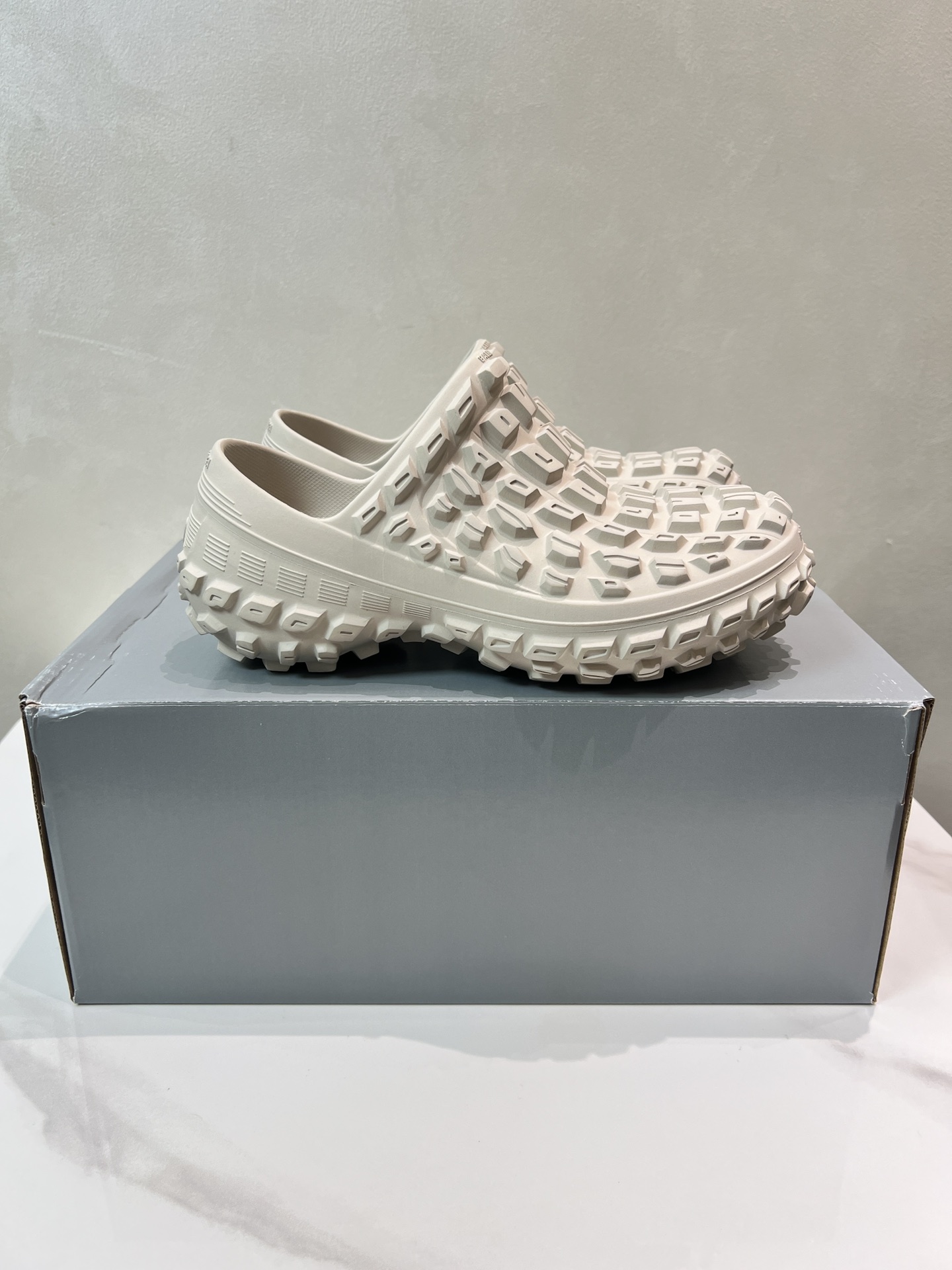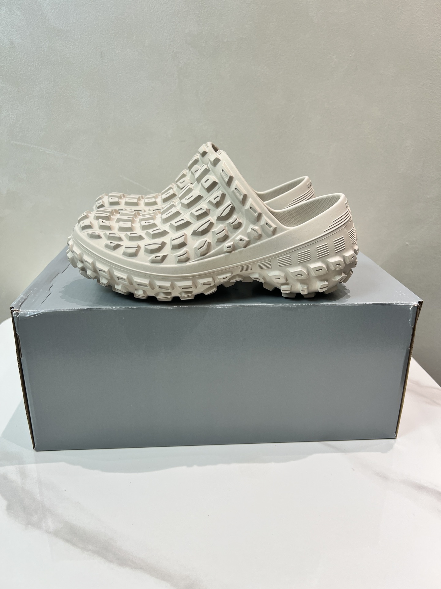 Balenciaga Bouncer Beige Rubber All-over Studded Tire Tread Sole Slip-on Defender Clogs Slippers