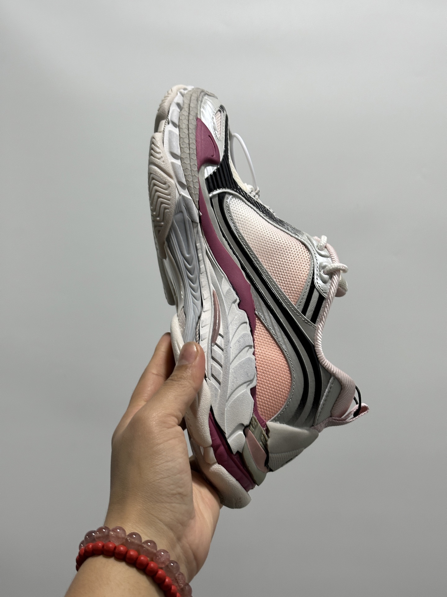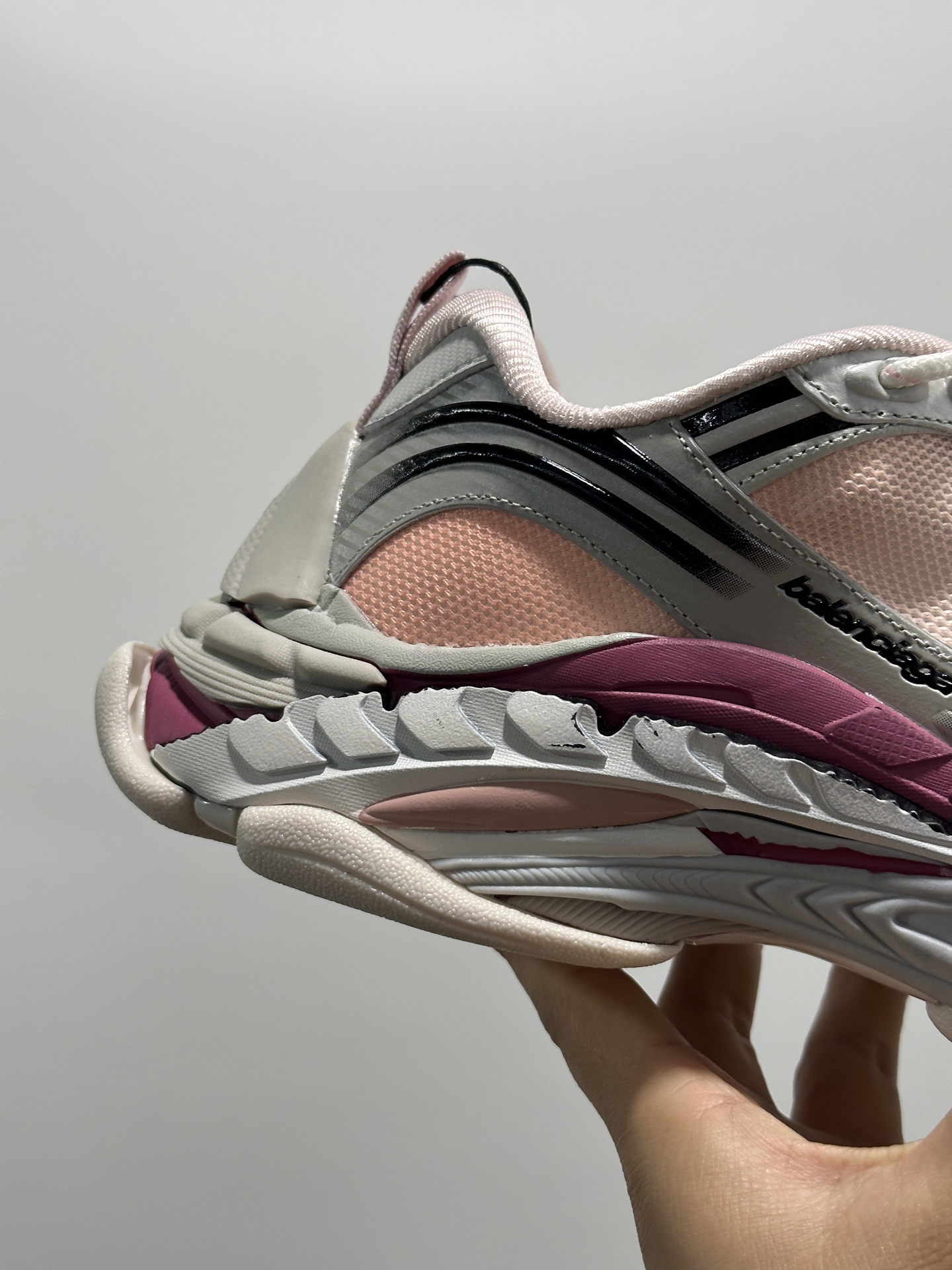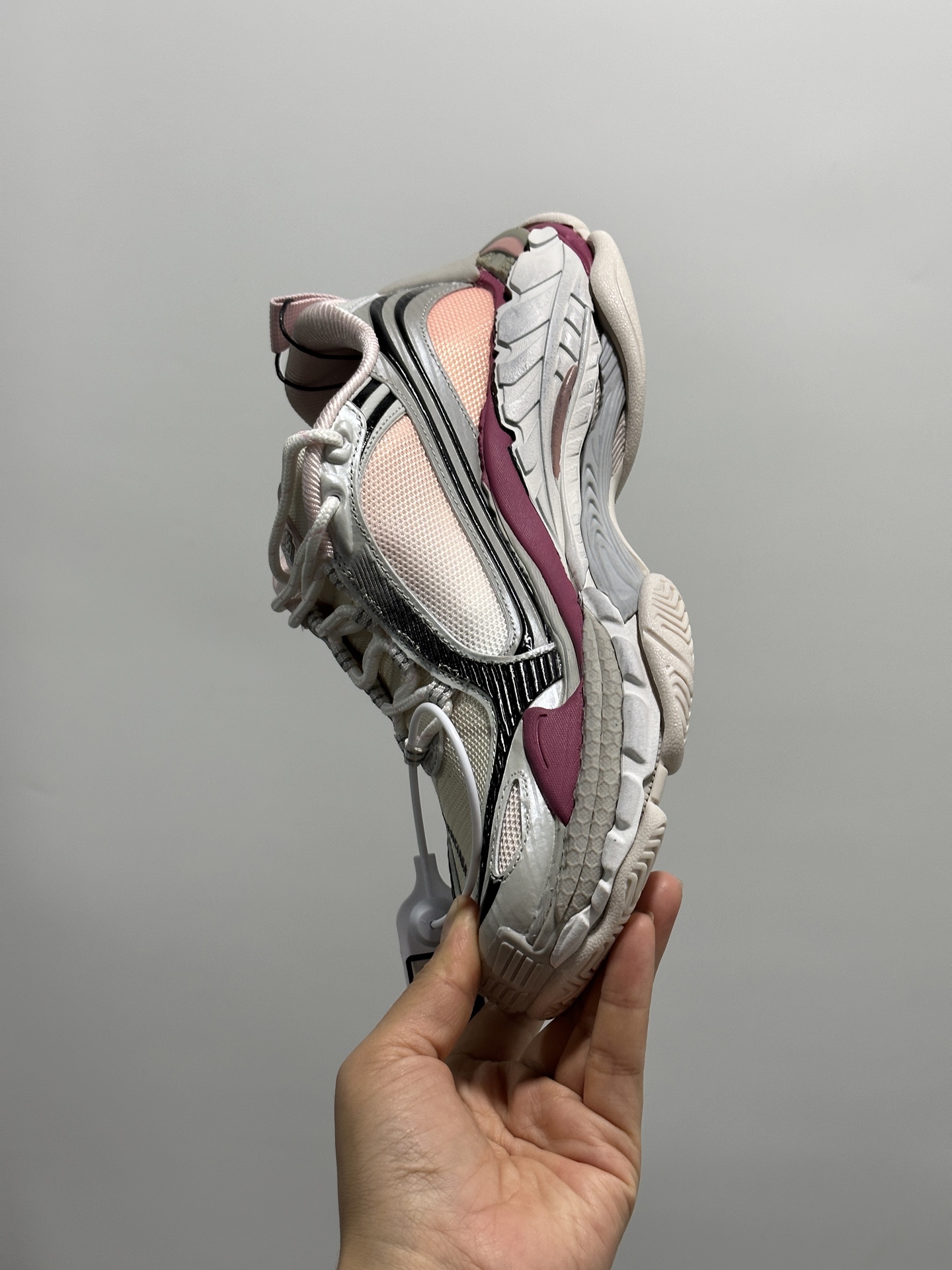 Balenciaga 3XL Pink White Multi Mesh Upper Nylon Worn-out Effect Chunky Sneakers