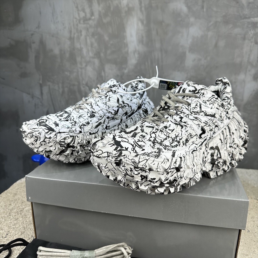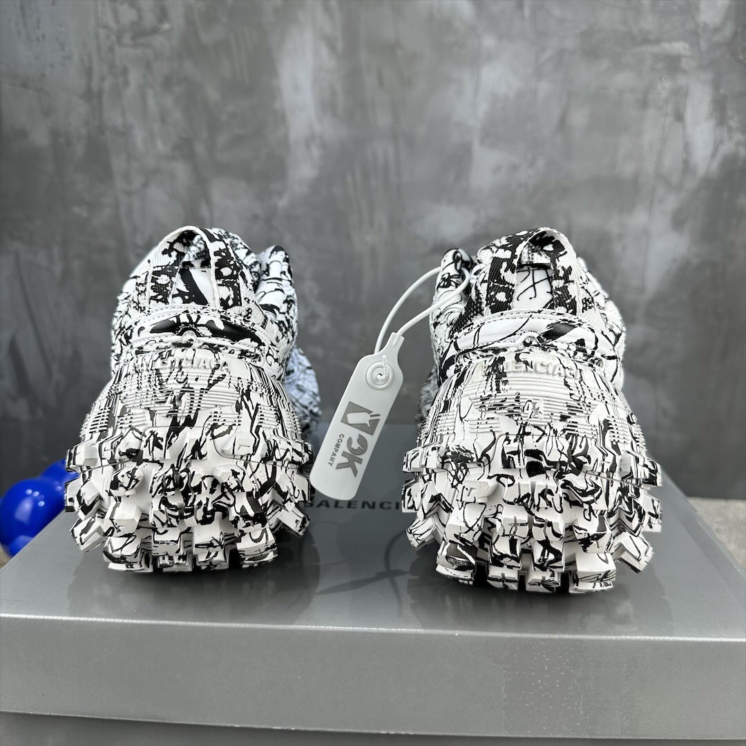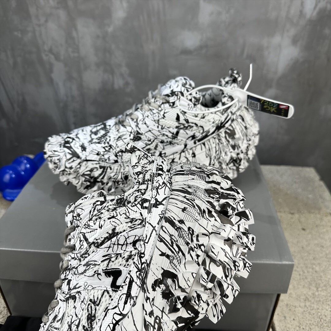 Balenciaga Bouncer Defender White Graffiti Scribble Muddy Mesh Nylon Rounded Chunky Tire Sole Sneakers /10A