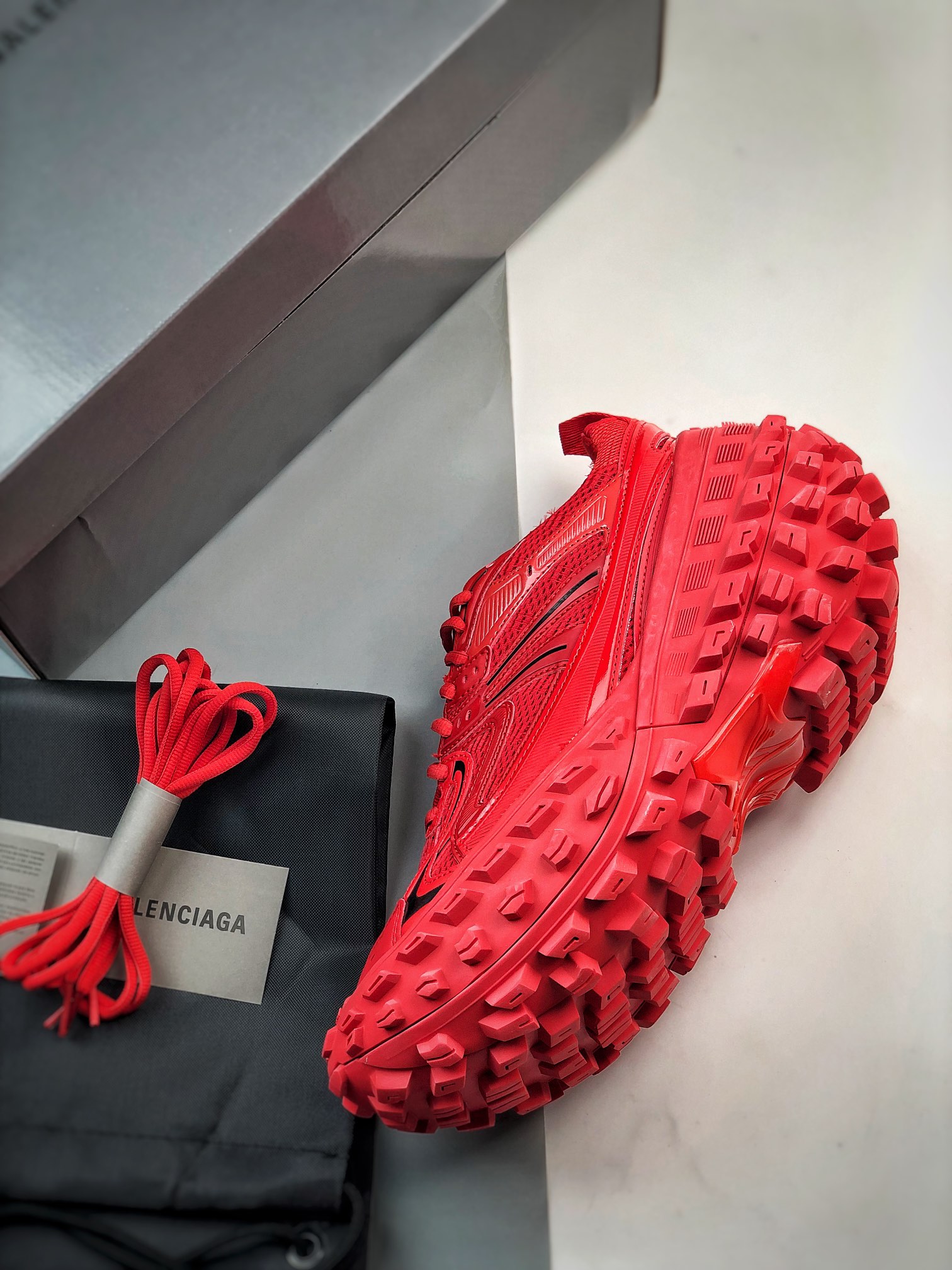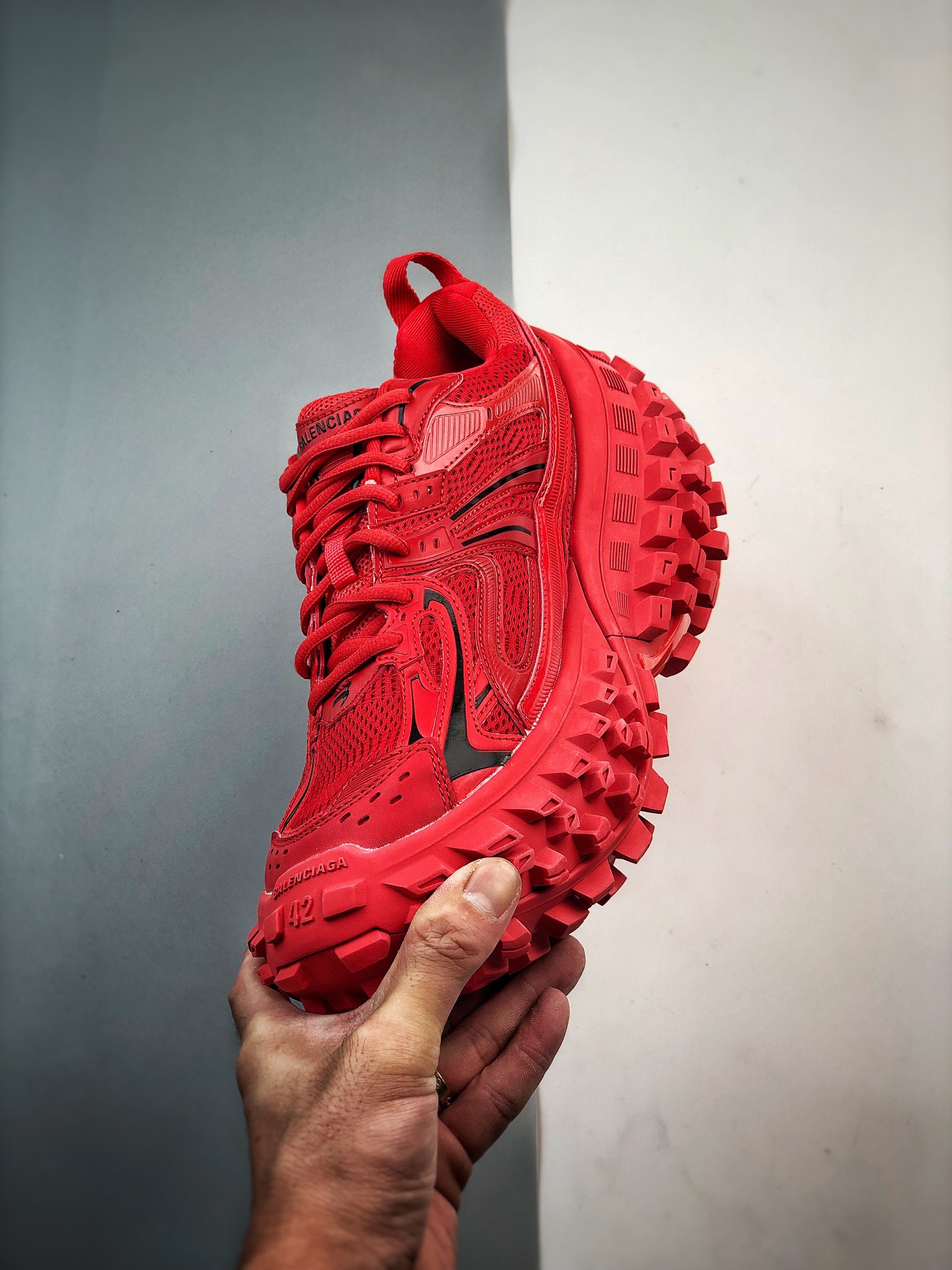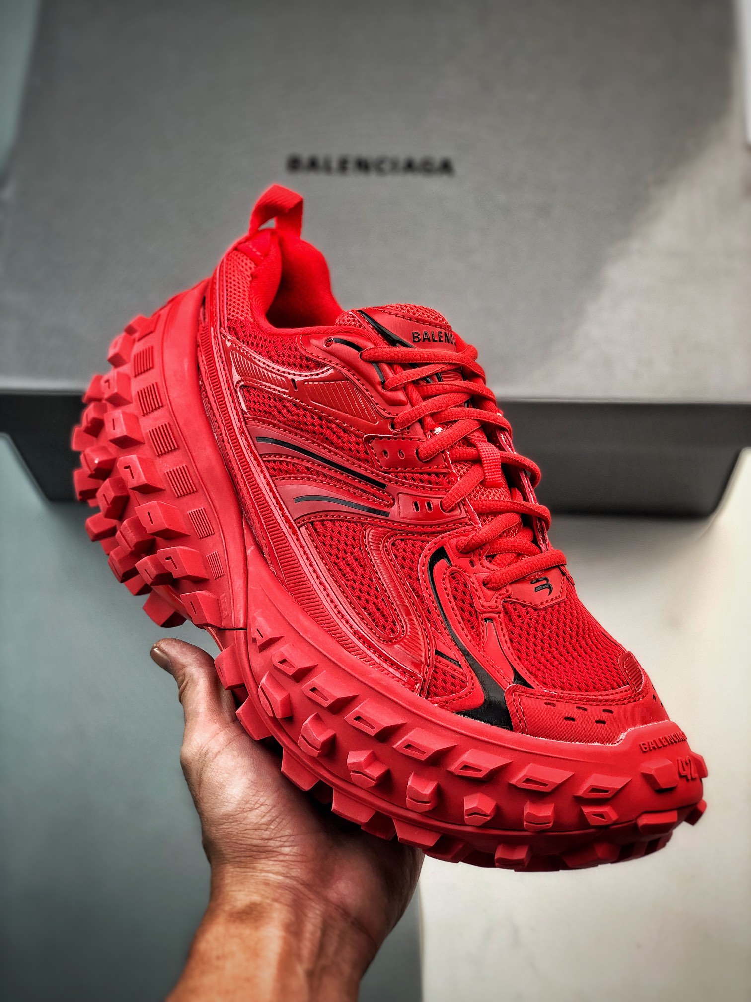 Balenciaga Bouncer Defender Red Mesh Nylon Rounded Chunky Tire Sole Sneakers /10A