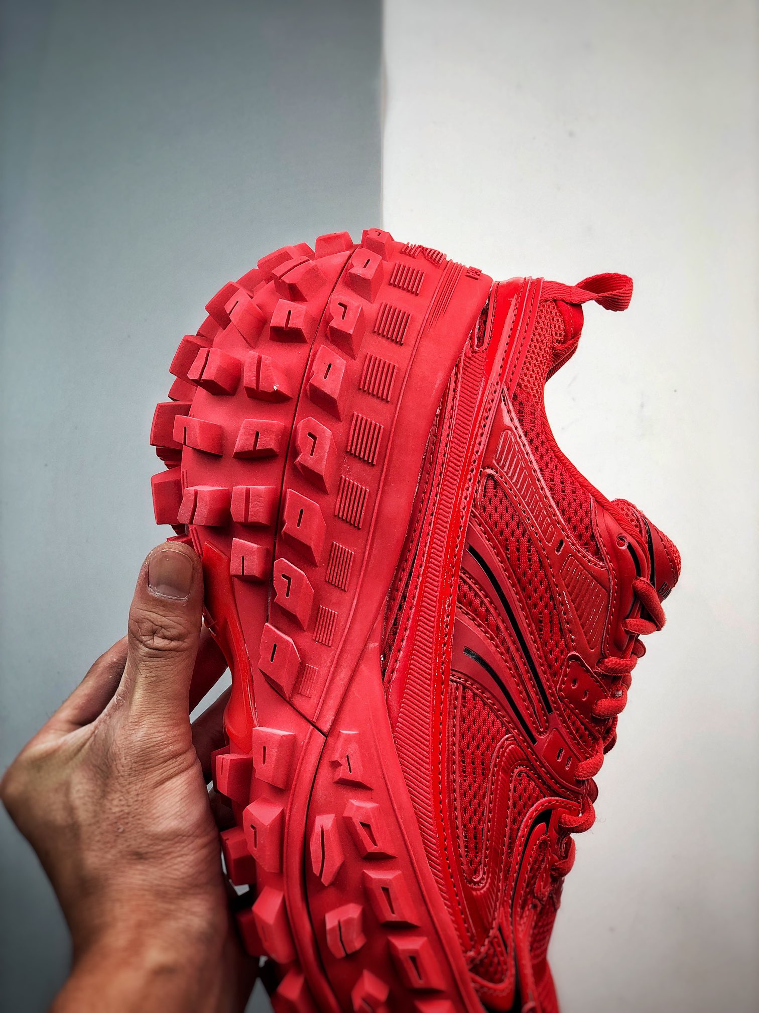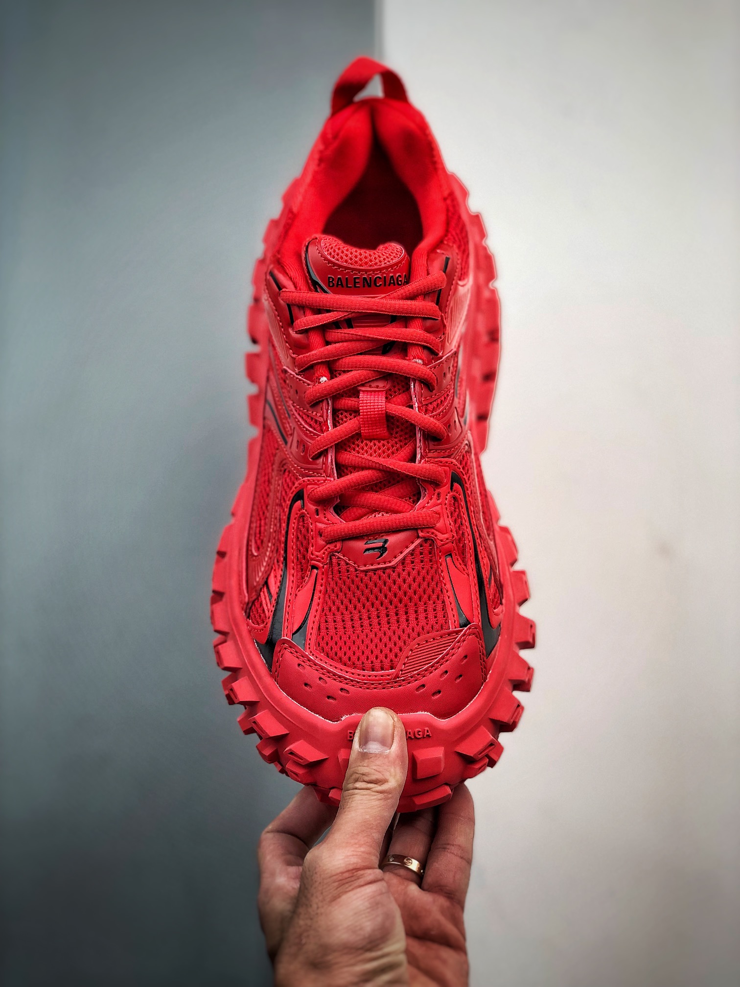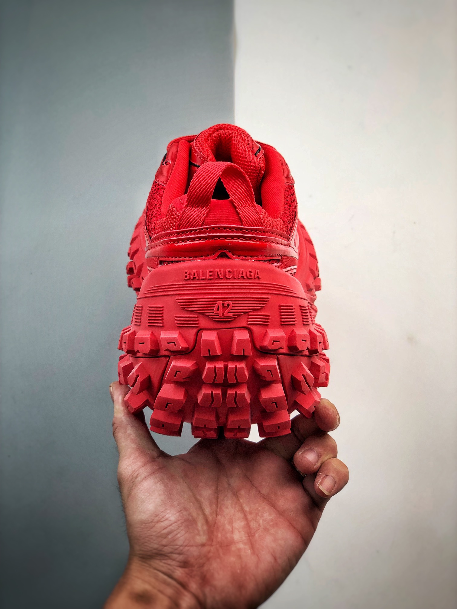 Balenciaga Bouncer Defender Red Mesh Nylon Rounded Chunky Tire Sole Sneakers /10A
