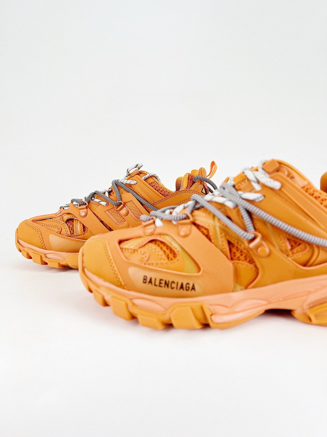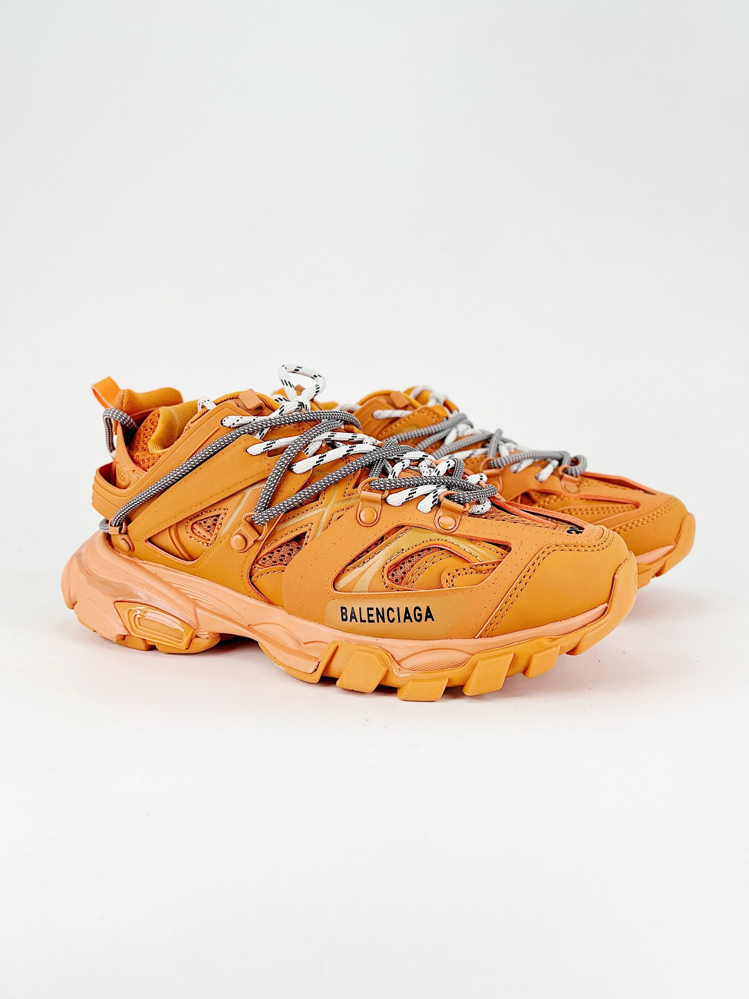 Balenciaga Track Orange Mixed Material Articulated Panel Lace Up Chunky Sneaker