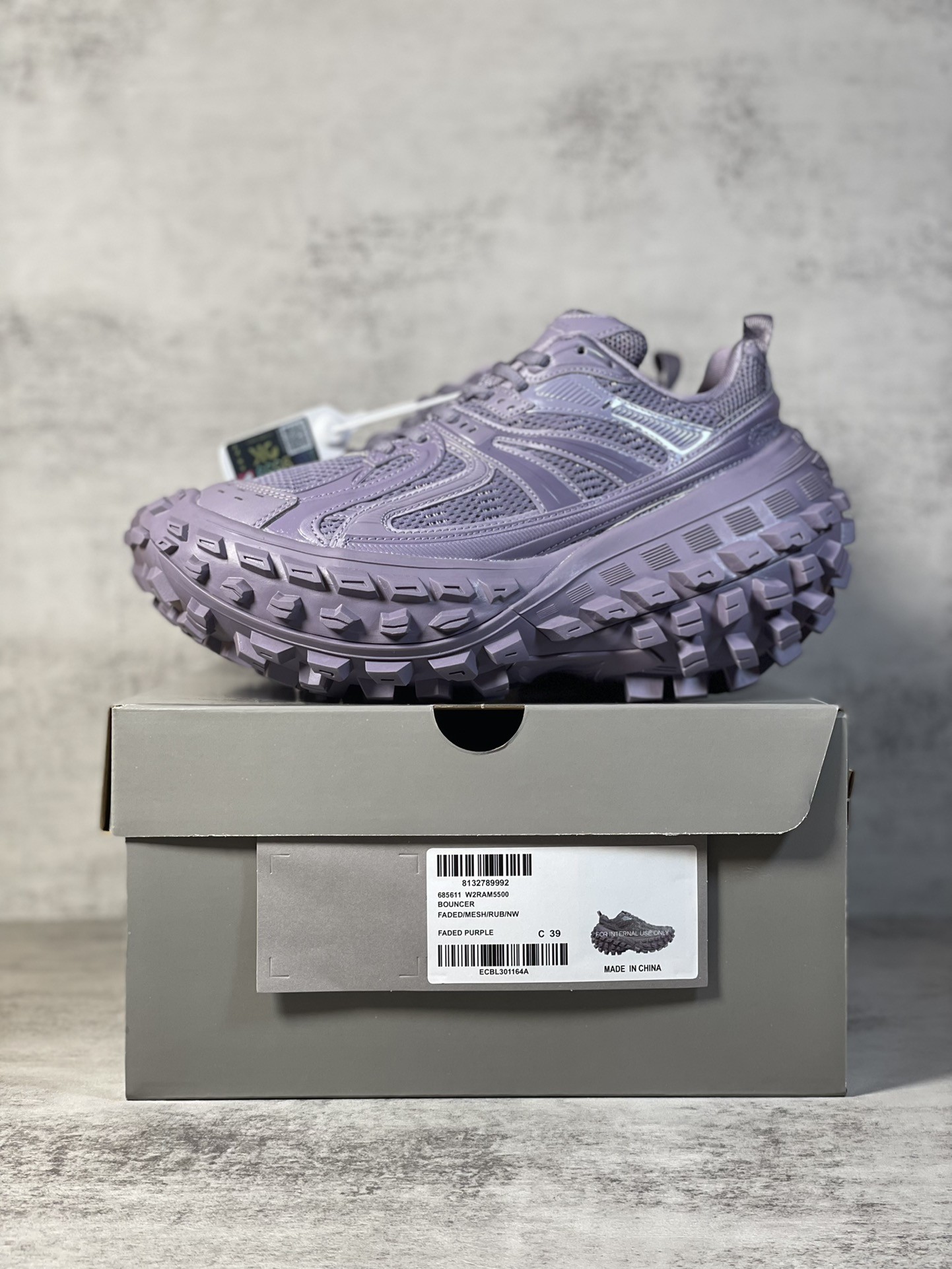 Balenciaga Bouncer Defender Faded Purple Mesh Nylon Rounded Chunky Tire Sole Sneakers