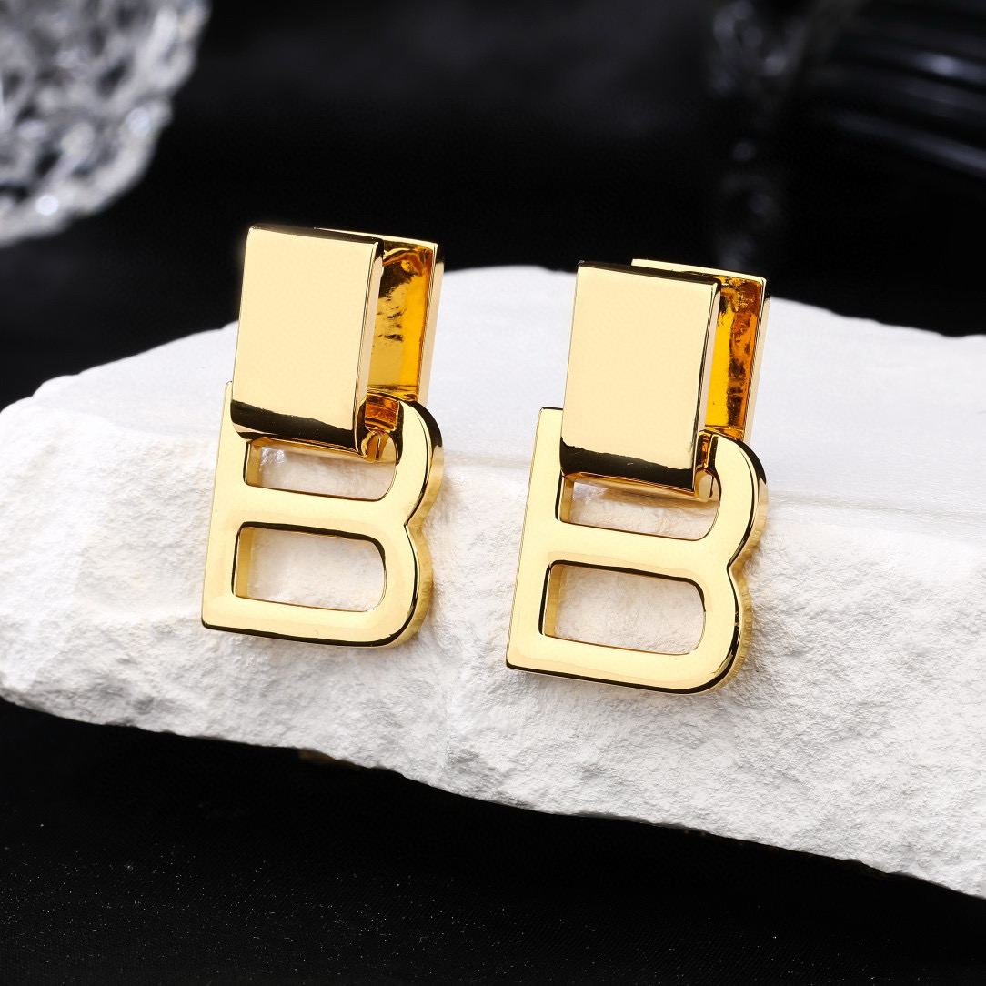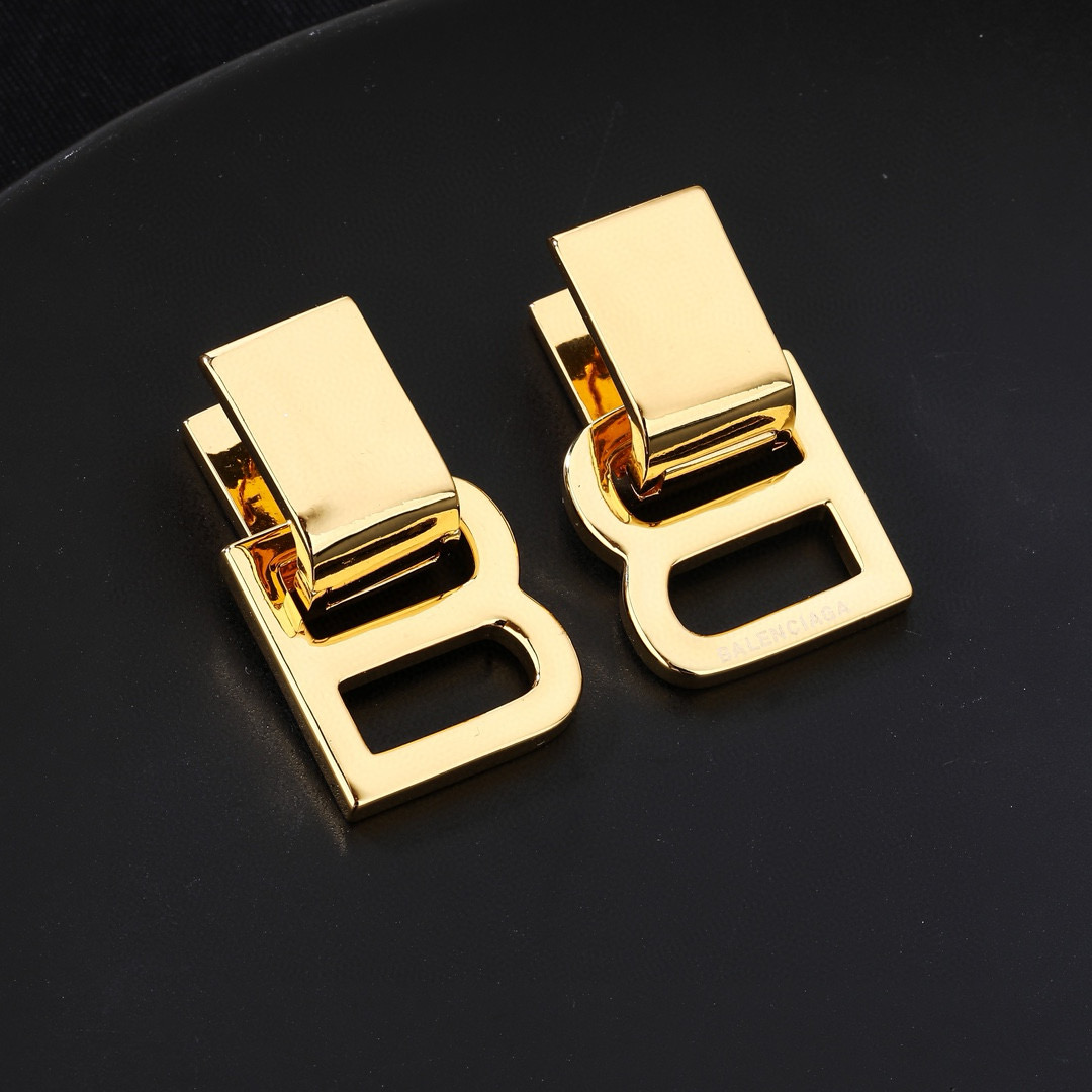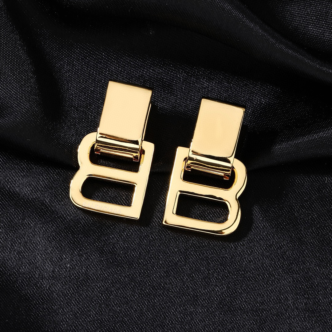 Balenciaga B Chain Polished Gold Tone Letter B Rectangular Top Drop Earrings