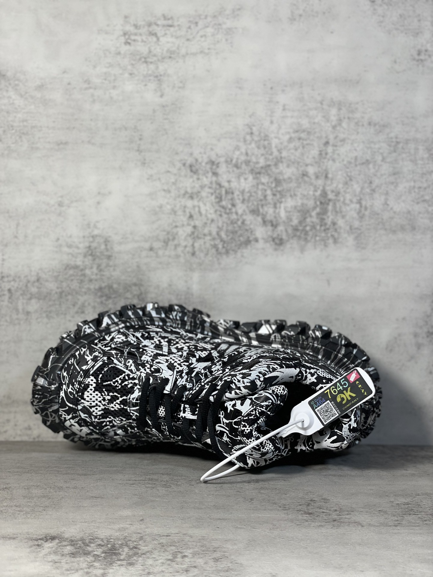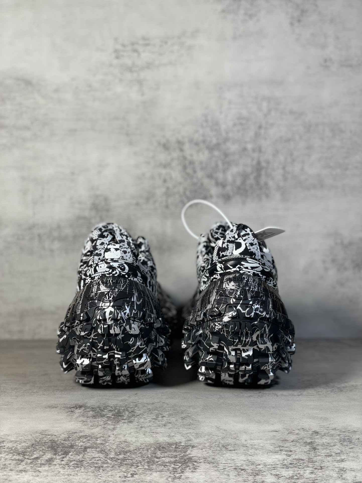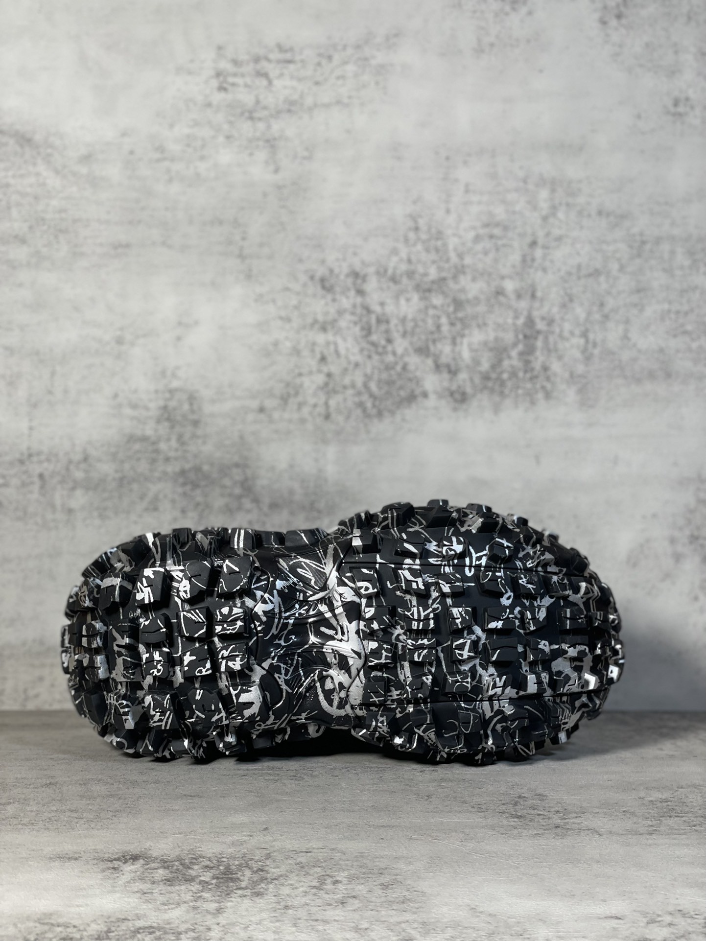 Balenciaga Bouncer Defender Black Graffiti Scribble Muddy Mesh Nylon Rounded Chunky Tire Sole Sneakers /10A
