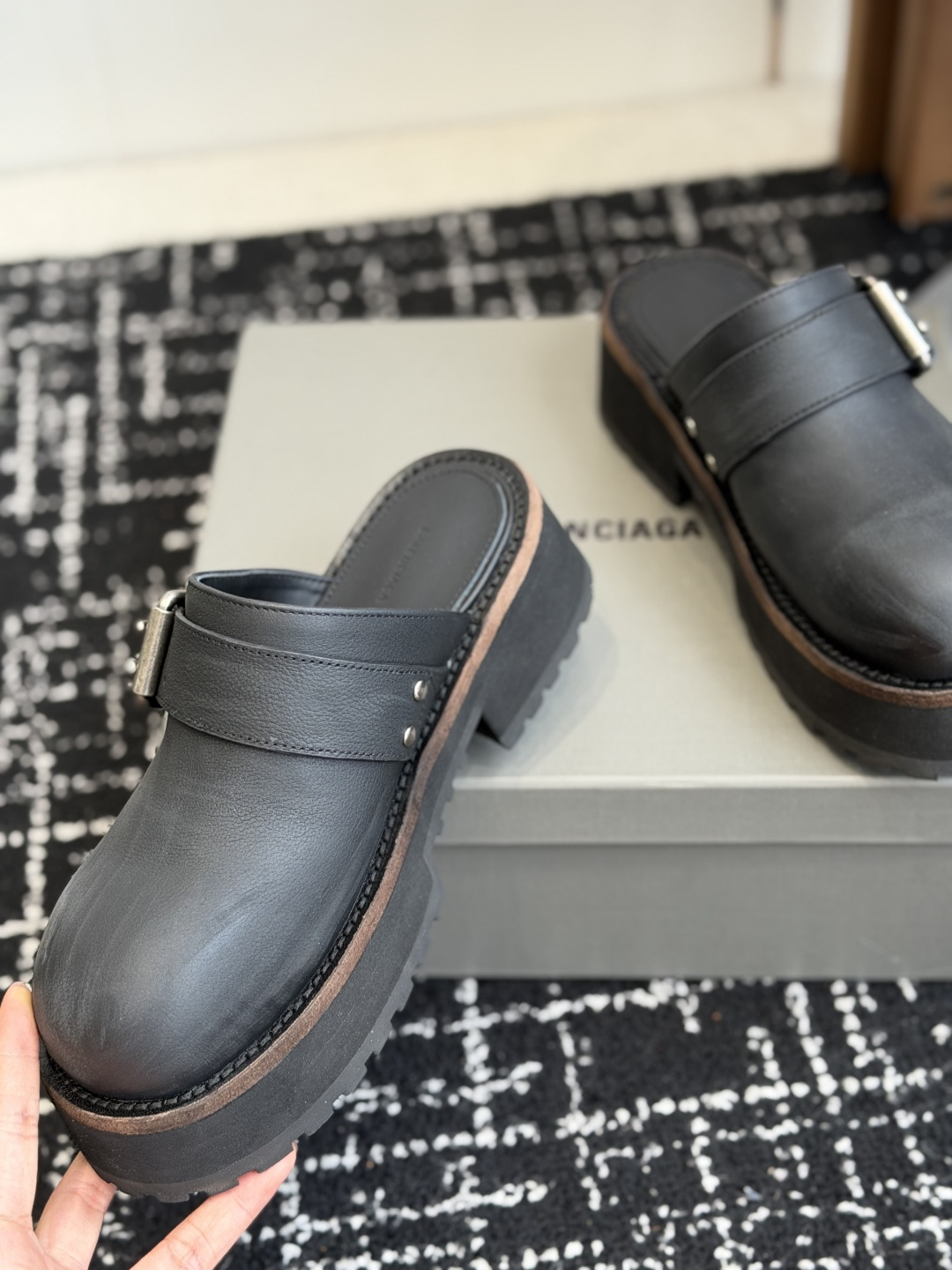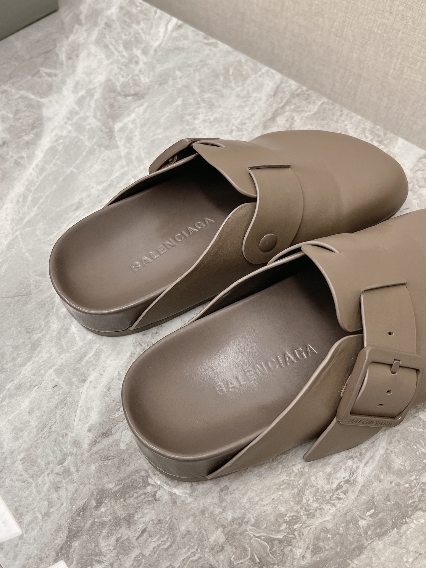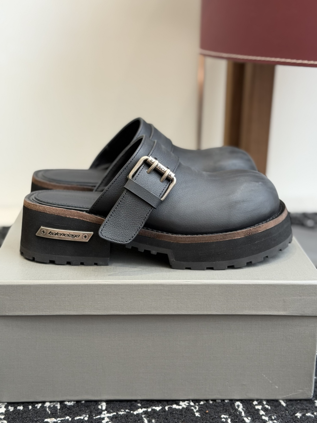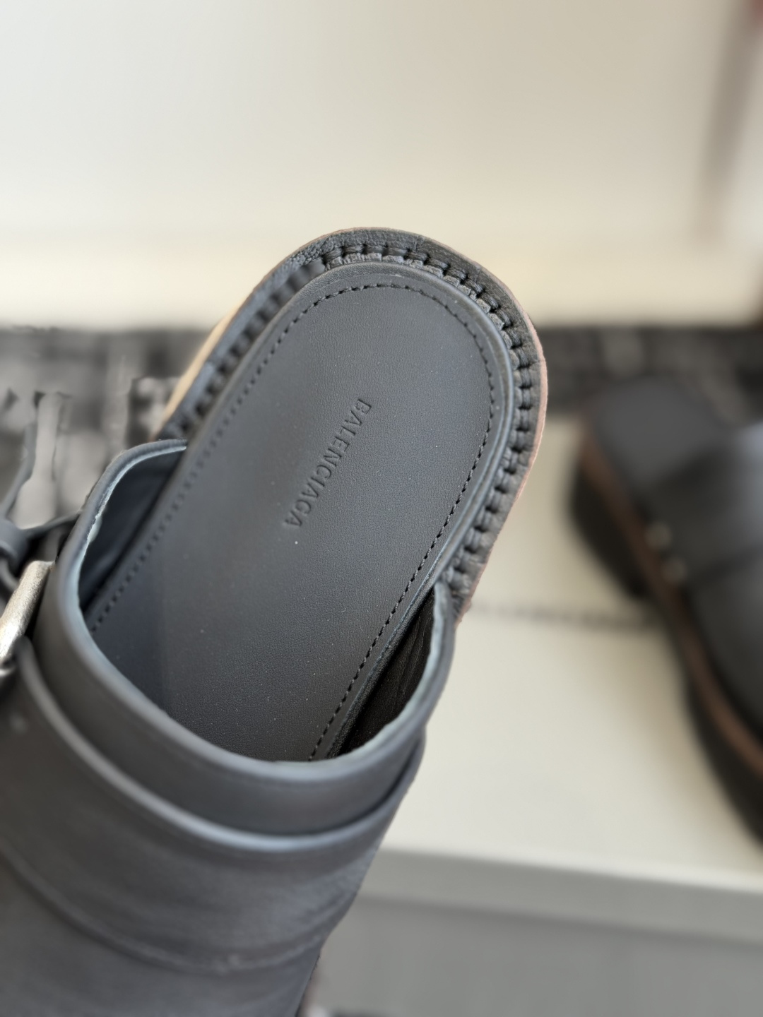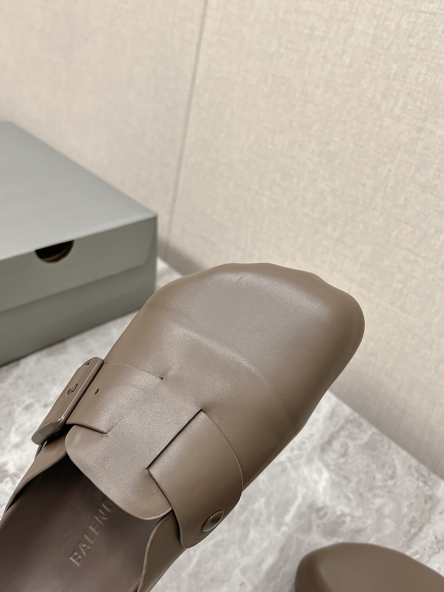 Balenciaga x Scholl Pescura Sunday Round Toe Platform Buckle Leather Cork-Covered Sole Mules Sandals