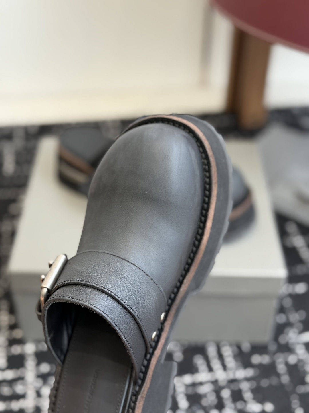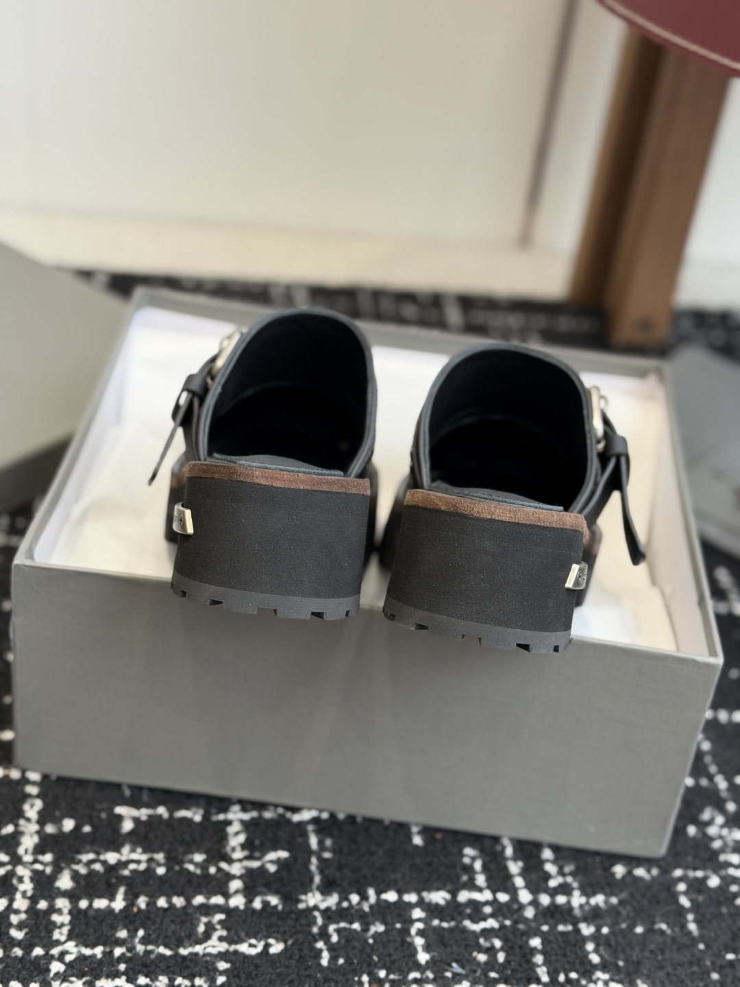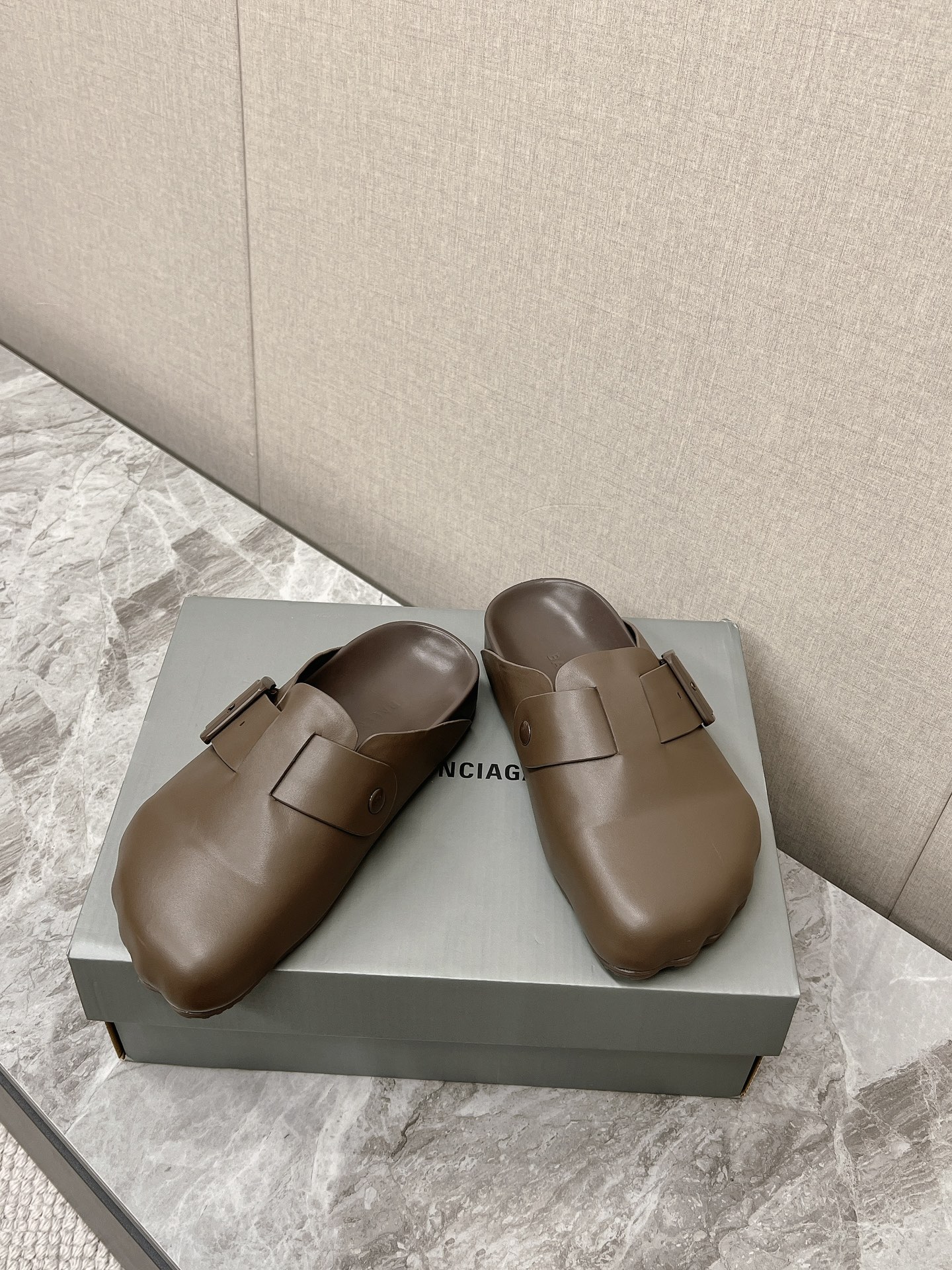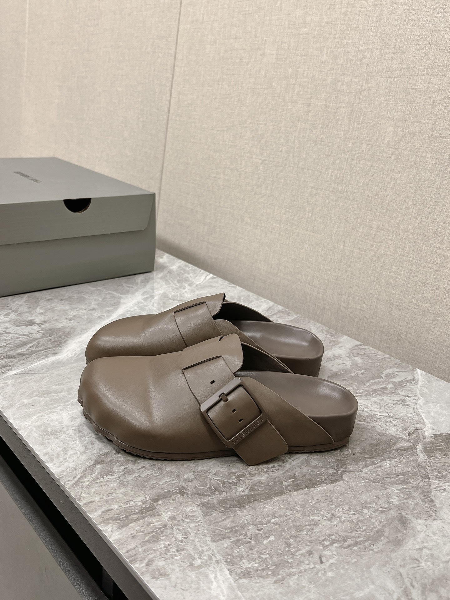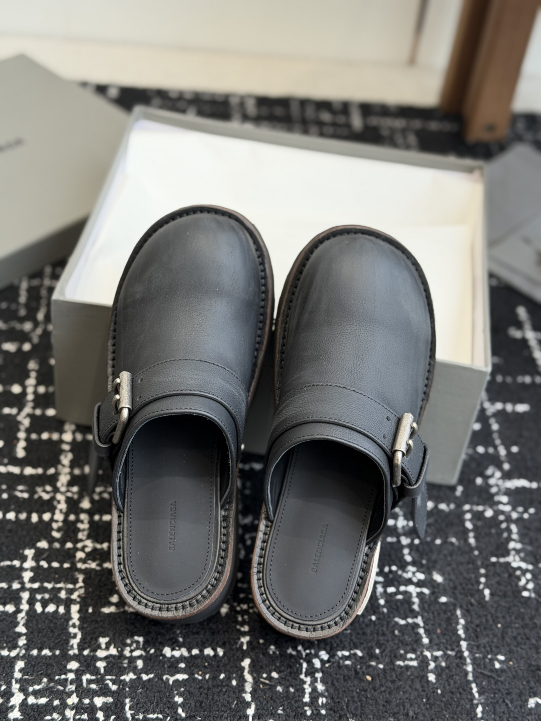 Balenciaga x Scholl Pescura Sunday Round Toe Platform Buckle Leather Cork-Covered Sole Mules Sandals