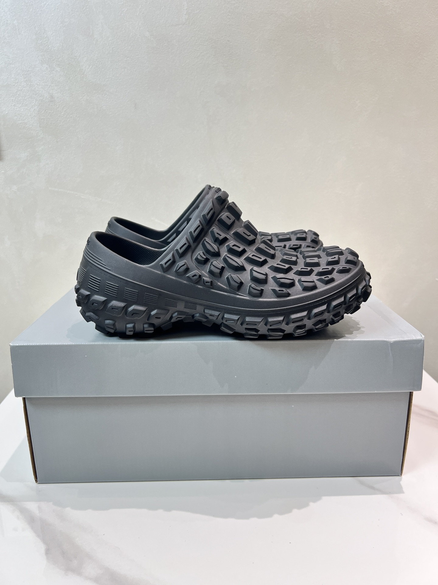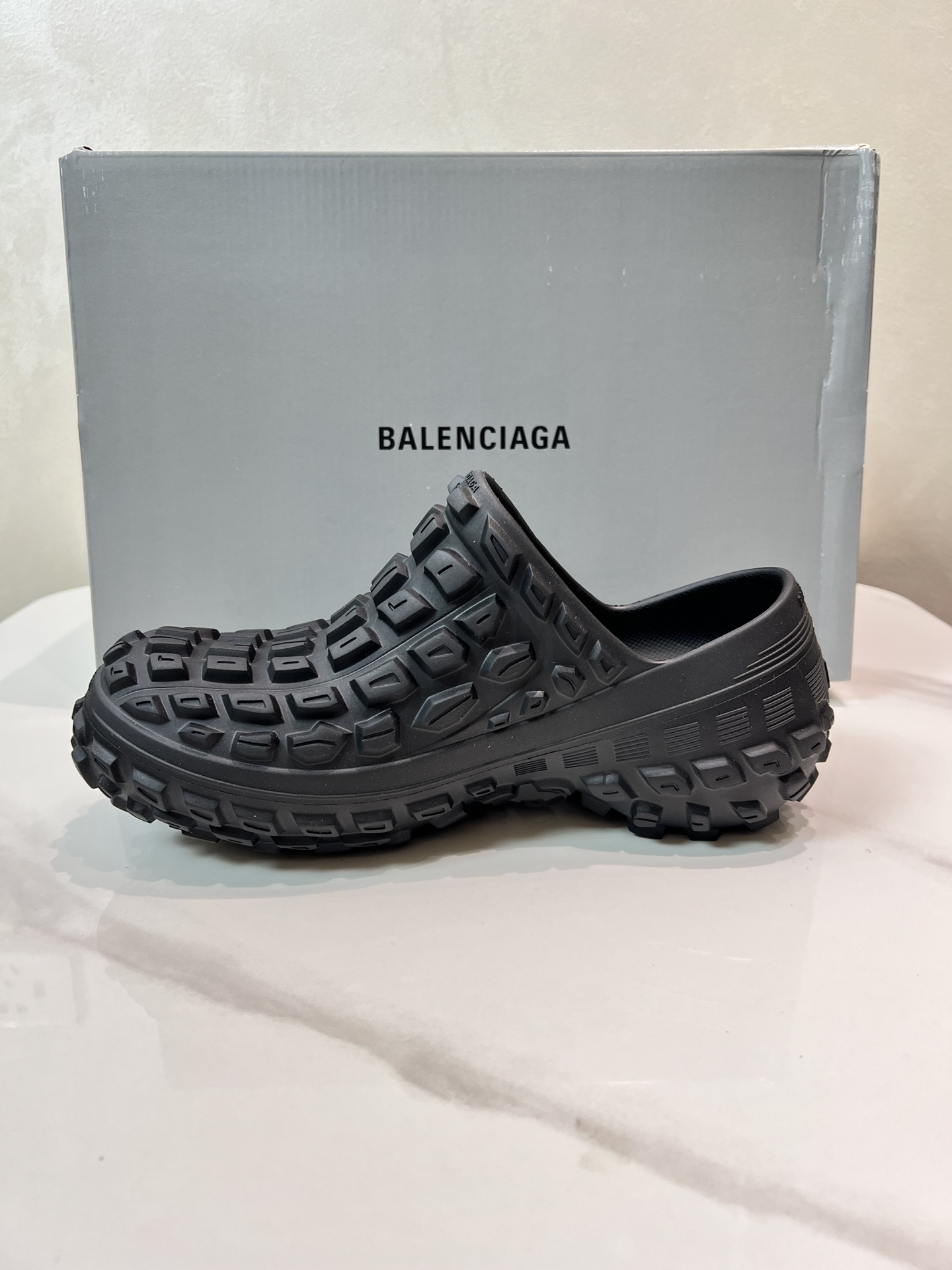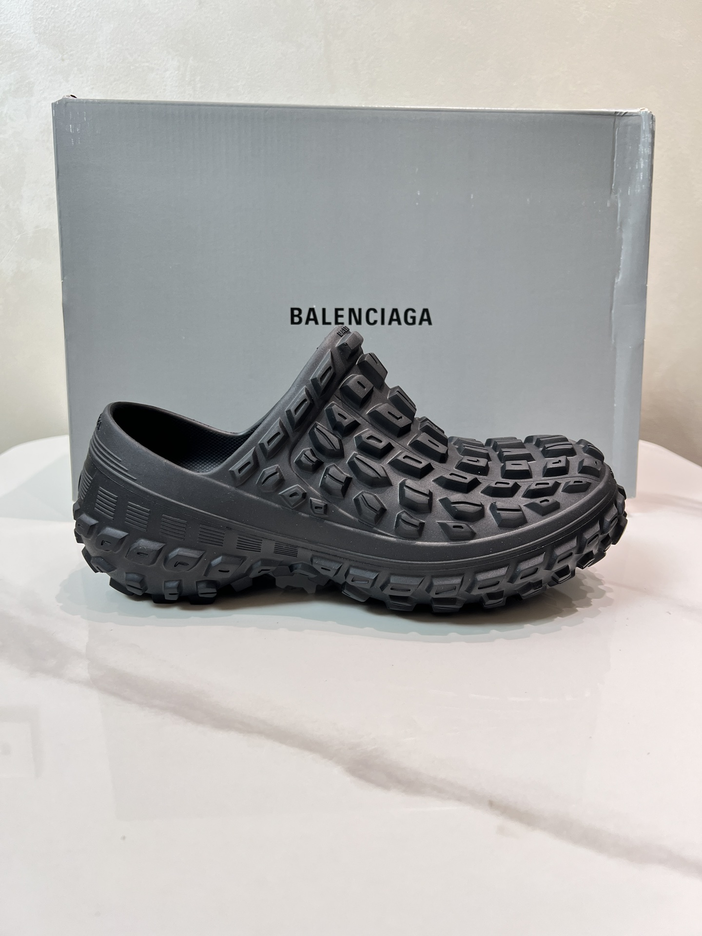 Balenciaga Bouncer Black Rubber All-over Studded Tire Tread Sole Slip-on Defender Clogs Slippers