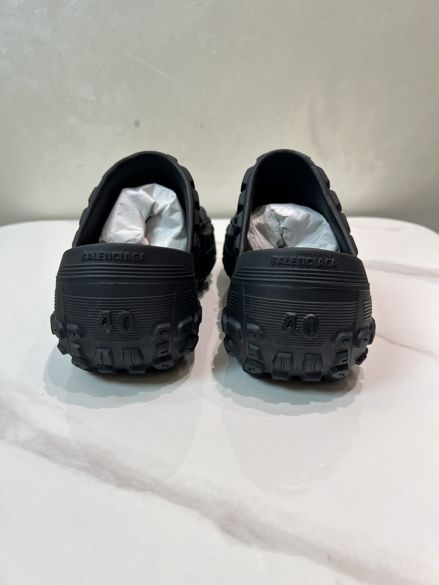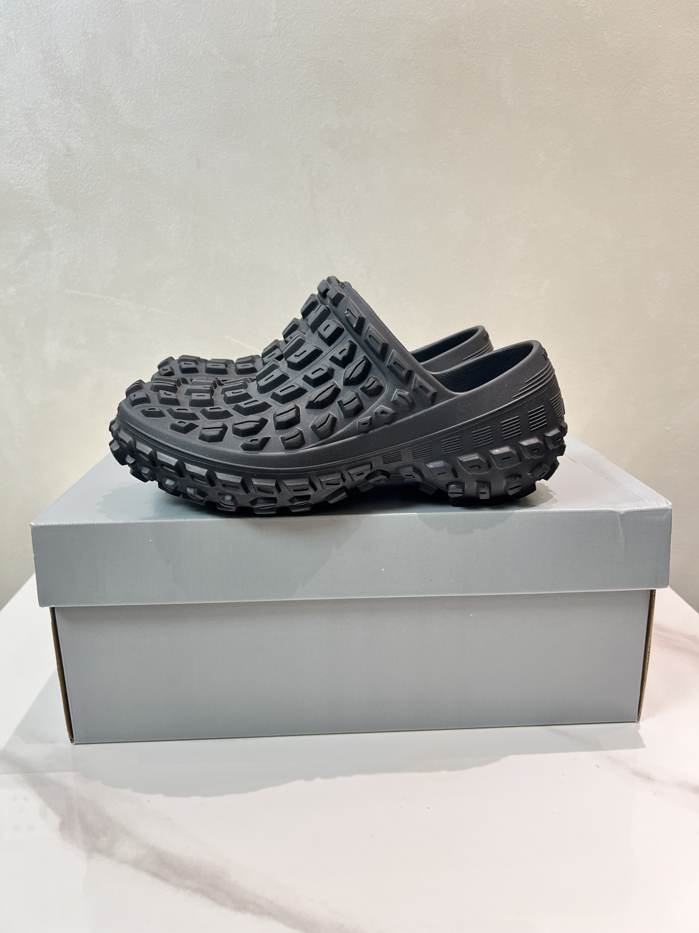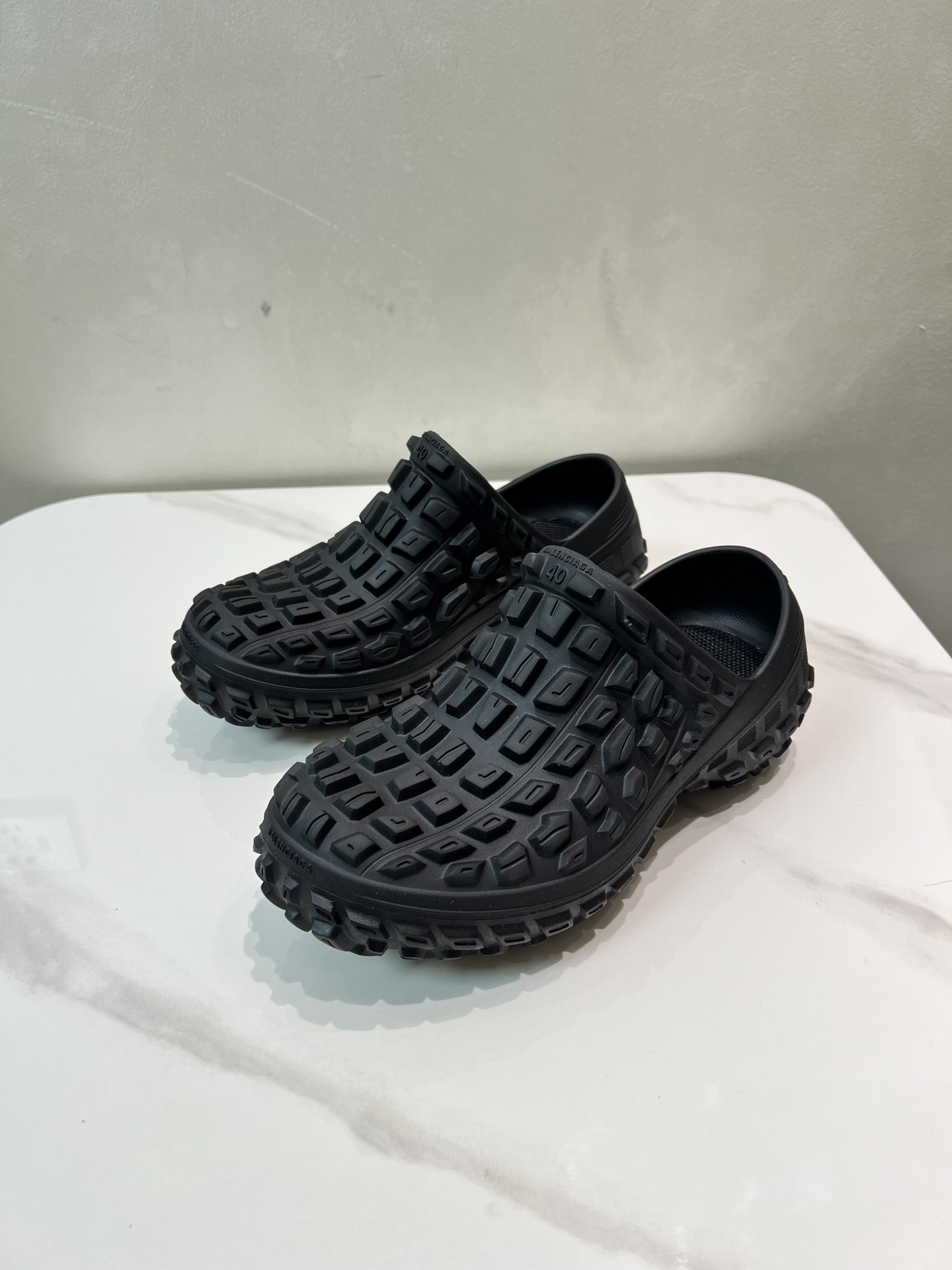 Balenciaga Bouncer Black Rubber All-over Studded Tire Tread Sole Slip-on Defender Clogs Slippers