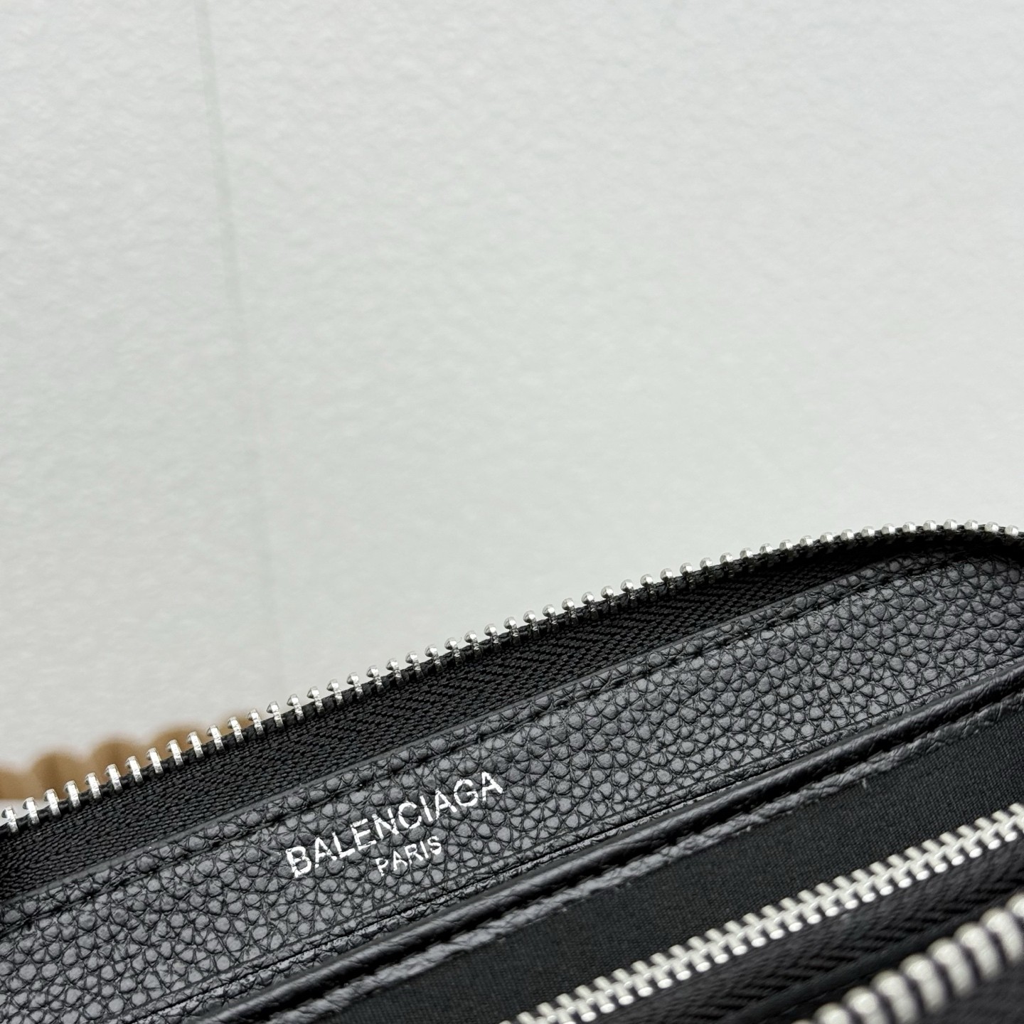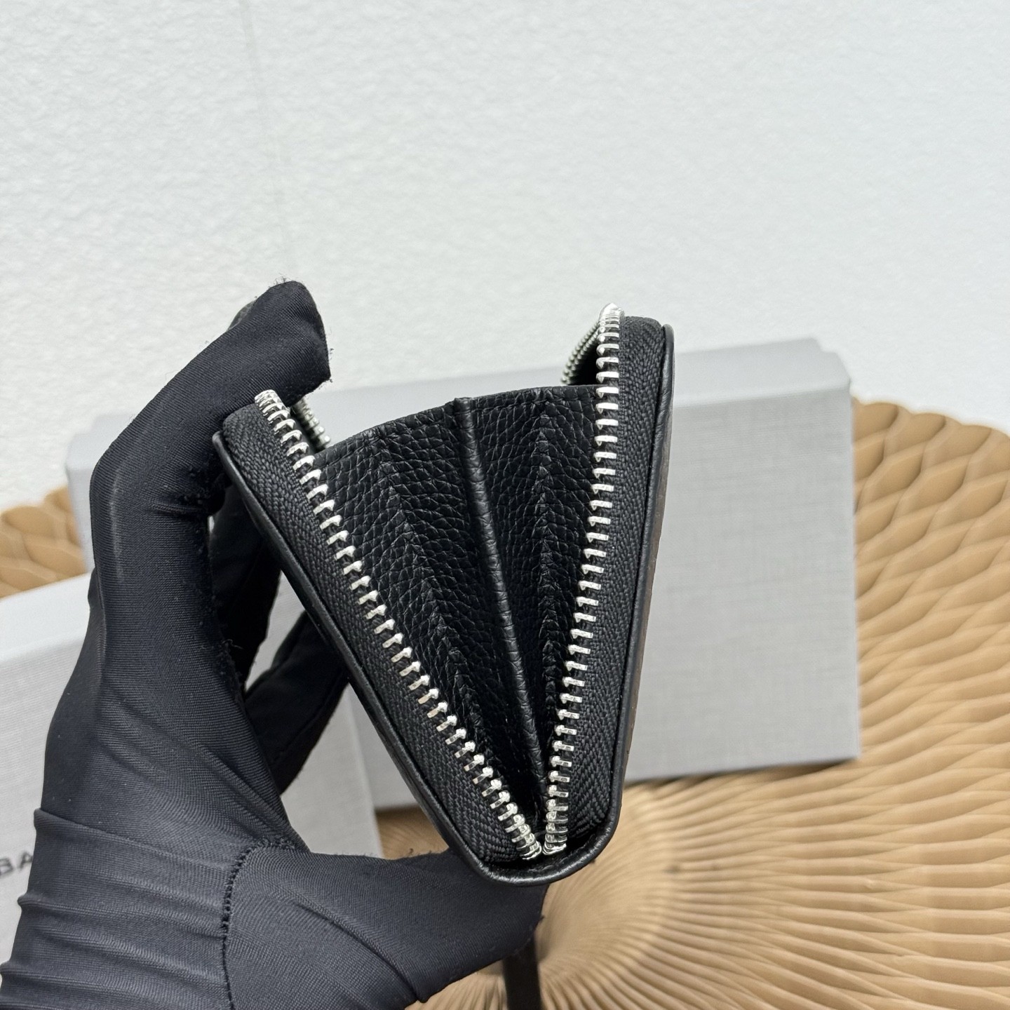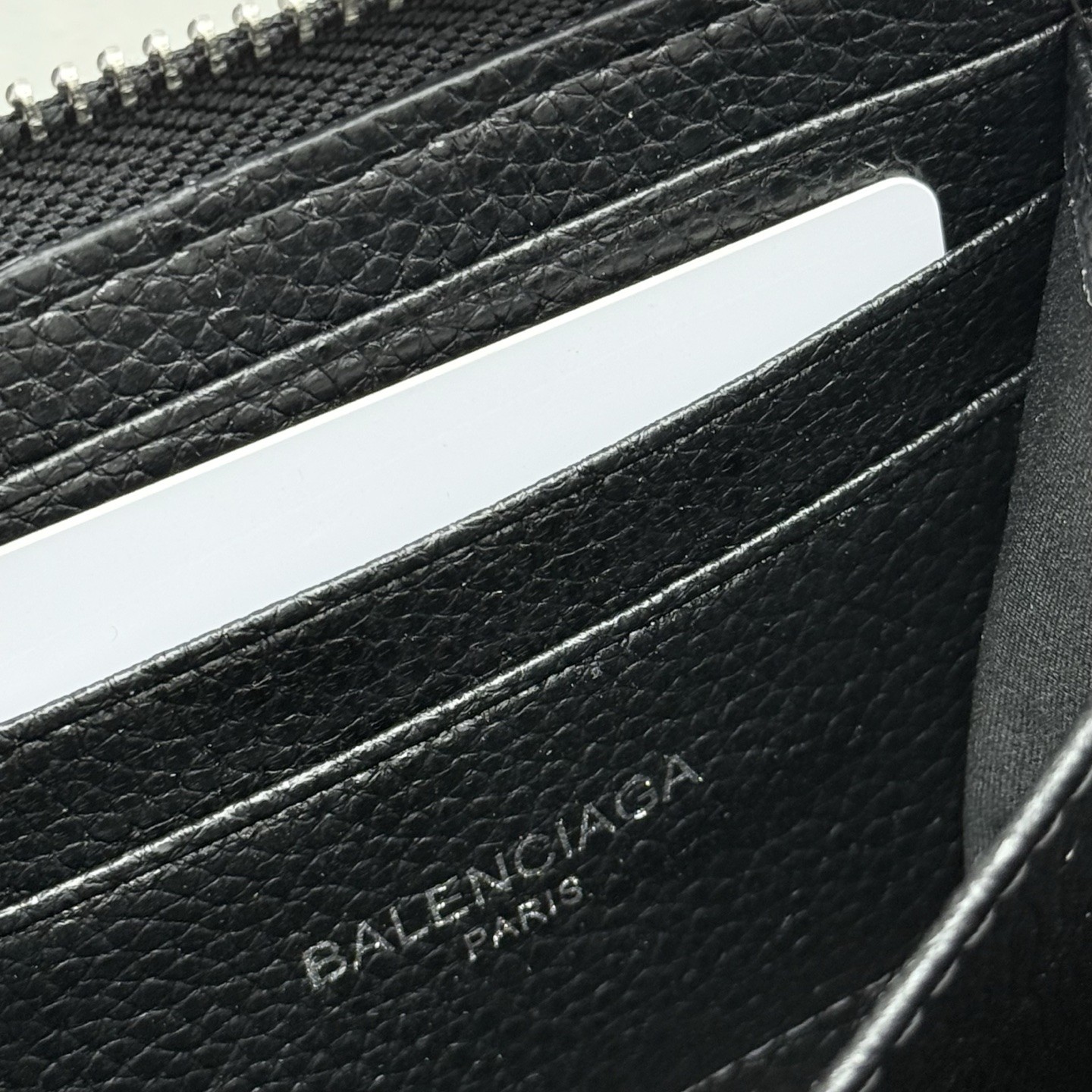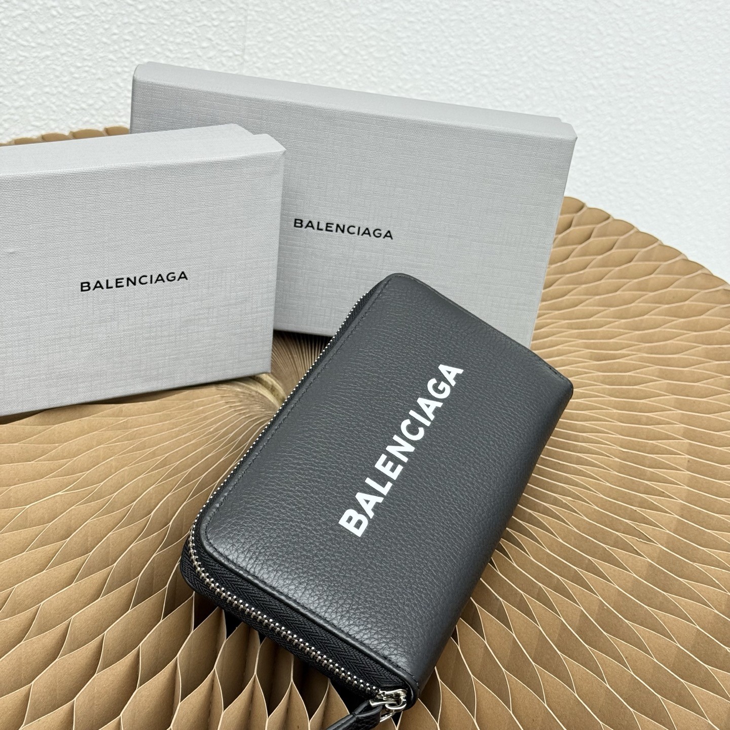 Balenciaga Everyday Black Printed Logo Grained Leather Zip Around Coin Card Case Short Wallet