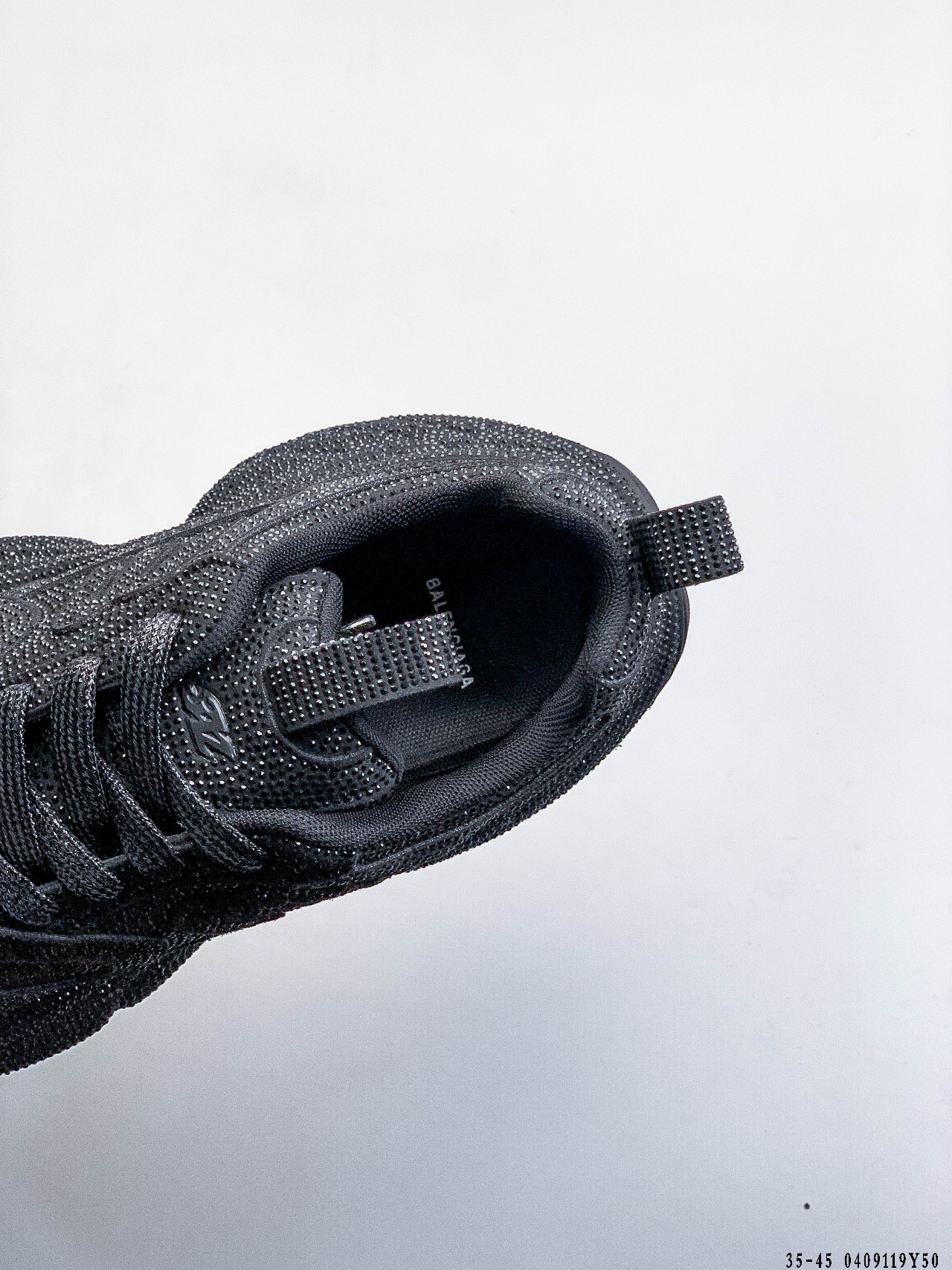 Balenciaga 3XL Black All-over Rhinestone Mesh Oversized Chunky Sneakers