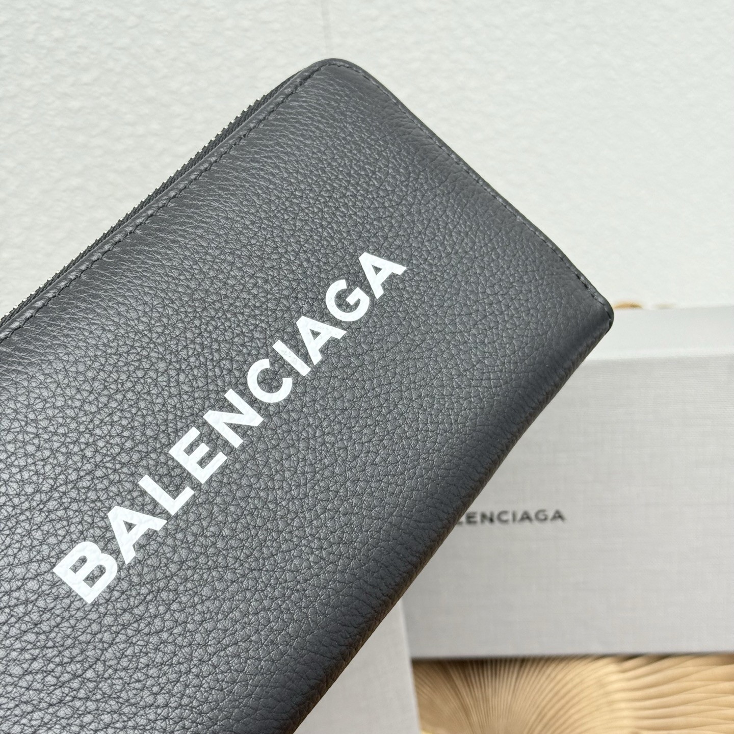 Balenciaga Everyday Black Printed Logo Grained Leather Continental Zip Around Long Wallet