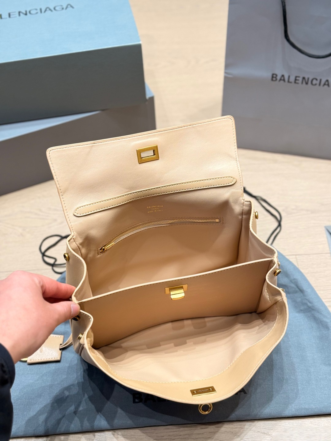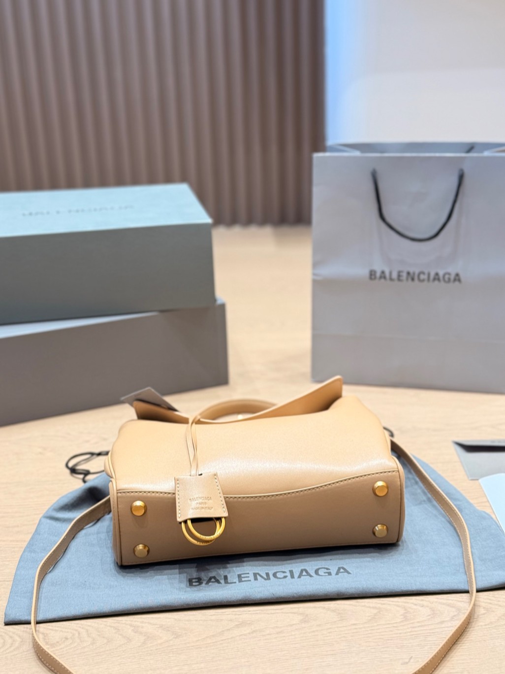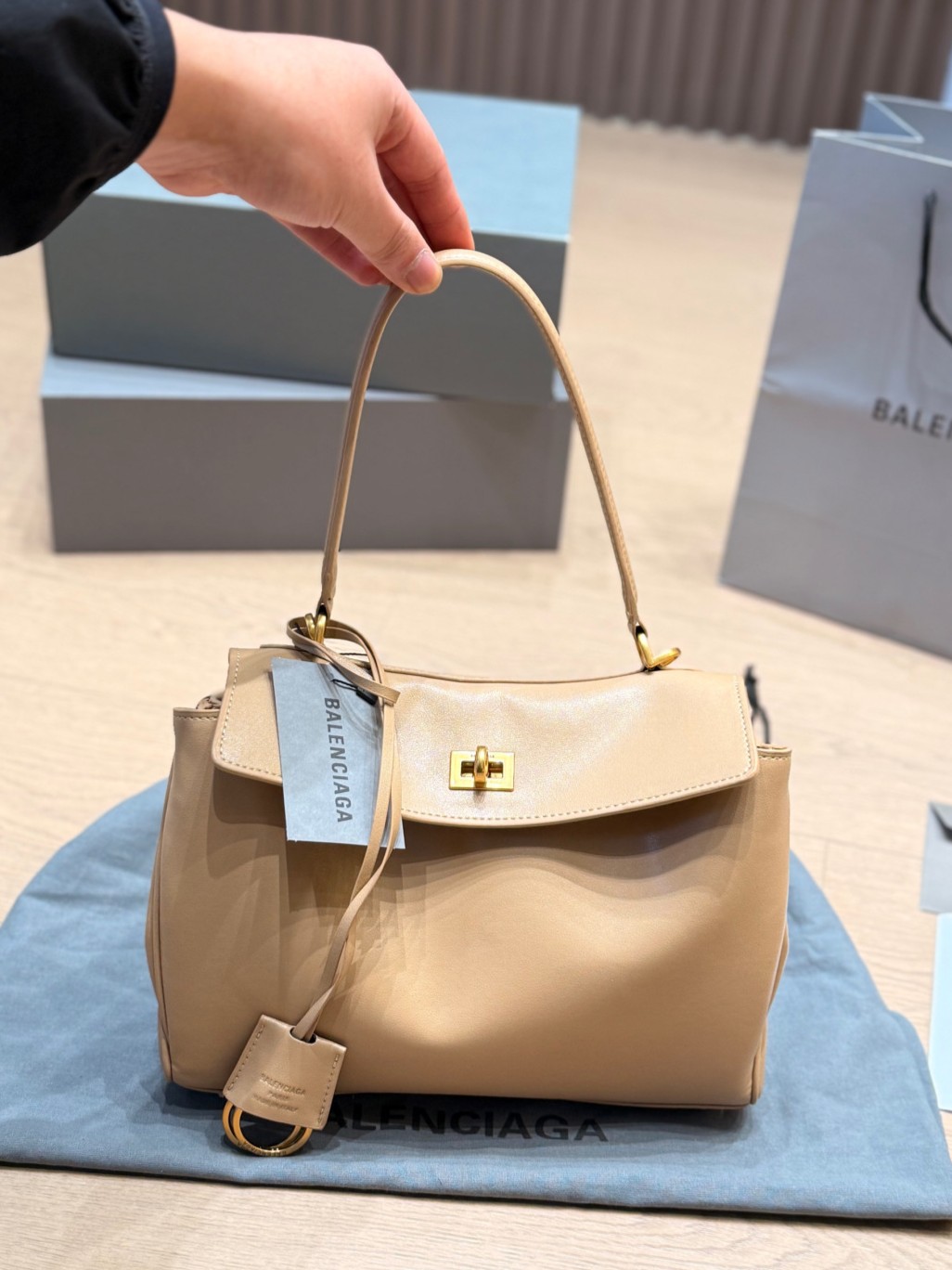 Balenciaga Rodeo Beige Khaki Slouchy Kelly Smooth Leather Turn Lock Tote Top Handle Bags