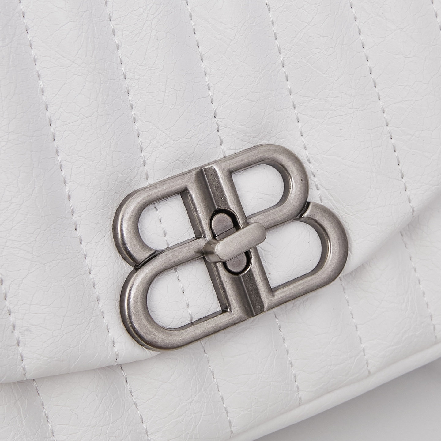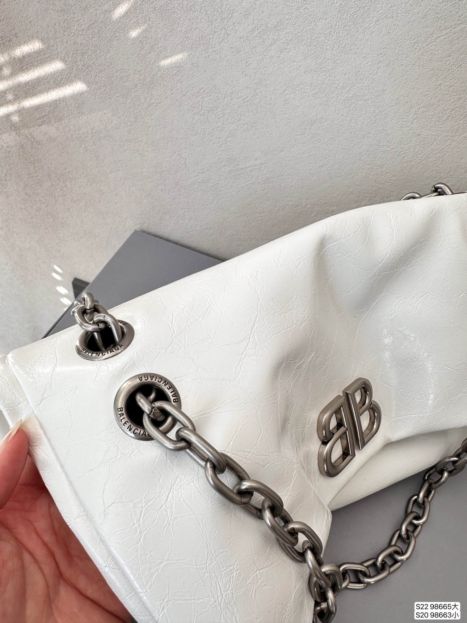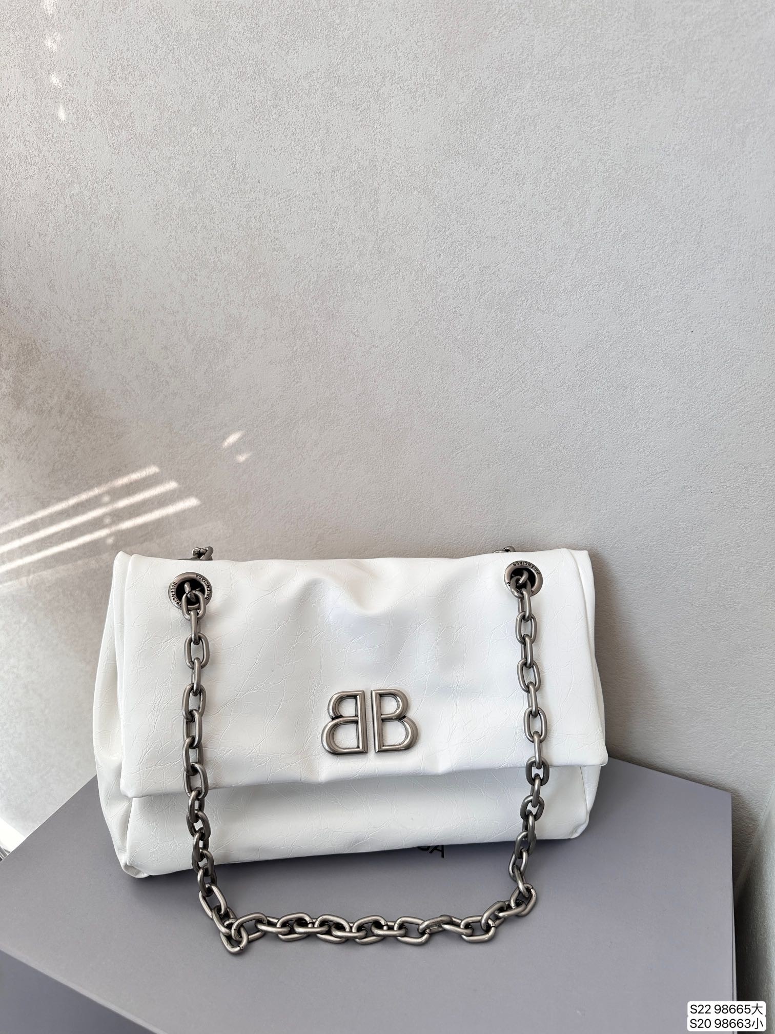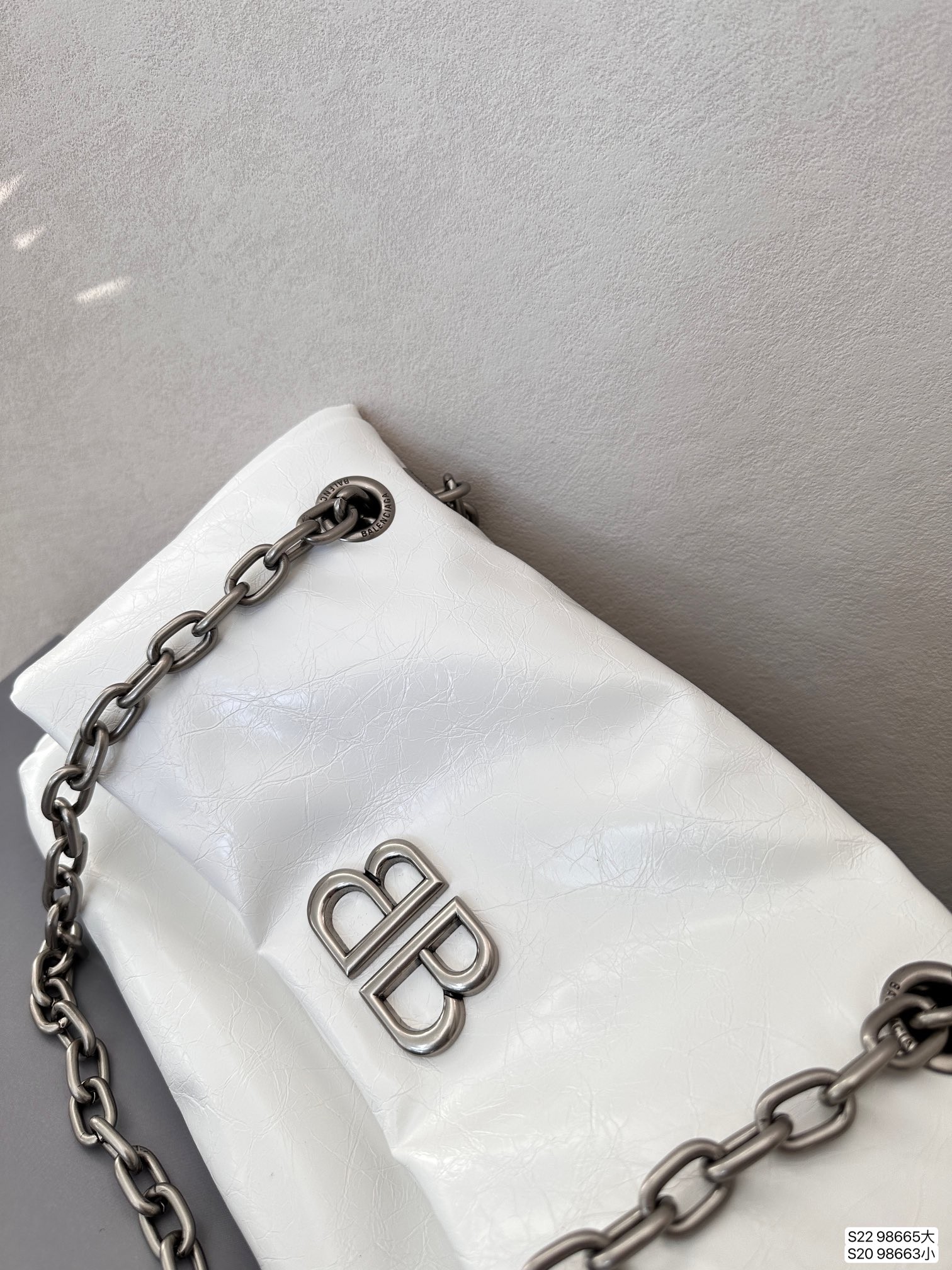 Balenciaga Monaco White BB Silver Hardware Crumpled Leather Chain Shoulder Bag