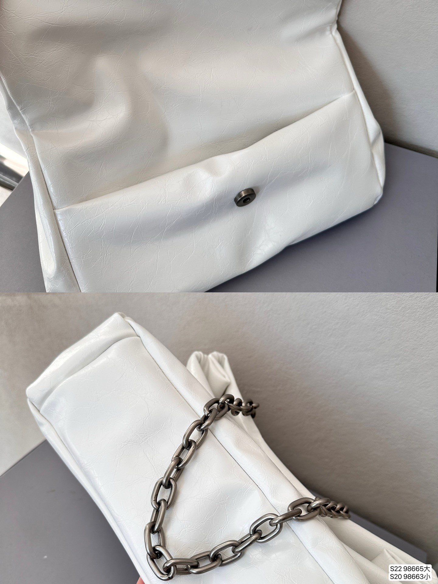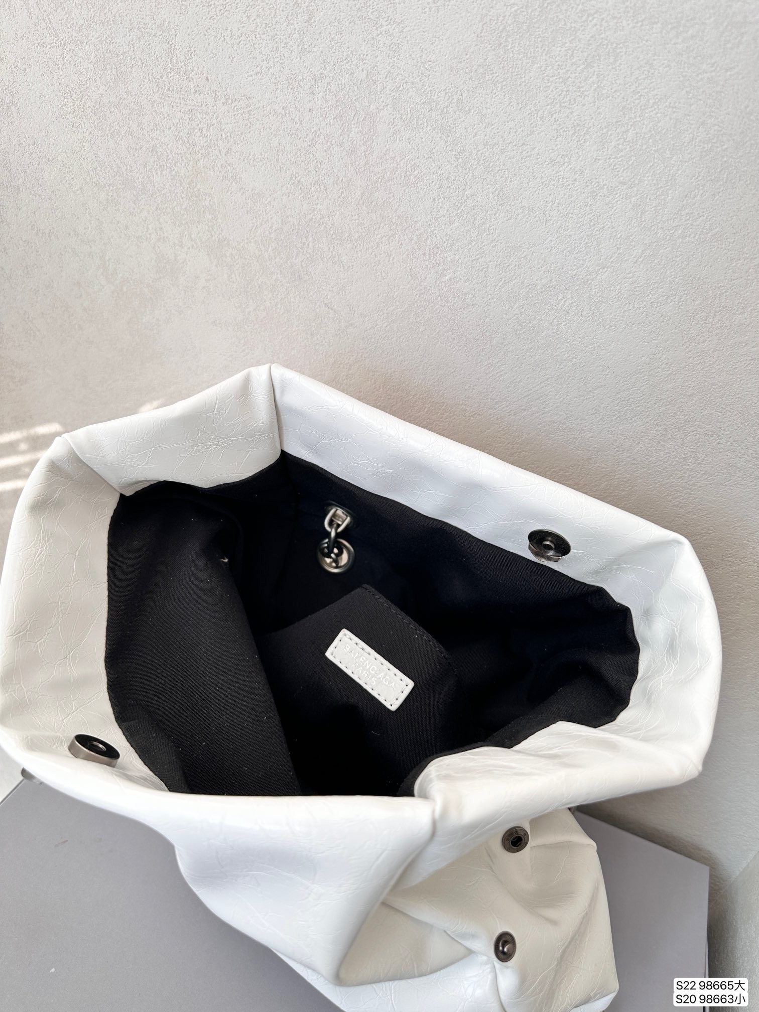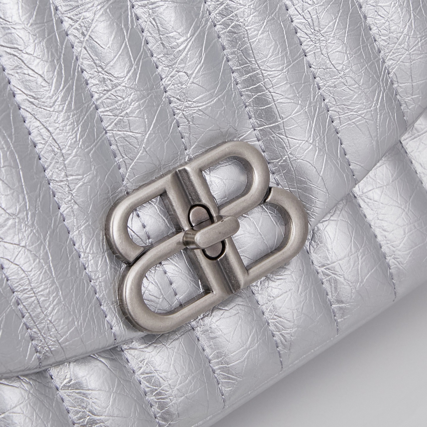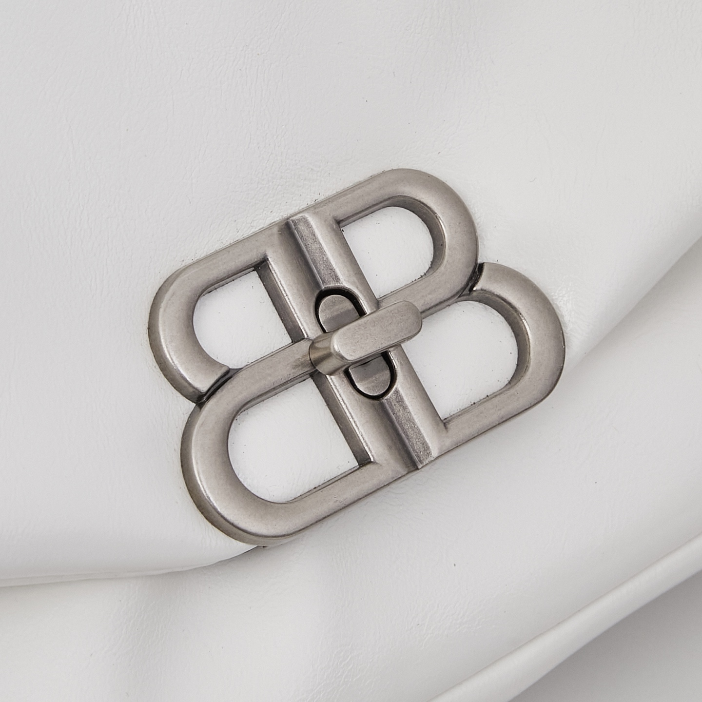 Balenciaga Monaco White BB Silver Hardware Crumpled Leather Chain Shoulder Bag