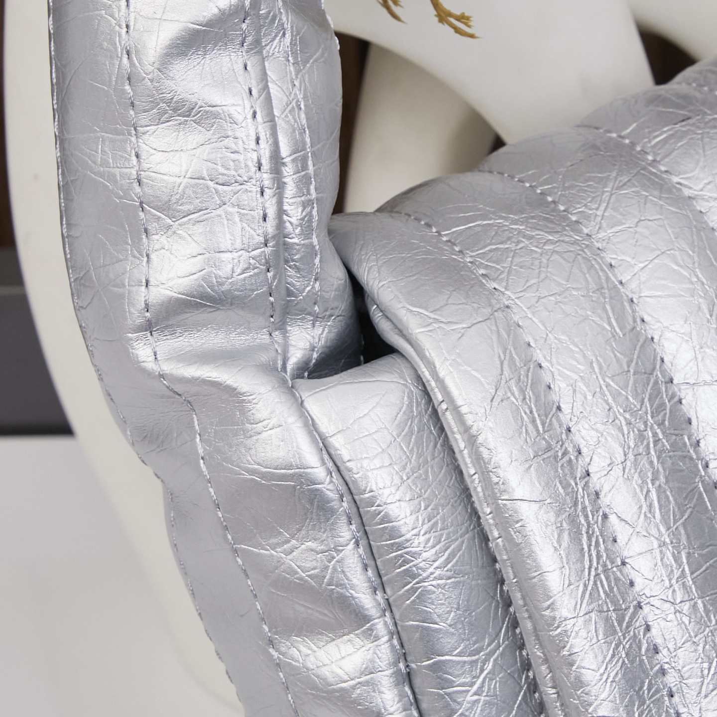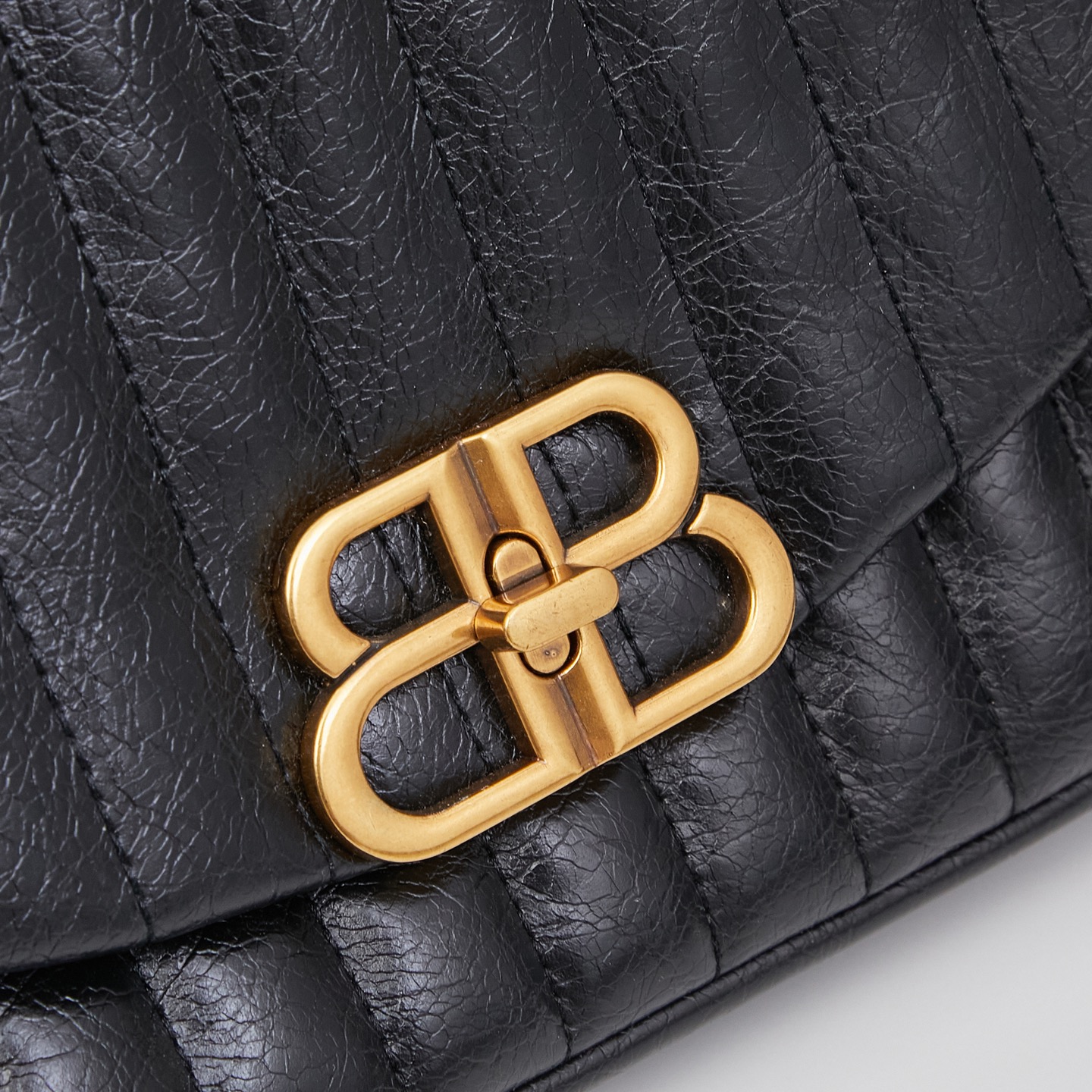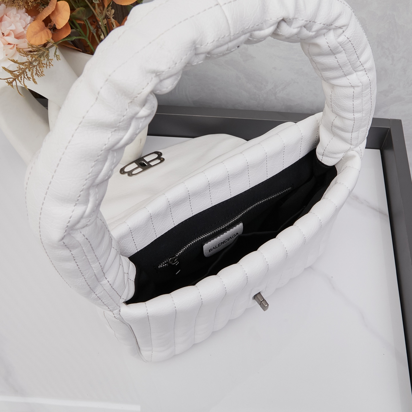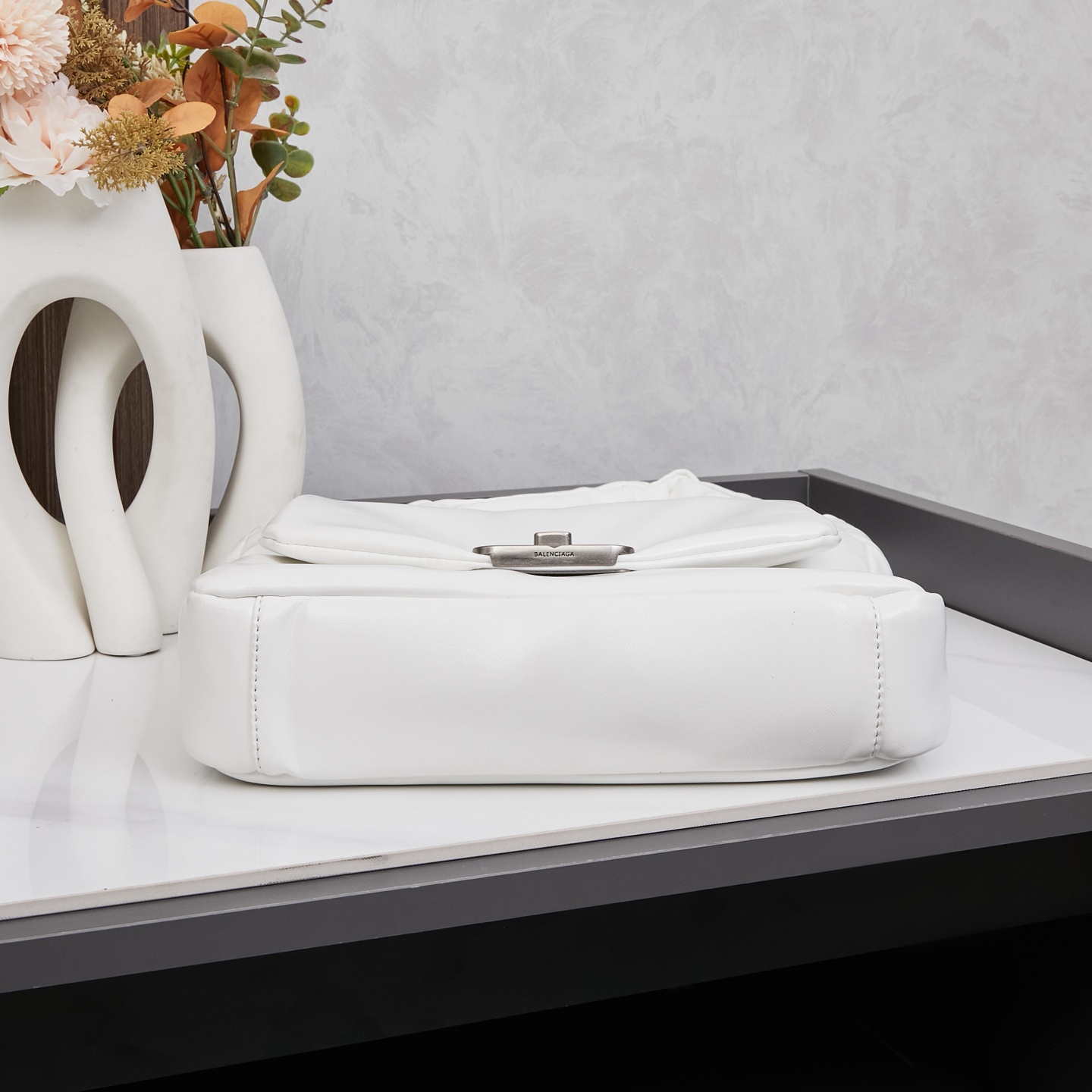 Balenciaga Monaco White BB Silver Hardware Crumpled Leather Chain Shoulder Bag
