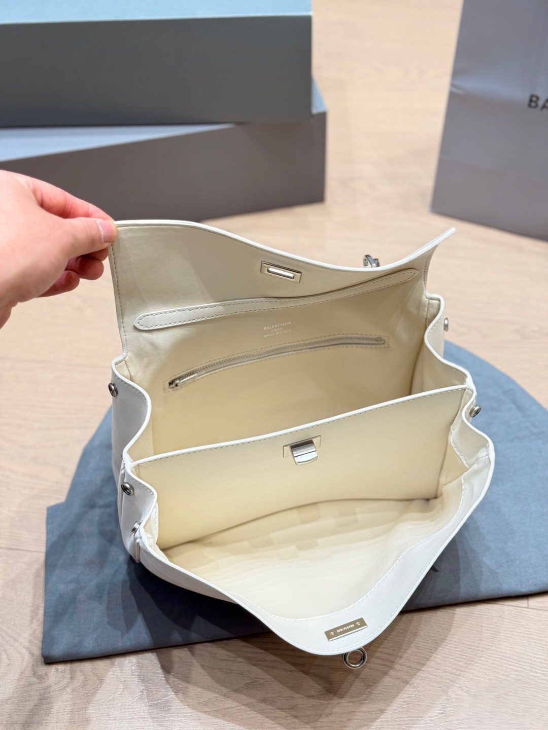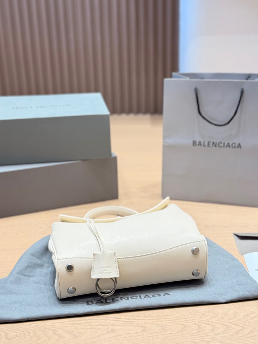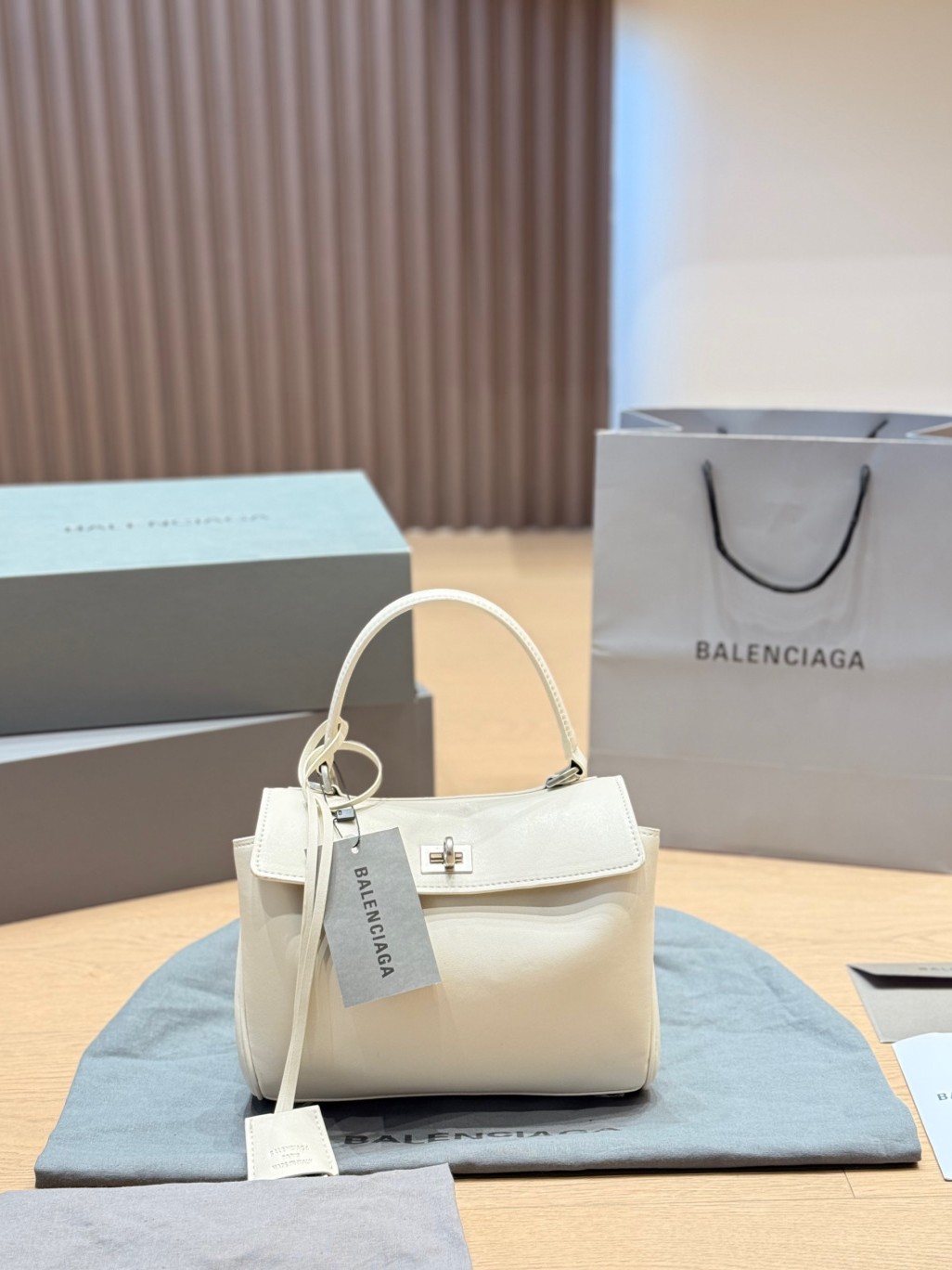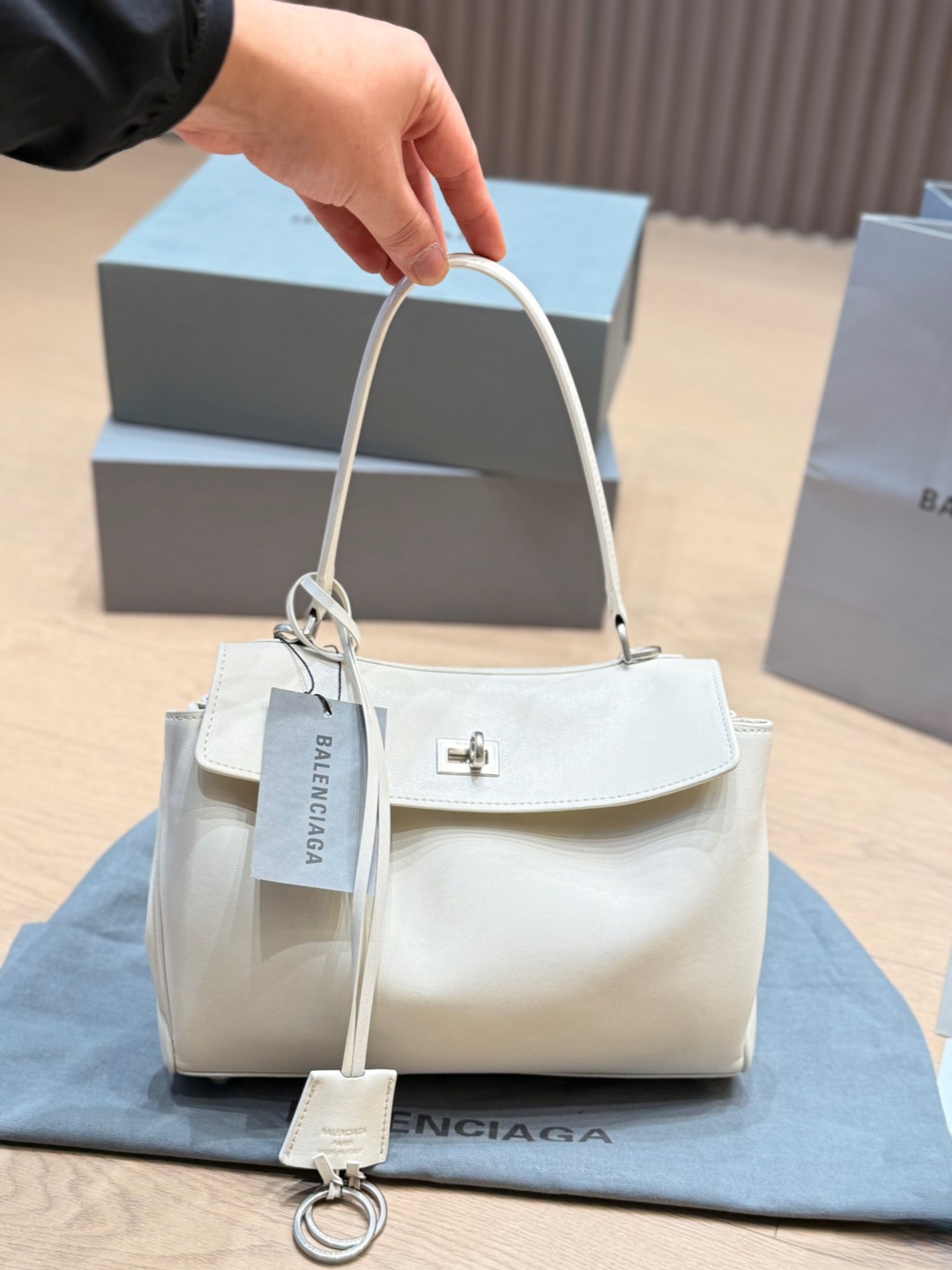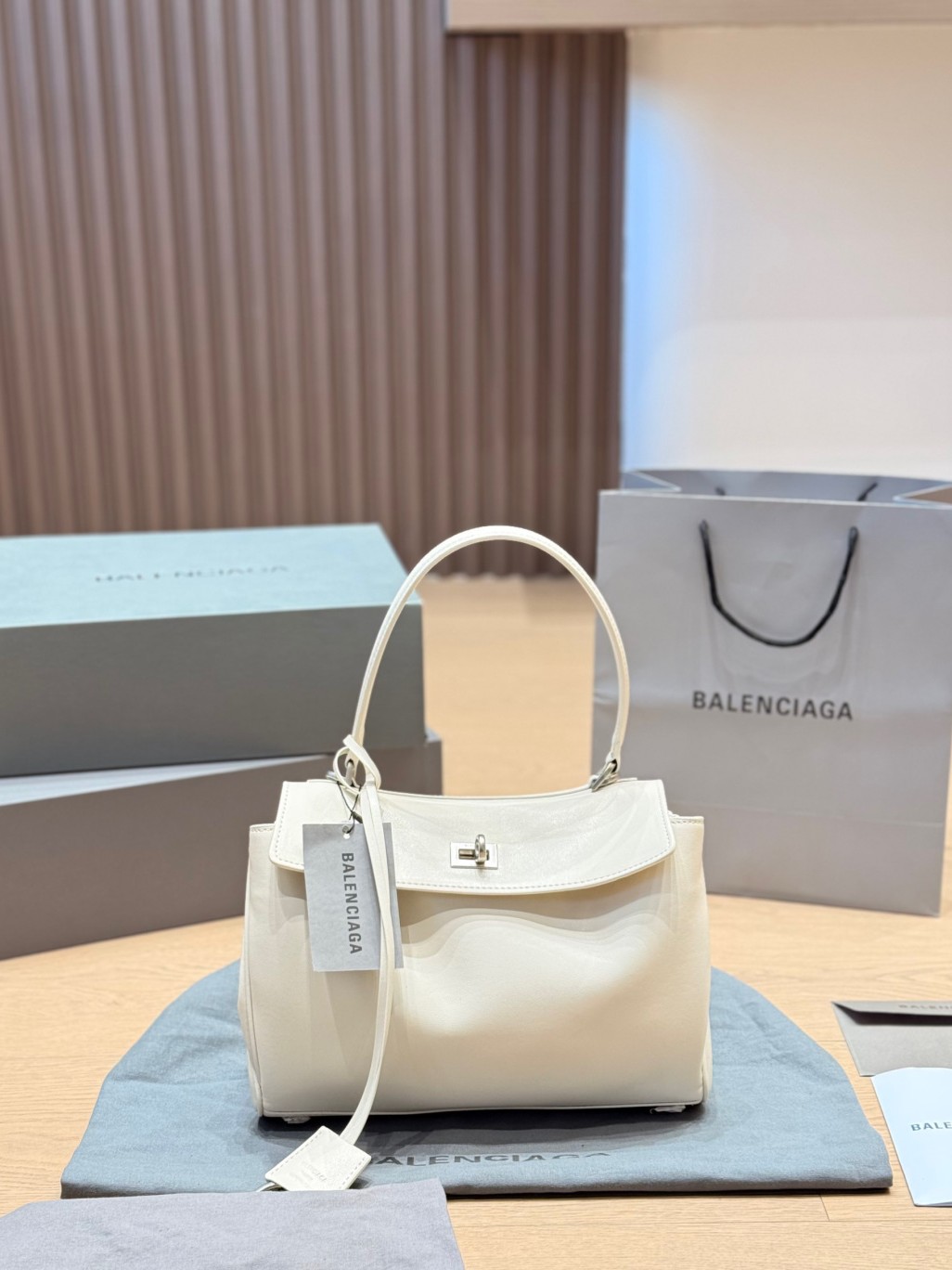 Balenciaga Rodeo White Slouchy Kelly Smooth Leather Turn Lock Tote Top Handle Bags