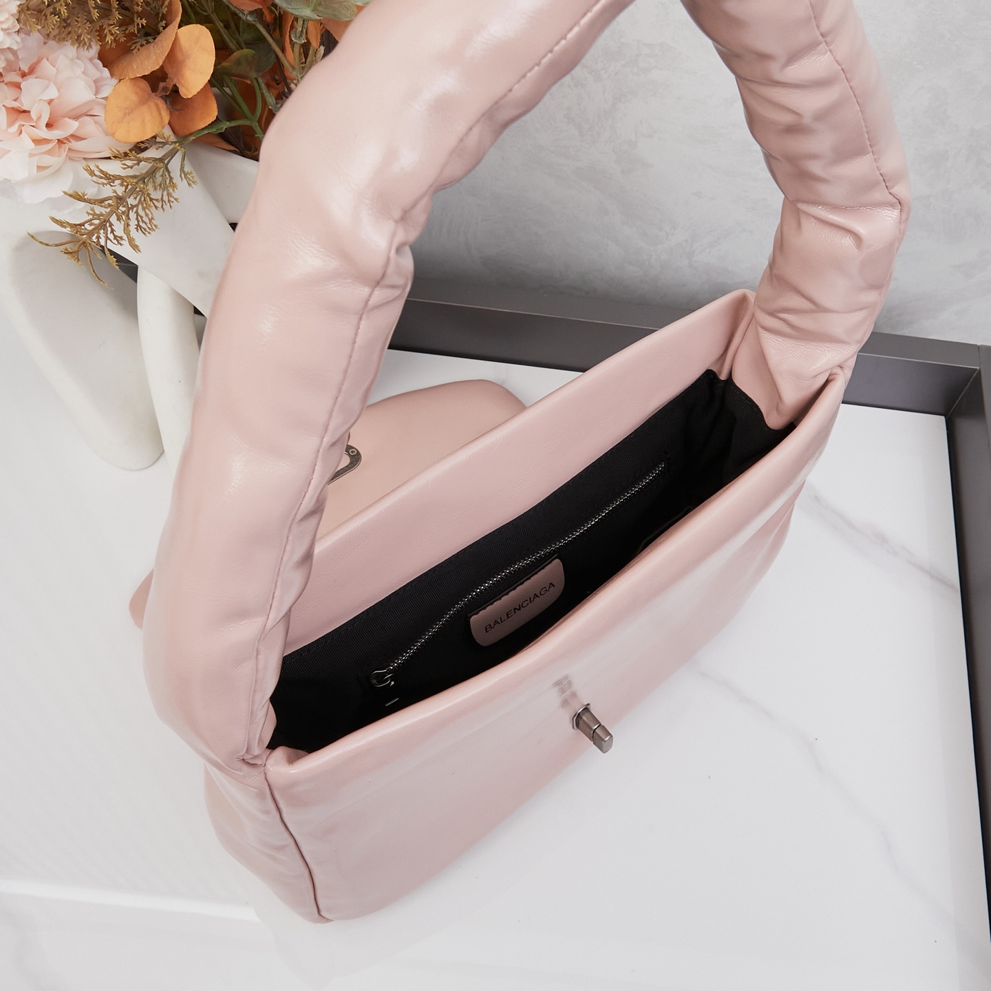 Balenciaga Monaco Pink Padded Slouchy Leather BB Logo Puffy Handle Shoulder Tote Bags