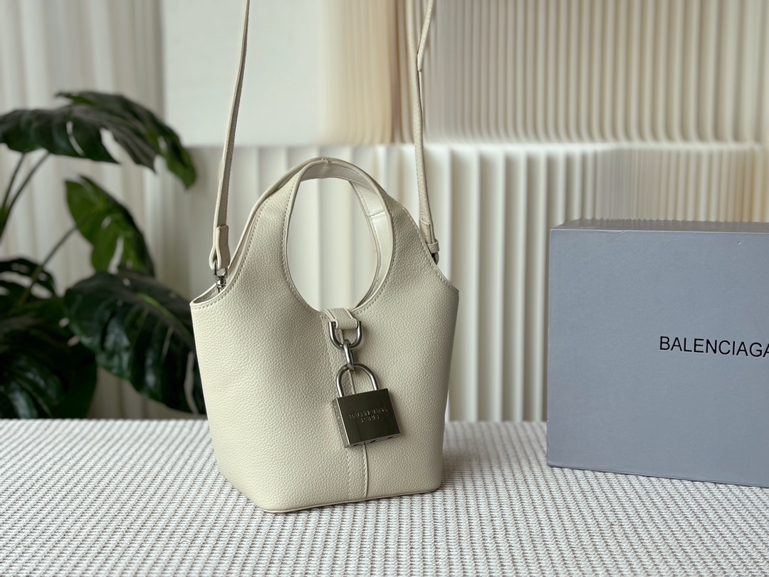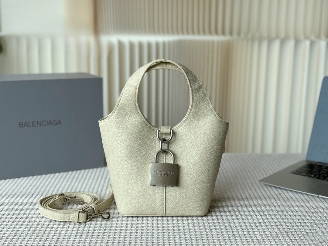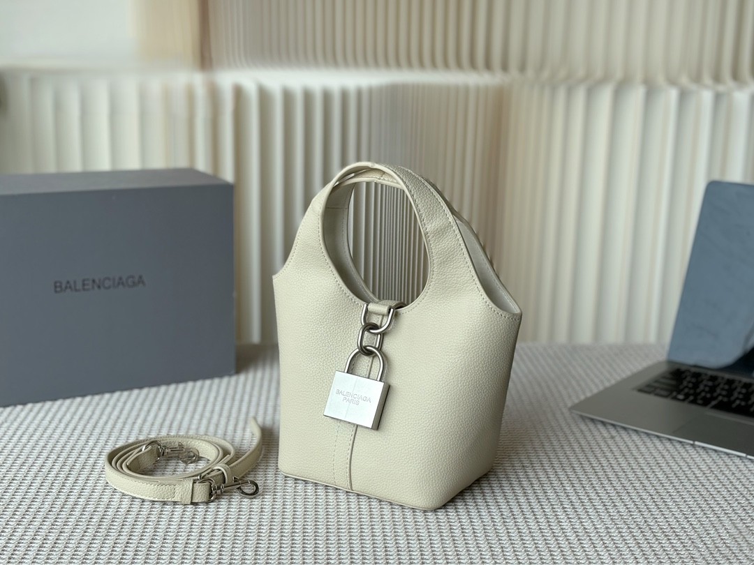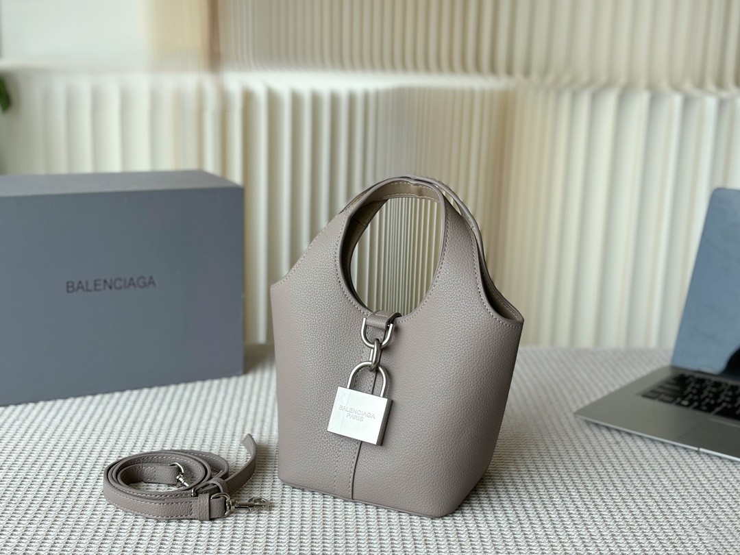 Balenciaga Grained Leather Padlock Tool 2.0 Silver Locker Hobo Bucket With Strap Tote Bags