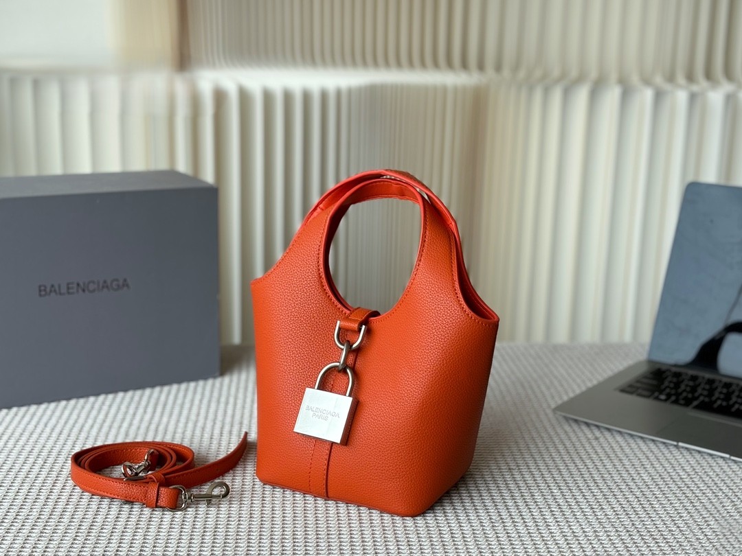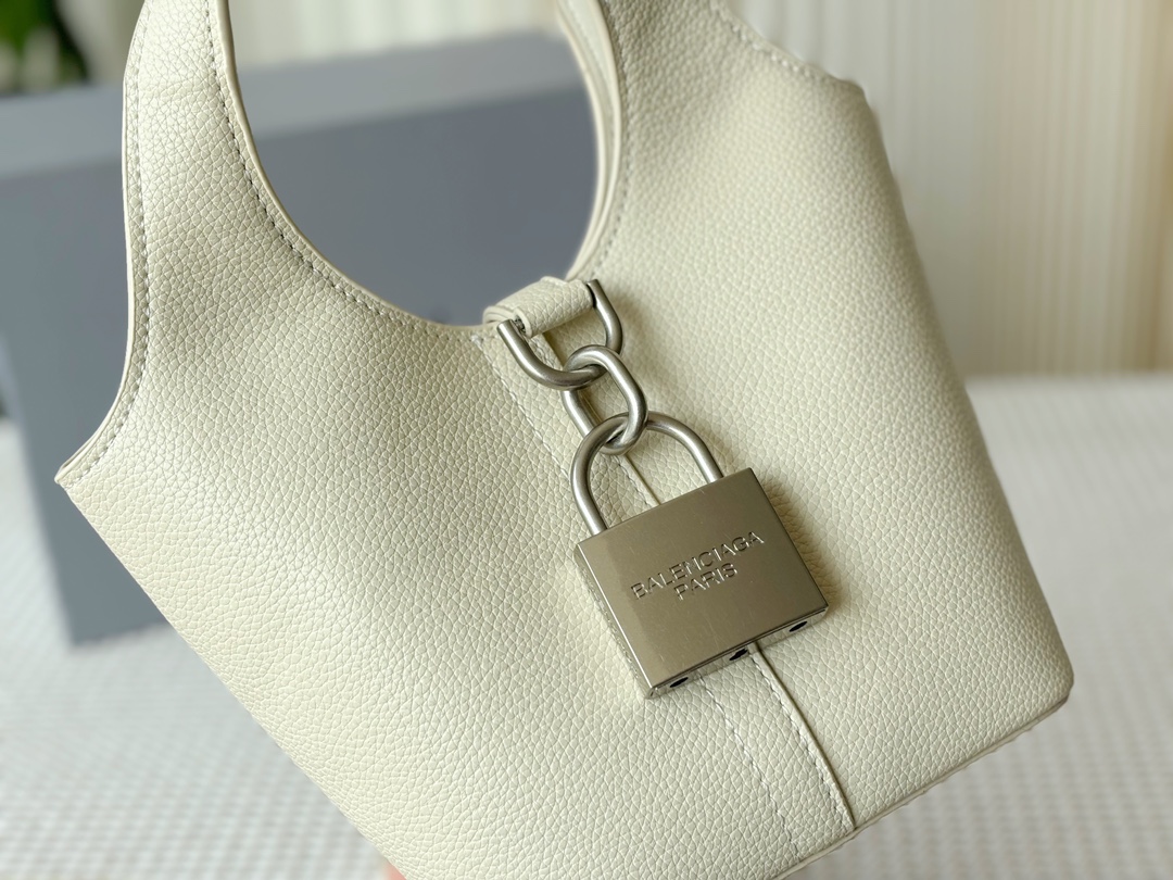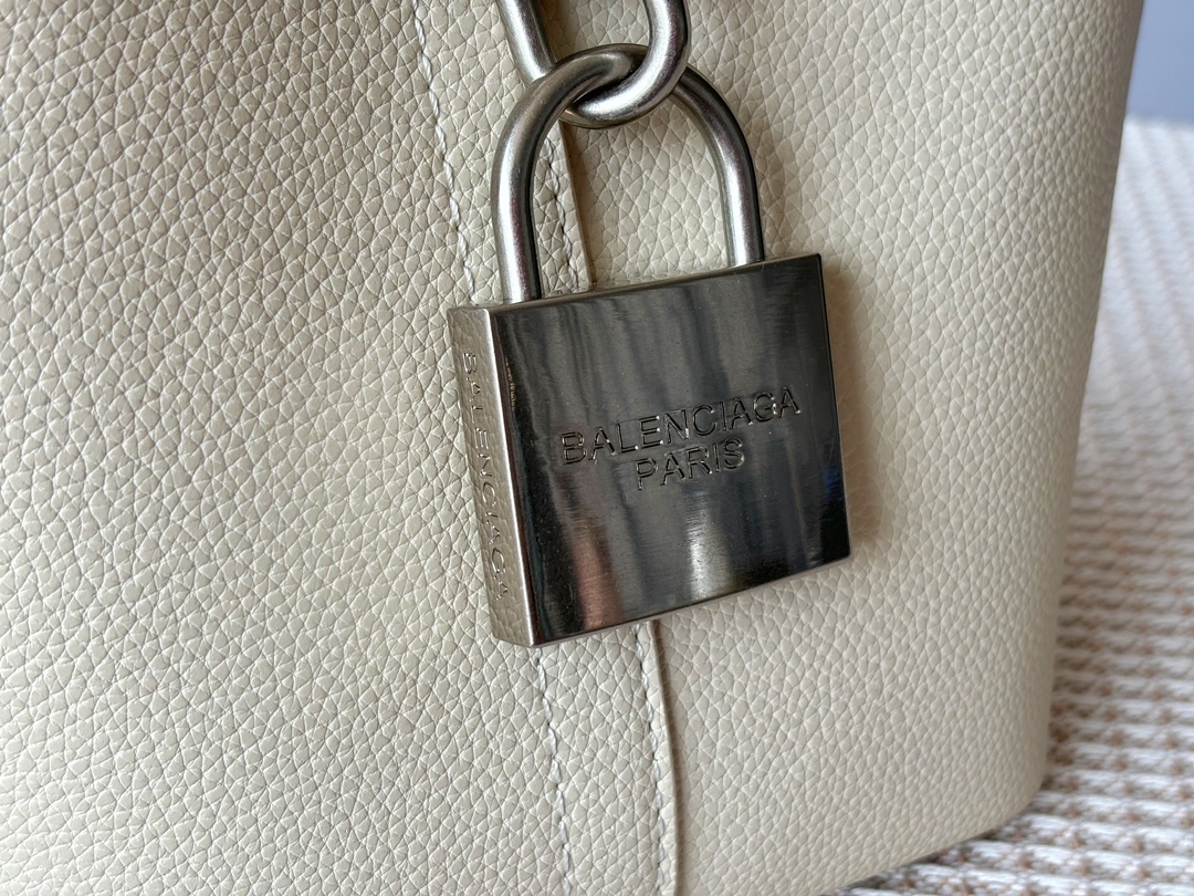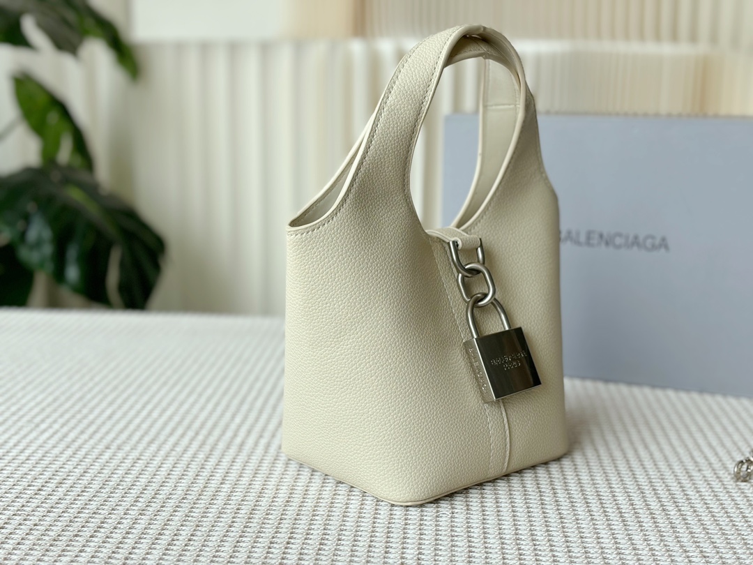 Balenciaga Grained Leather Padlock Tool 2.0 Silver Locker Hobo Bucket With Strap Tote Bags