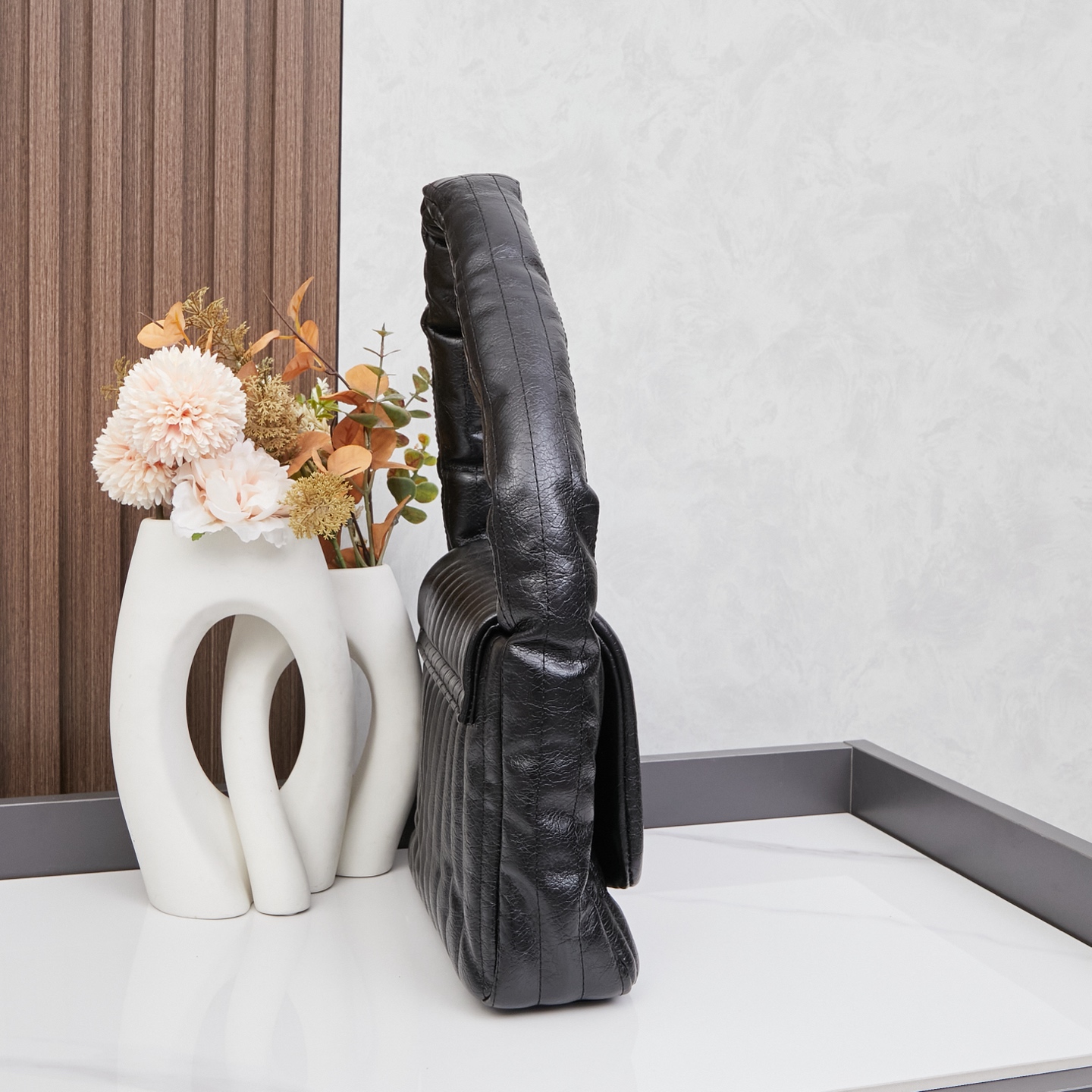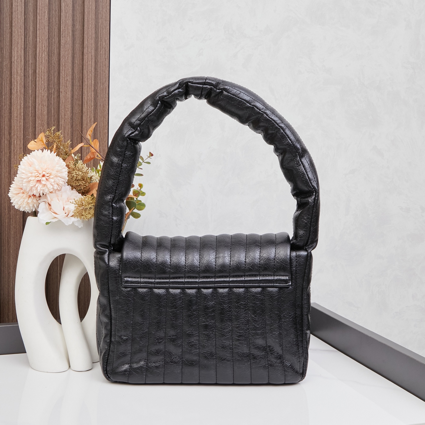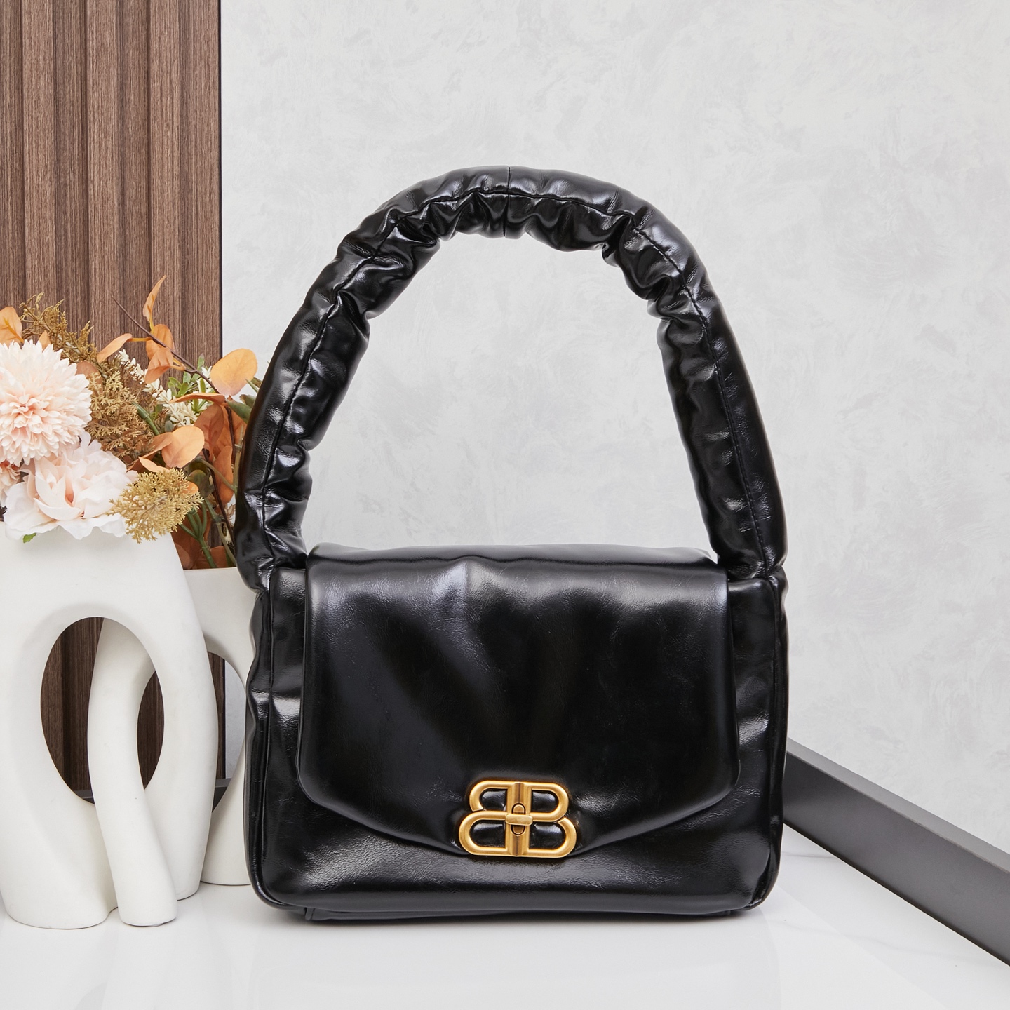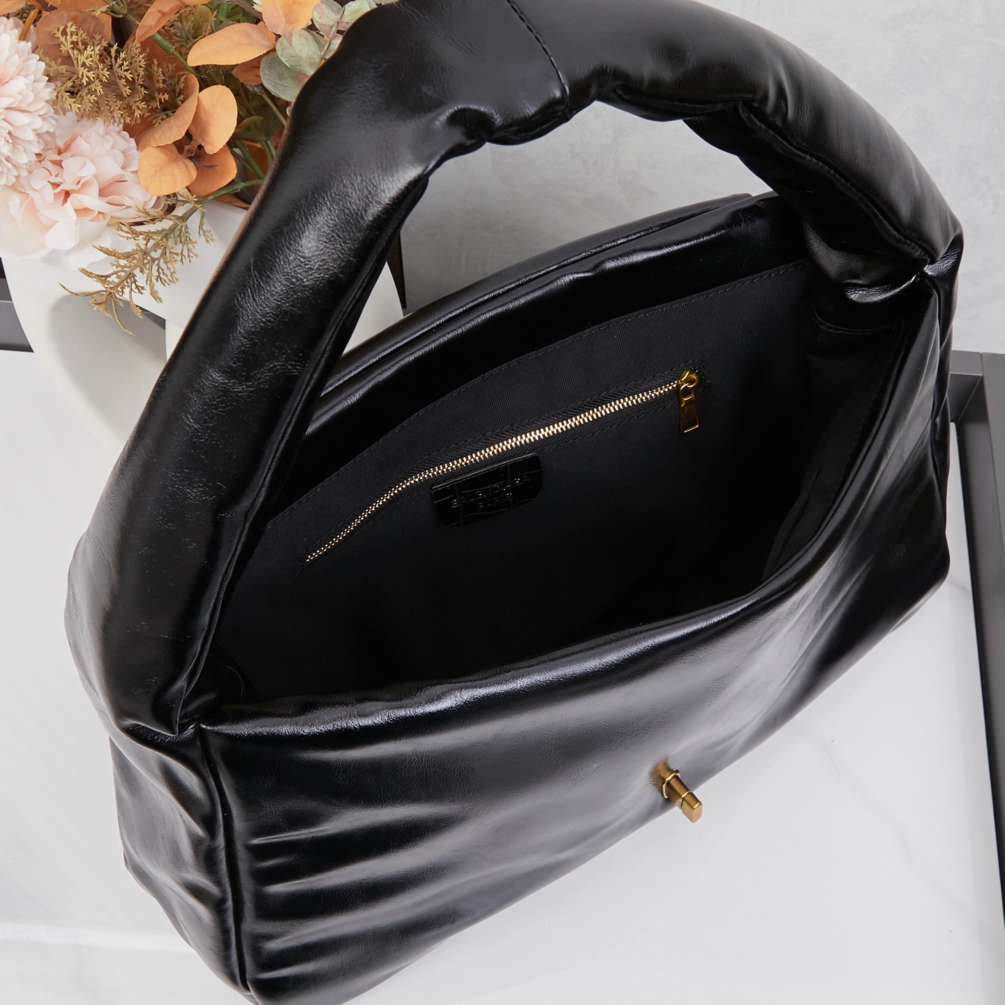 Balenciaga Monaco Black Padded Slouchy Leather BB Logo Puffy Handle Shoulder Tote Bags