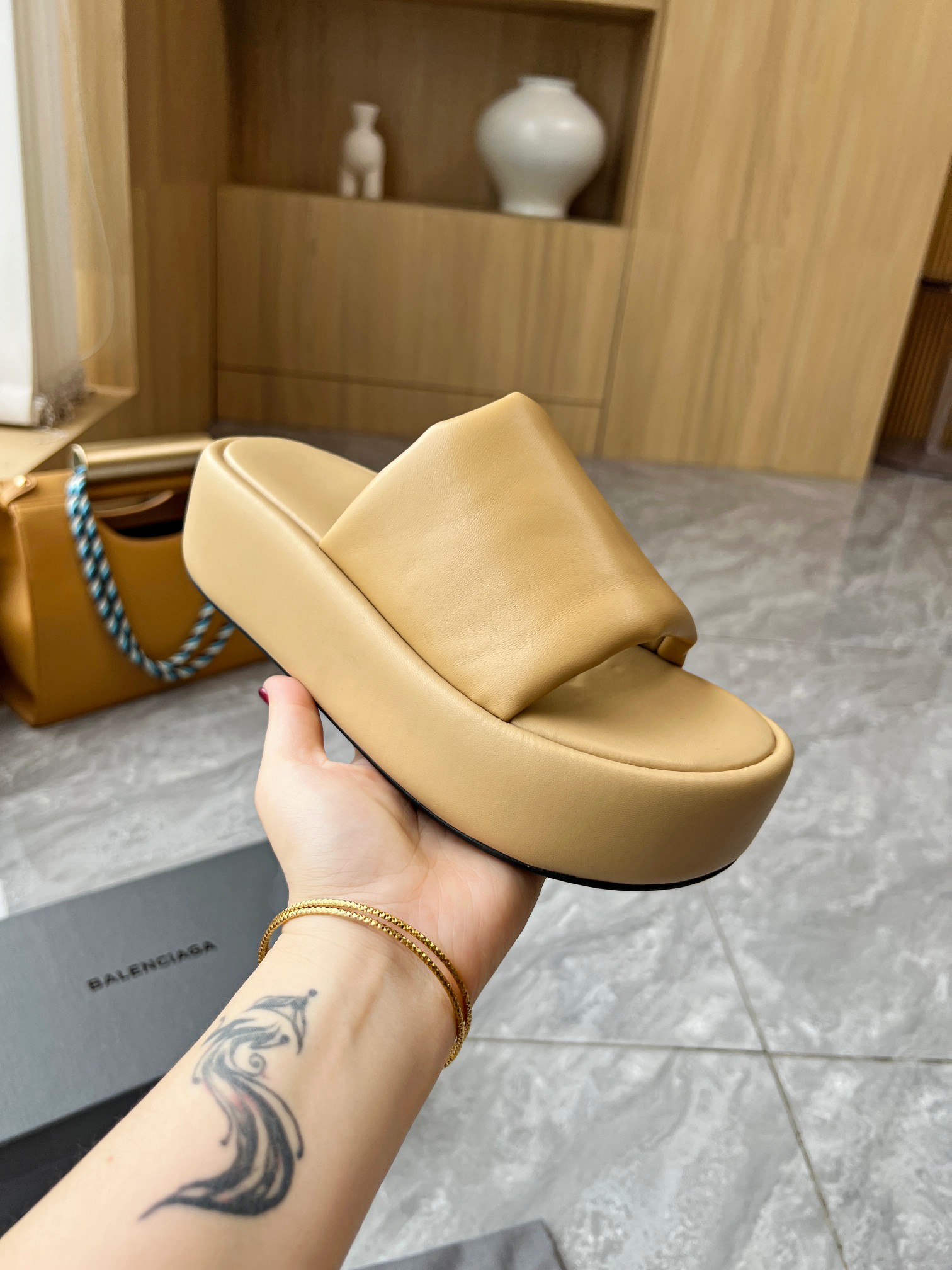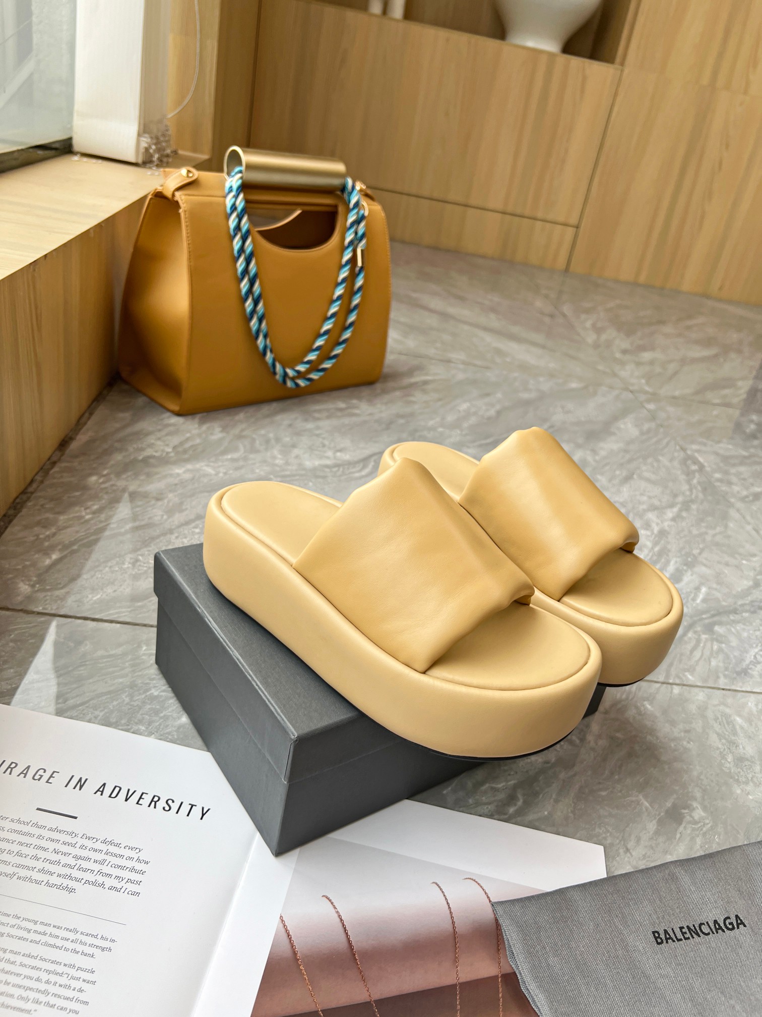 Balenciaga Rise Padded Nappa Leather Logo Printed On The Rear Heel Platform Slippers