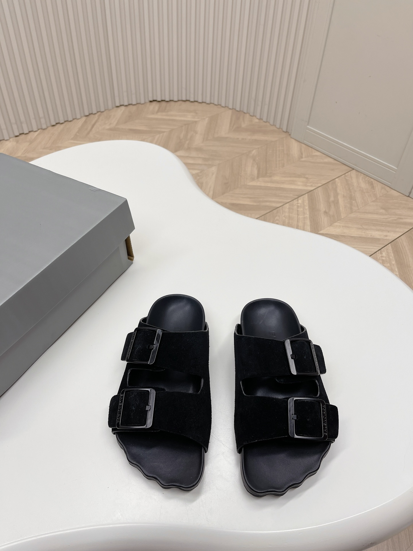 Balenciaga Mallorca Anatomical Five-Toe Double Buckle Rubber Suede& Leather Birks Sandals