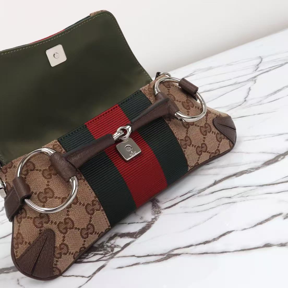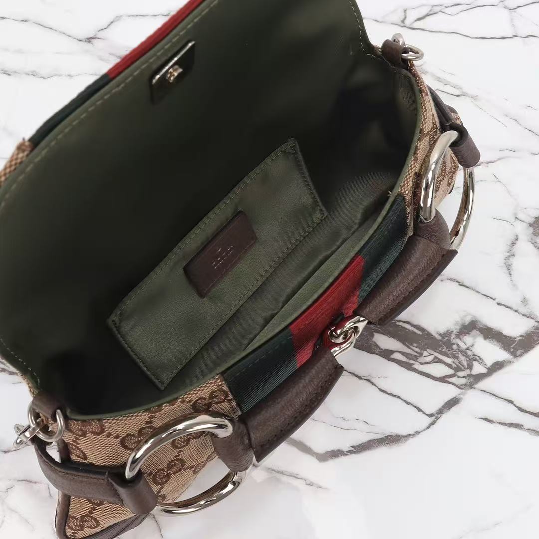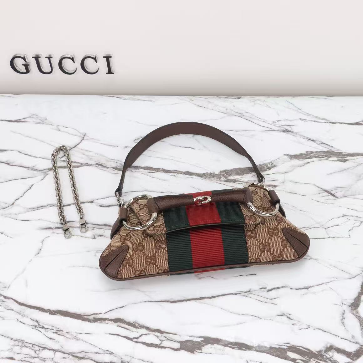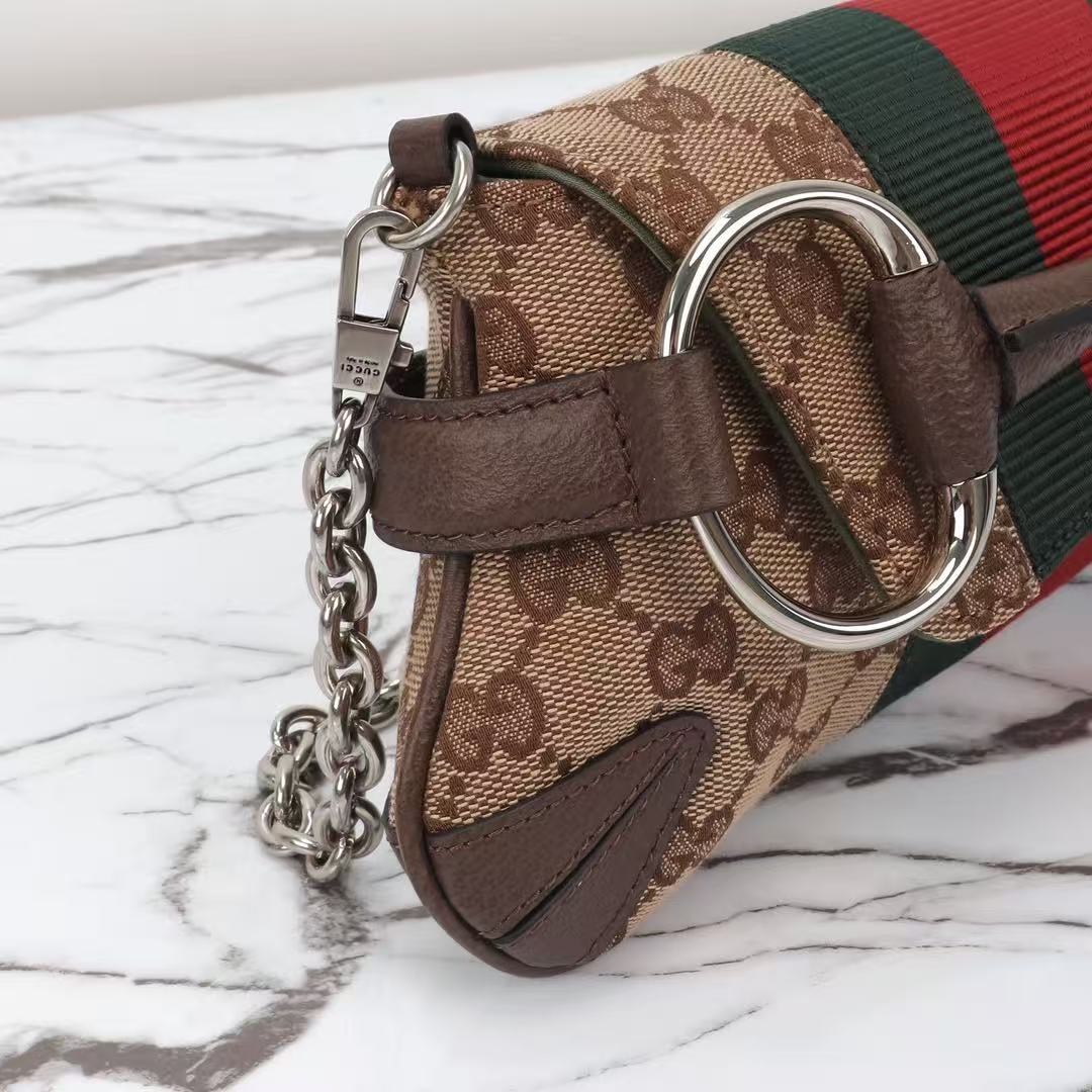 GUCCI GG Canvas Web Stripe Archival Horsebit Chain Shoulder Bag
