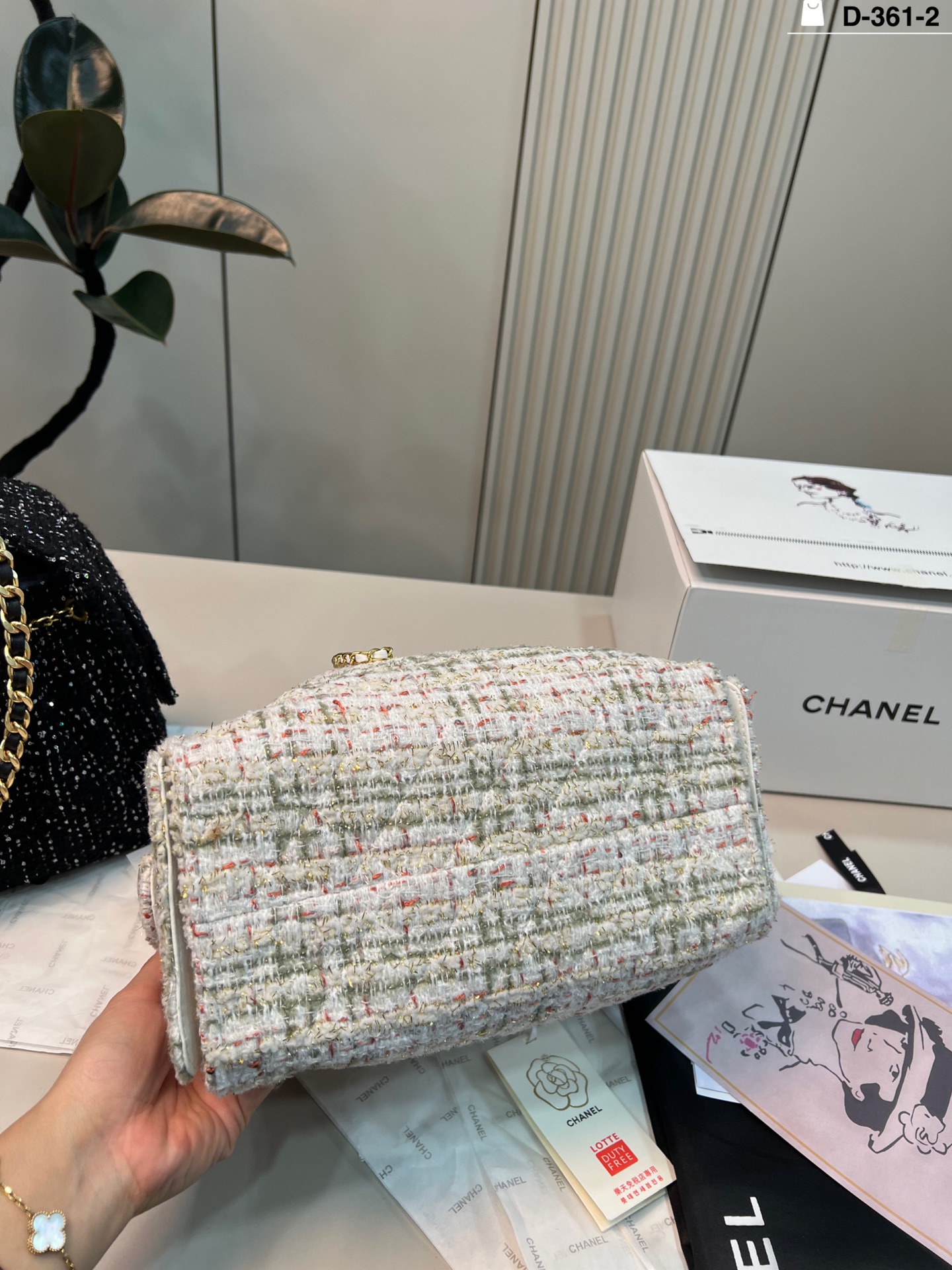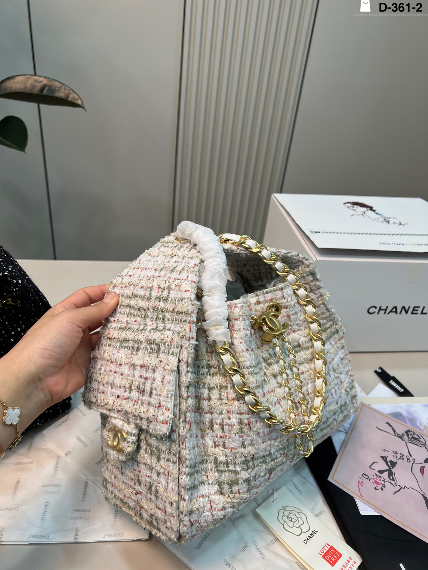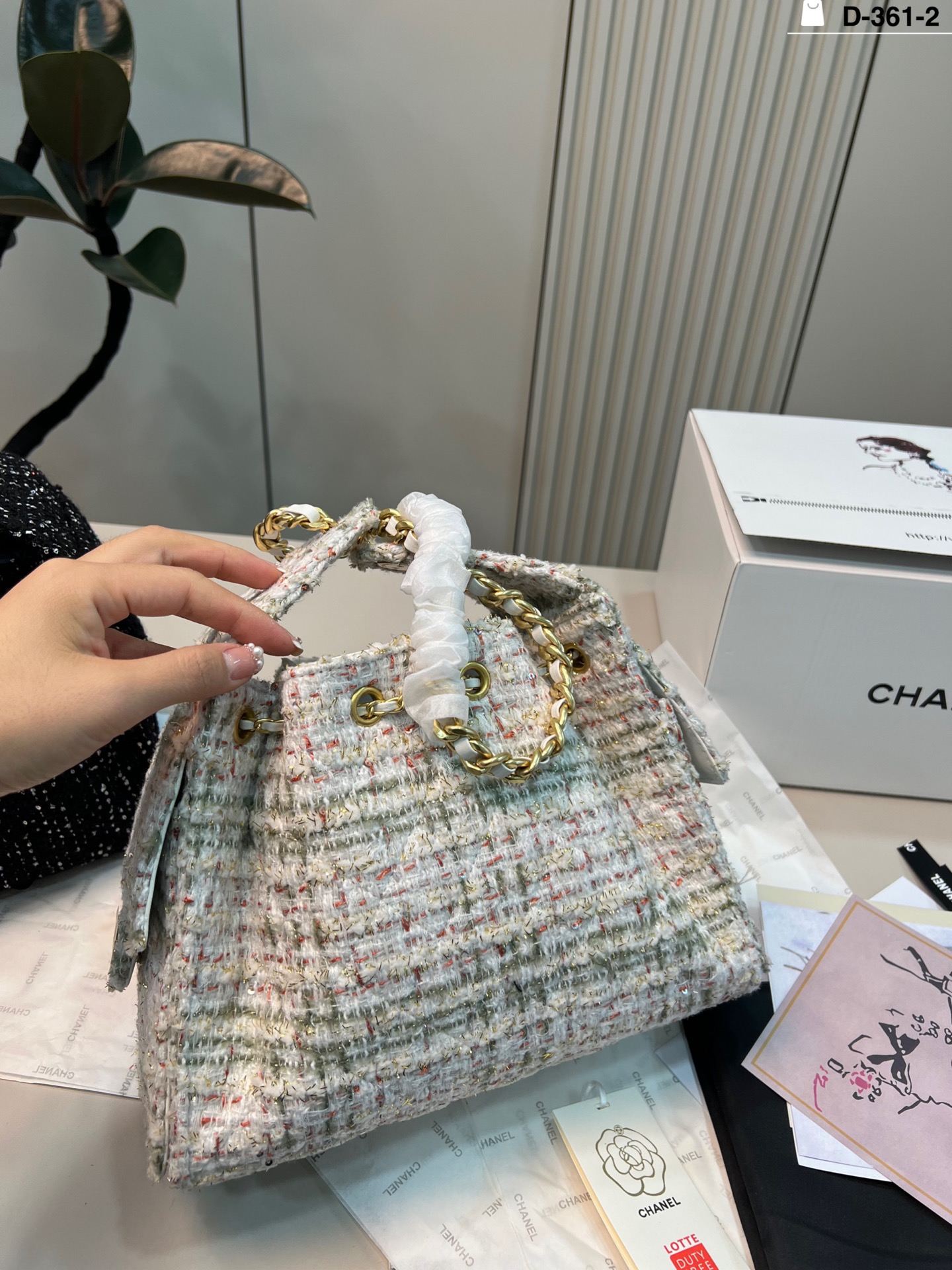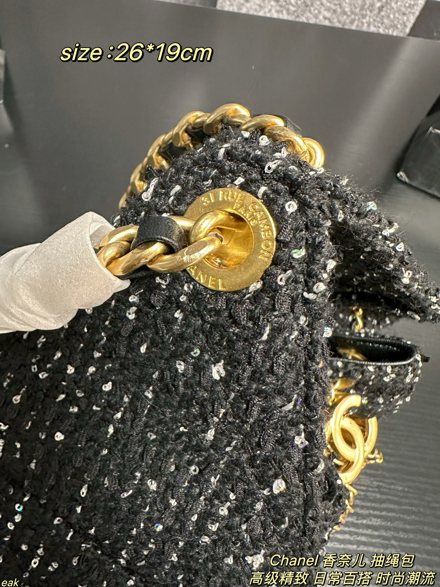 Chanel 25C Tweed Drawstring Diamond Quilted Multi-Pocket Top Handle Bucket Bag