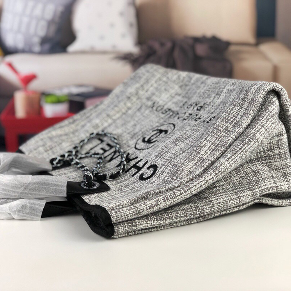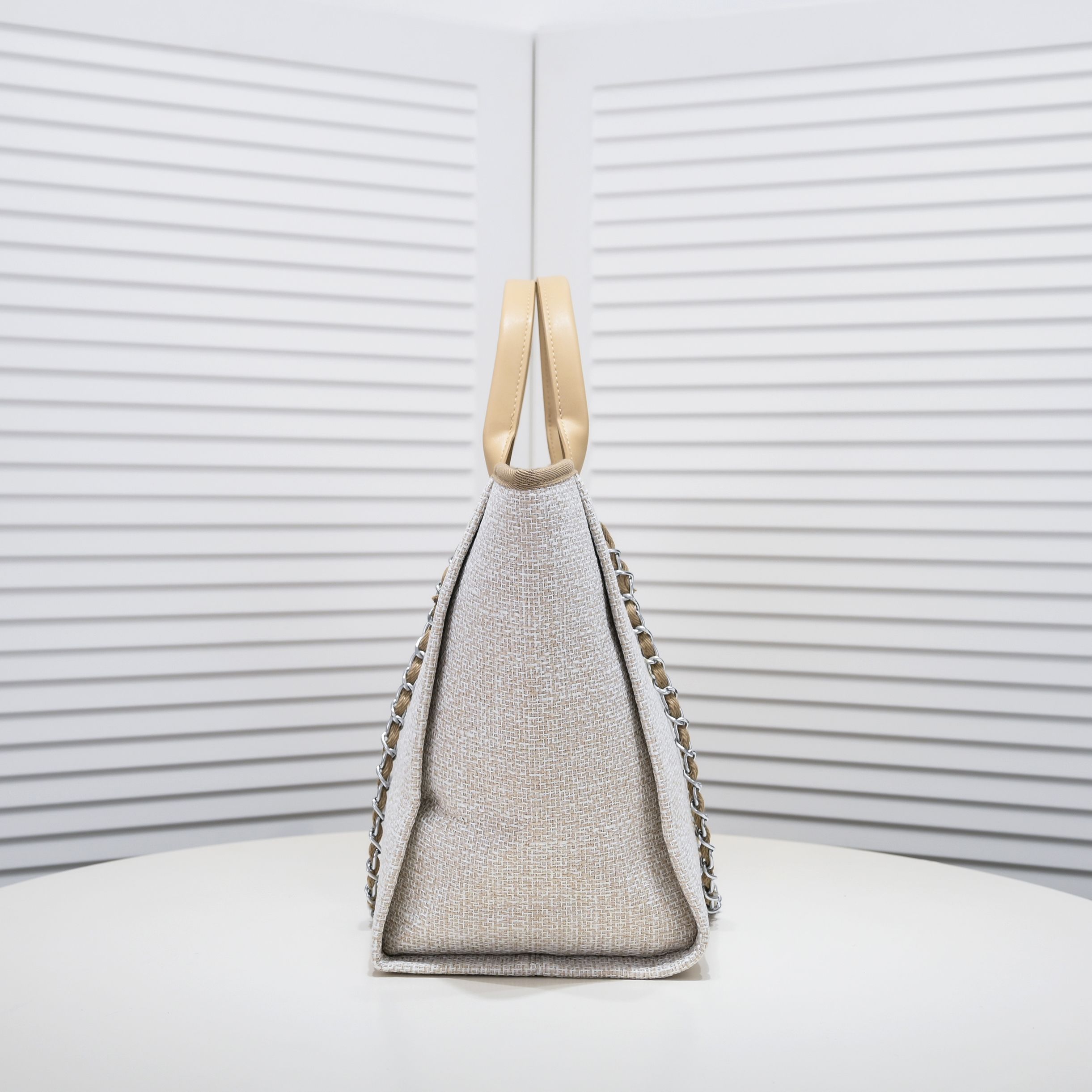 Chanel 31 Rue Cambon Canvas Embroidered Chain Tote Bag/ Beige