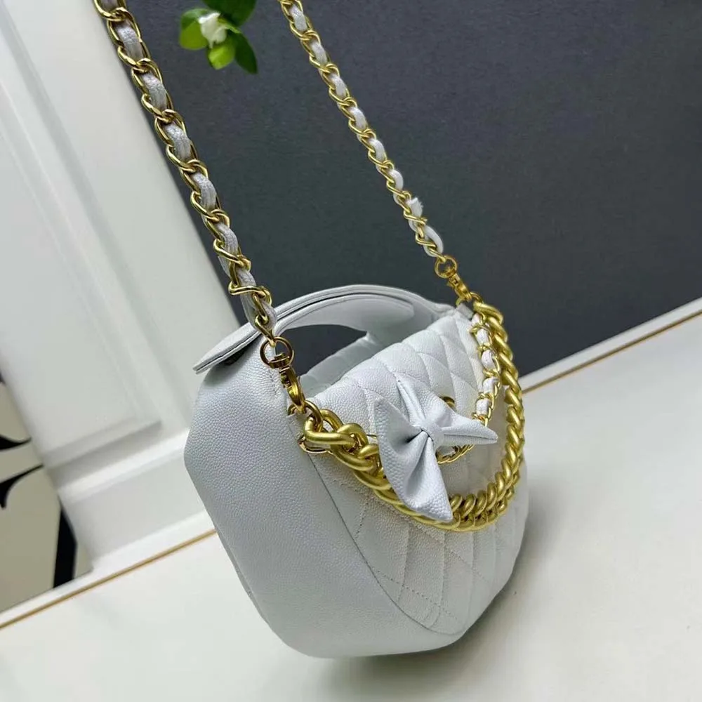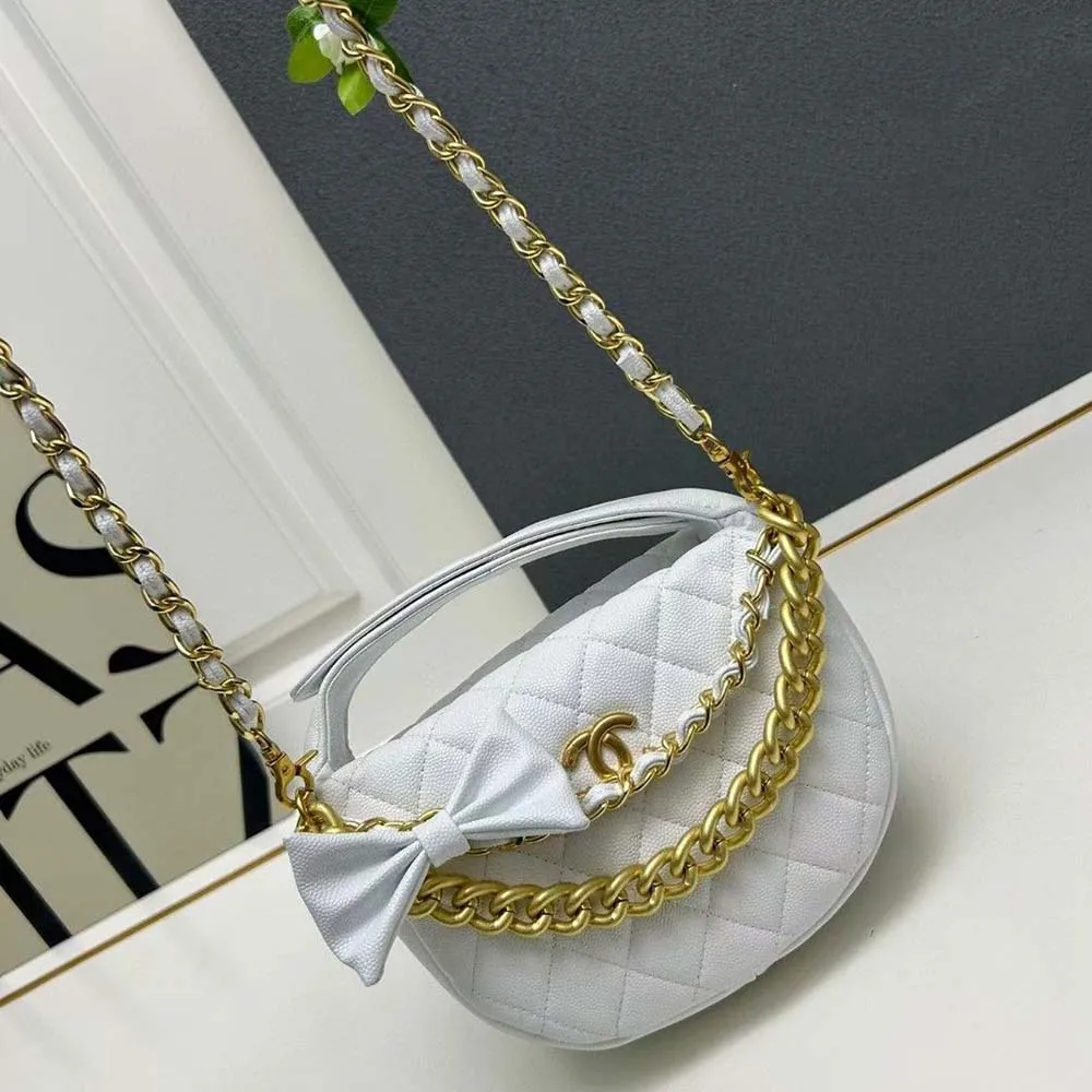 Chanel CC Logo Quilted Caviar Leather Bow Saddle Bag