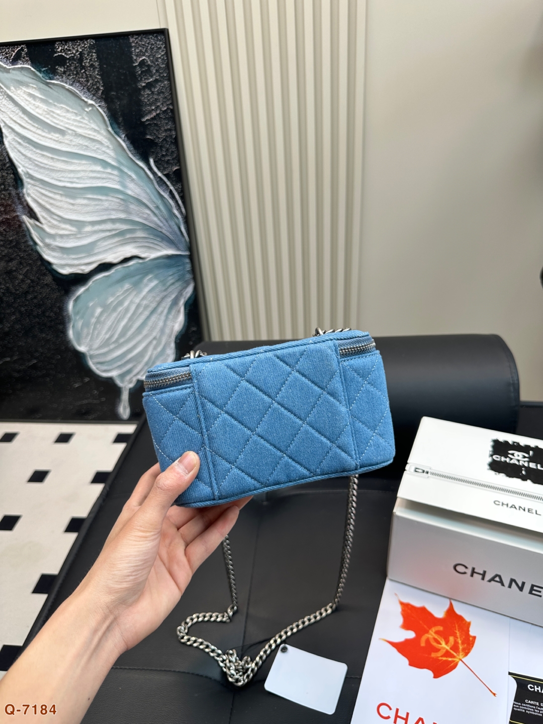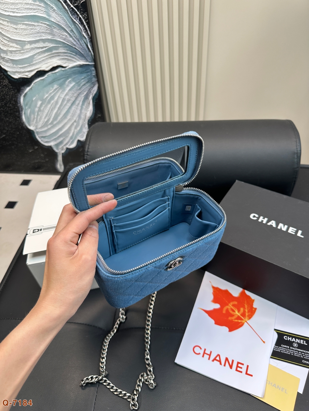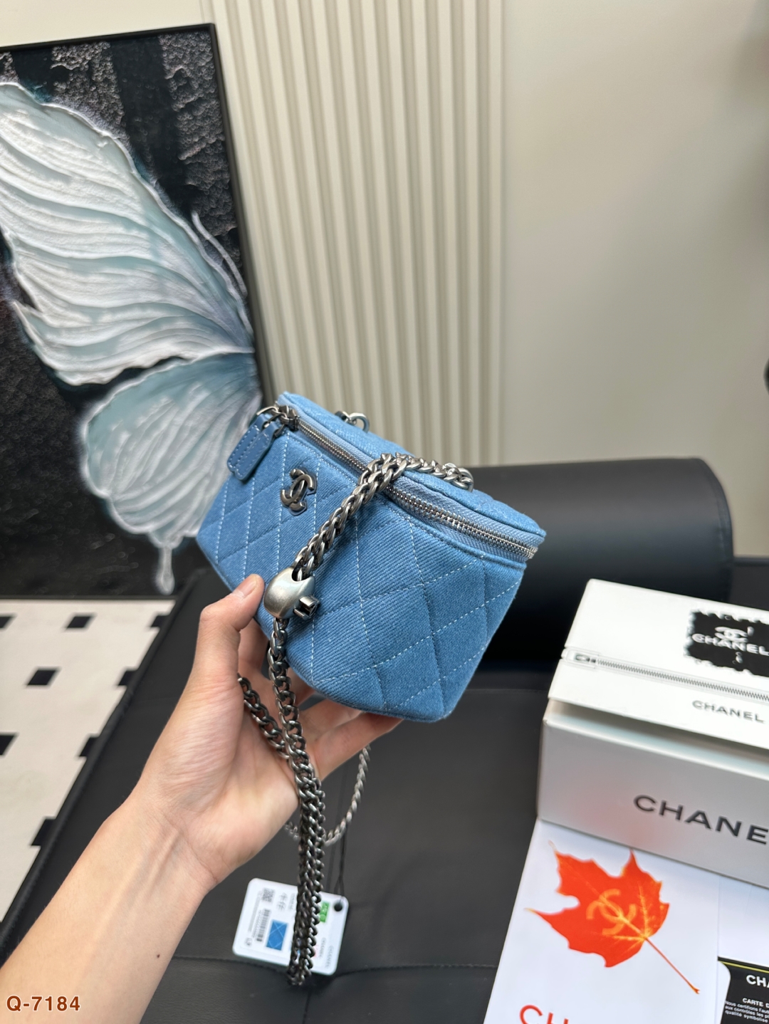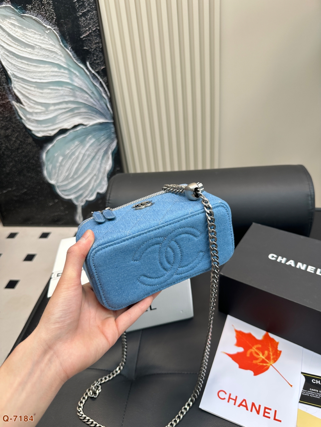 Chanel Diamond Quilted Denim Heart Charm Ball Zip-Top Vanity Case Crossbody Box