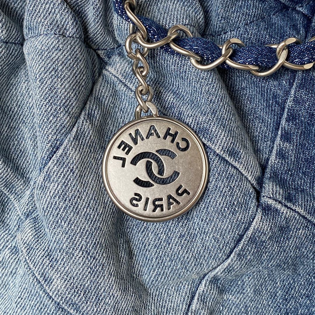 Chanel 22 Mini Diamond Quilted Shiny Calf Drawstring Logo Charm Bucket Bag