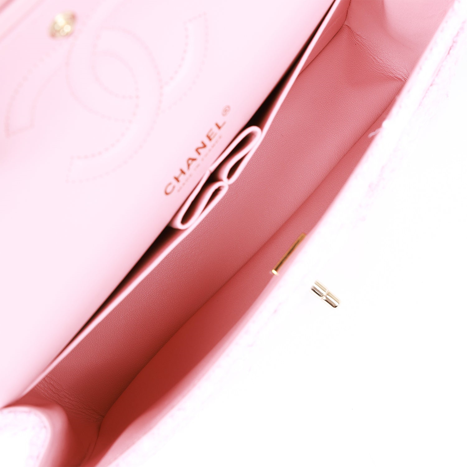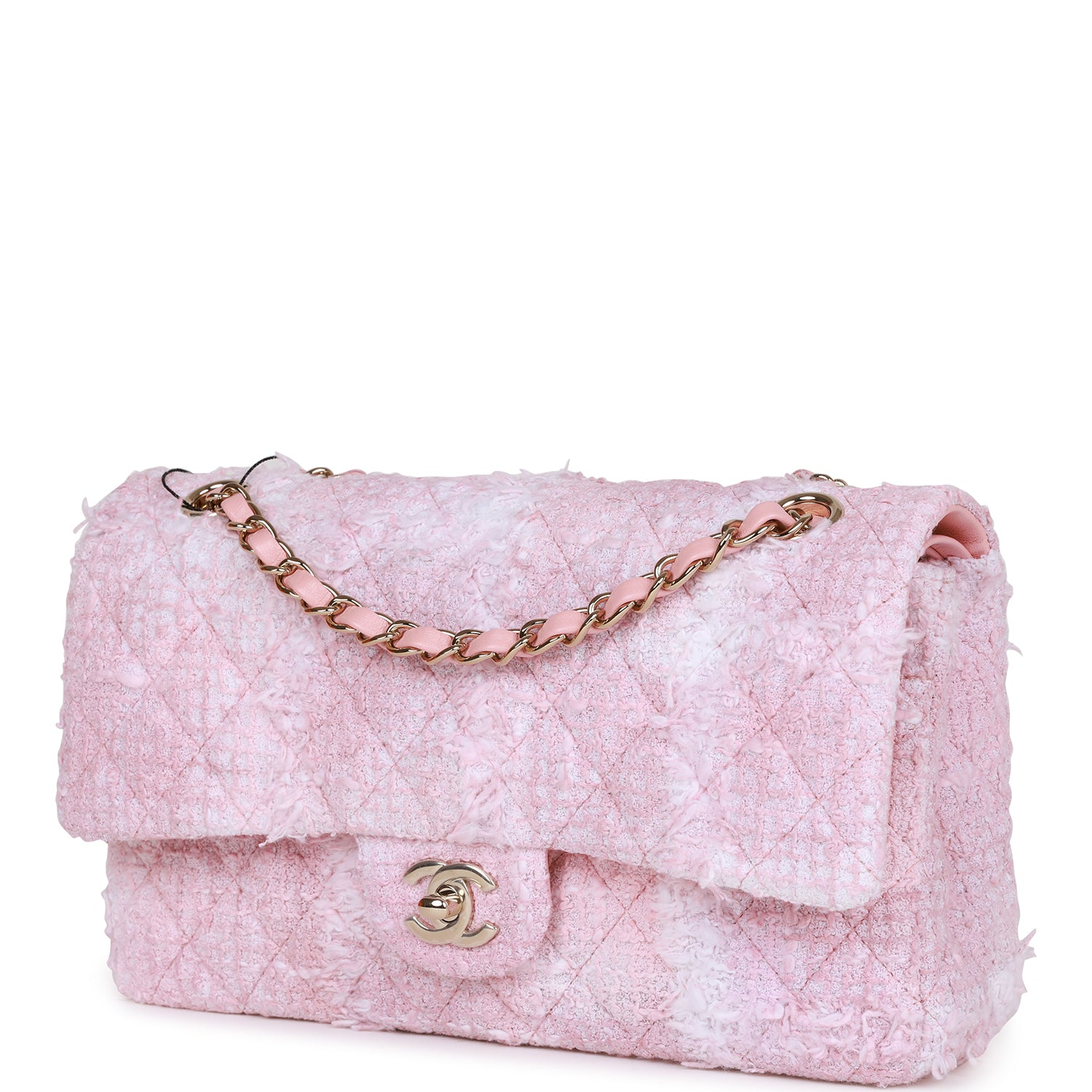 Chanel Pink Mixed Tweed Quilted Medium Classic Flap Bag